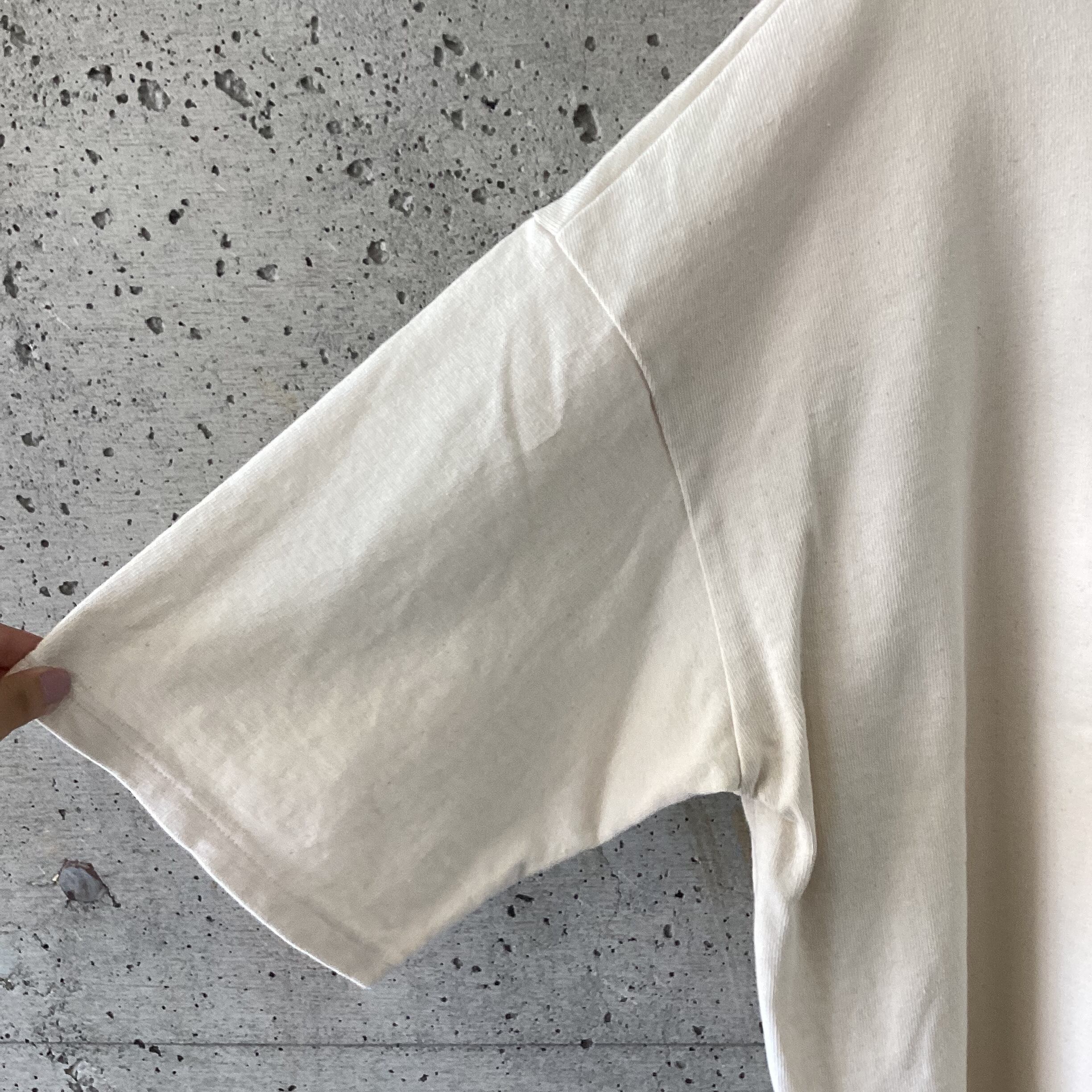 スウェットのようなヘビーな生地で大きめのデザインなのでシンプルで綺麗めのものをゆったりと着たい人におすすめです。