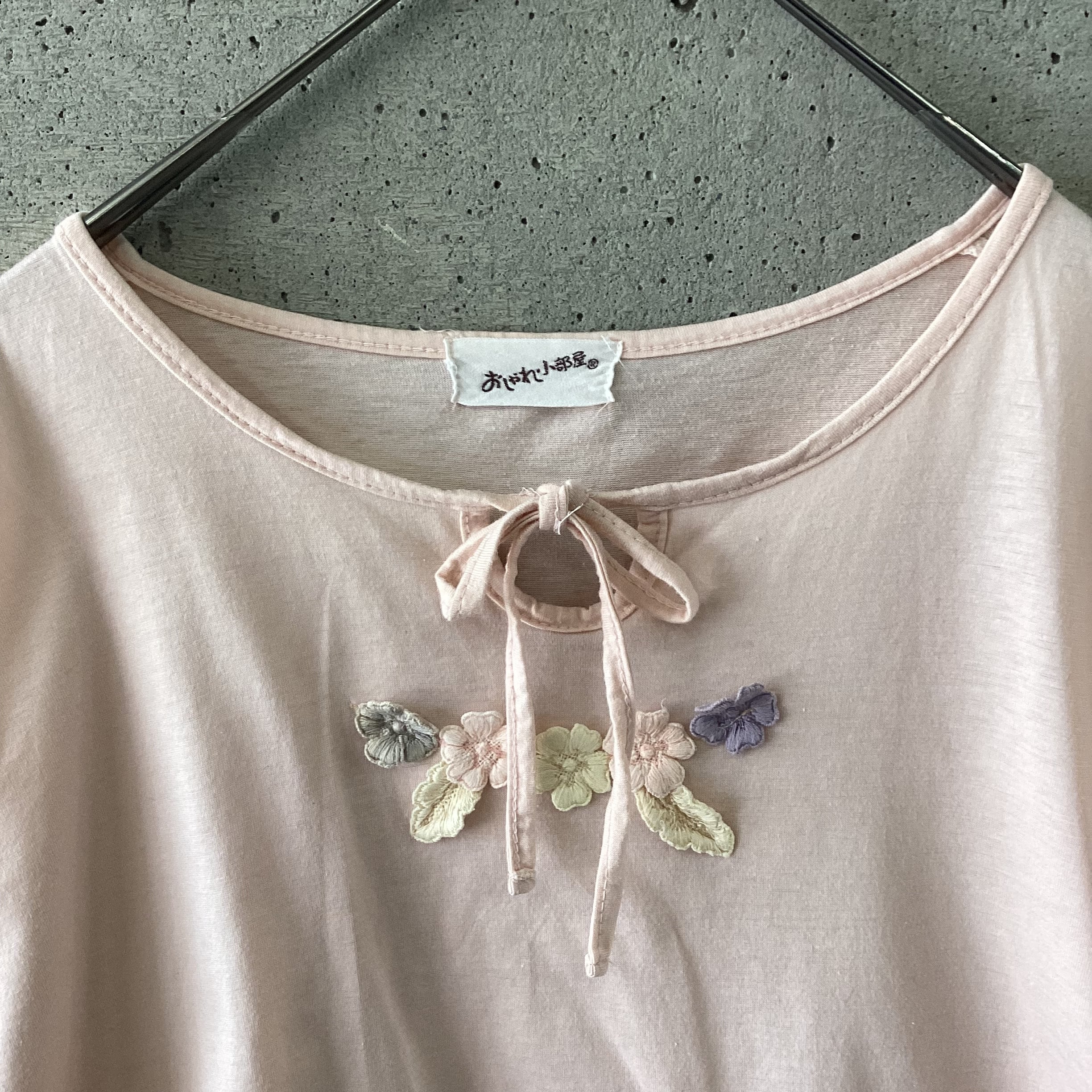 お花のワッペンがとても可愛らしいピンクのトップスです。