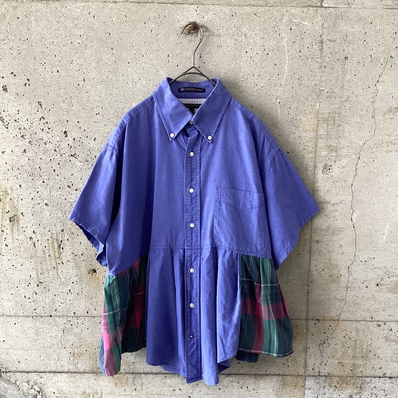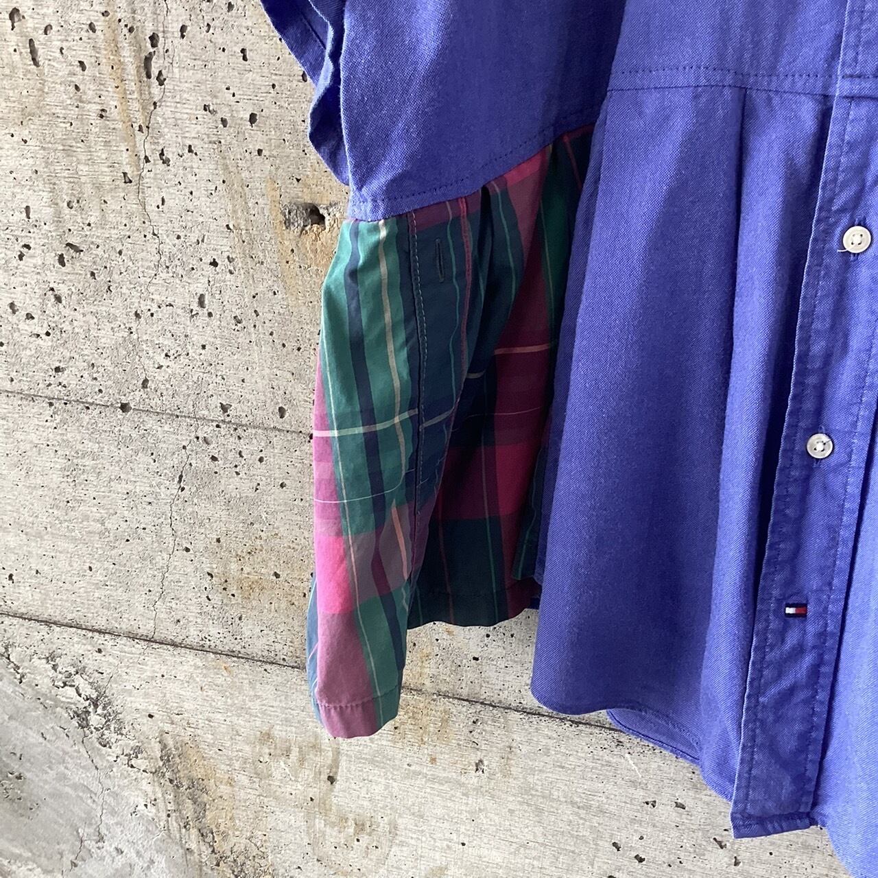 TOMMY HILFIGERのシャツを素材として使ったリメイクシャツです。
