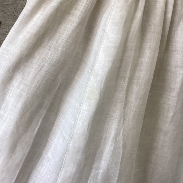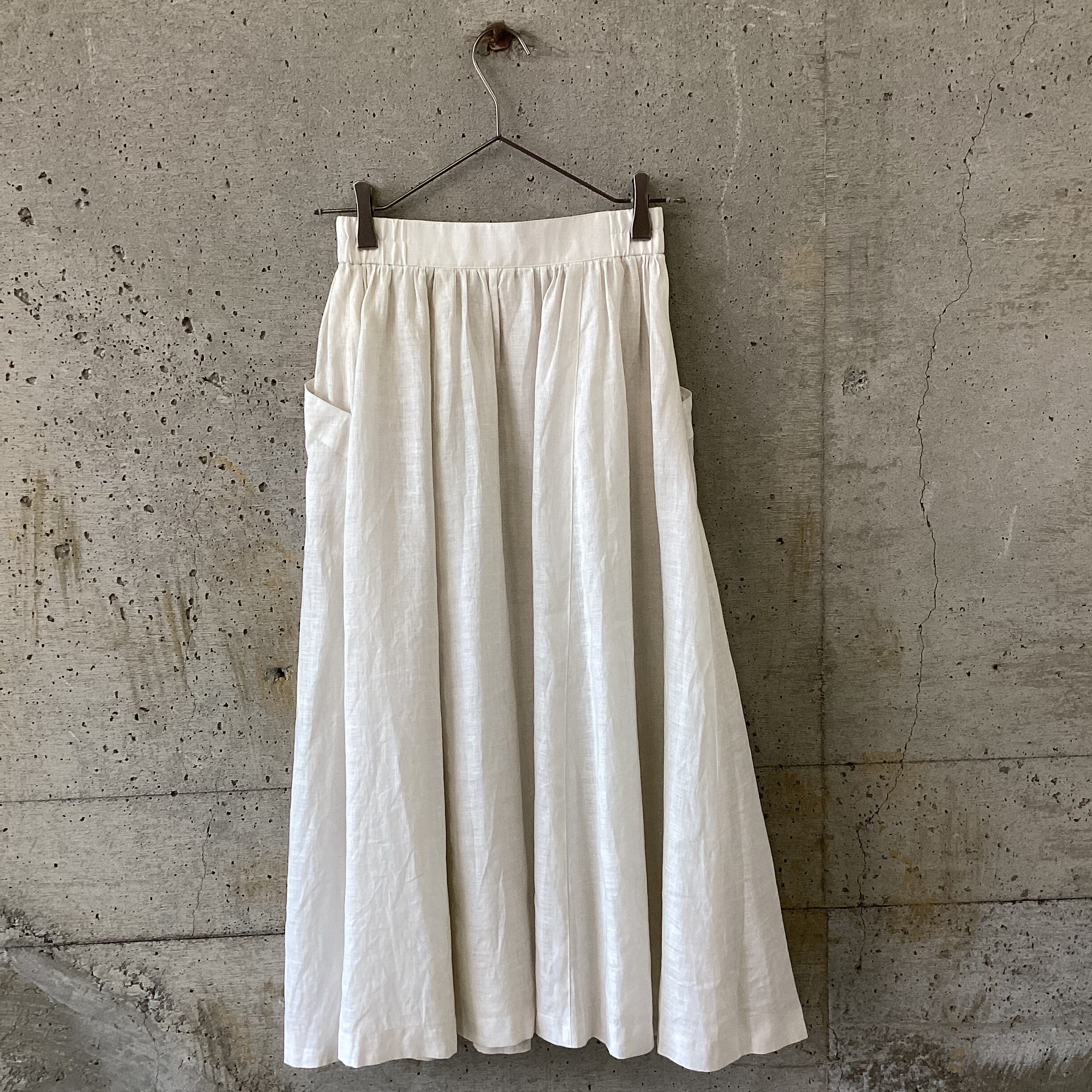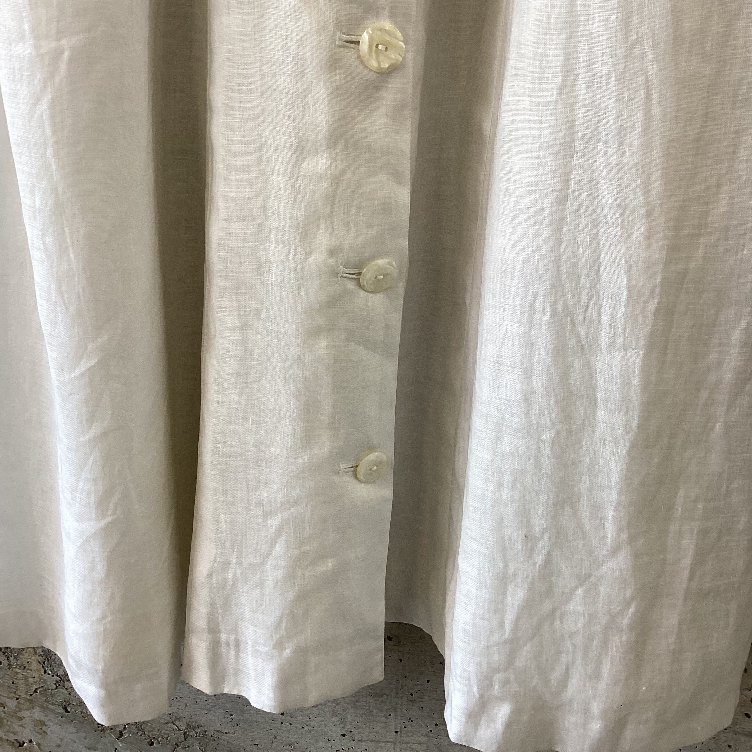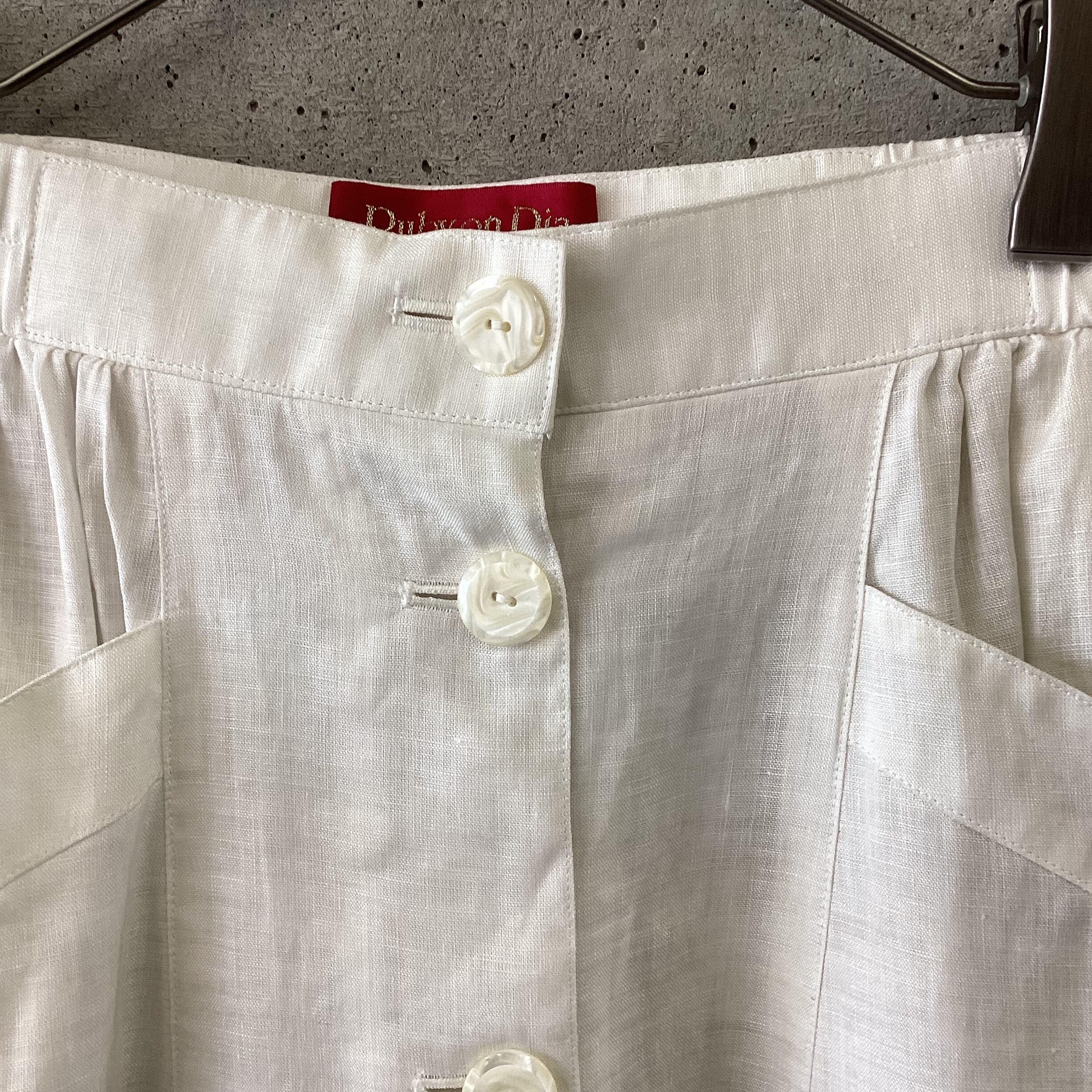 大きなボタンとポケットがポイントのリネンのフレアスカートです