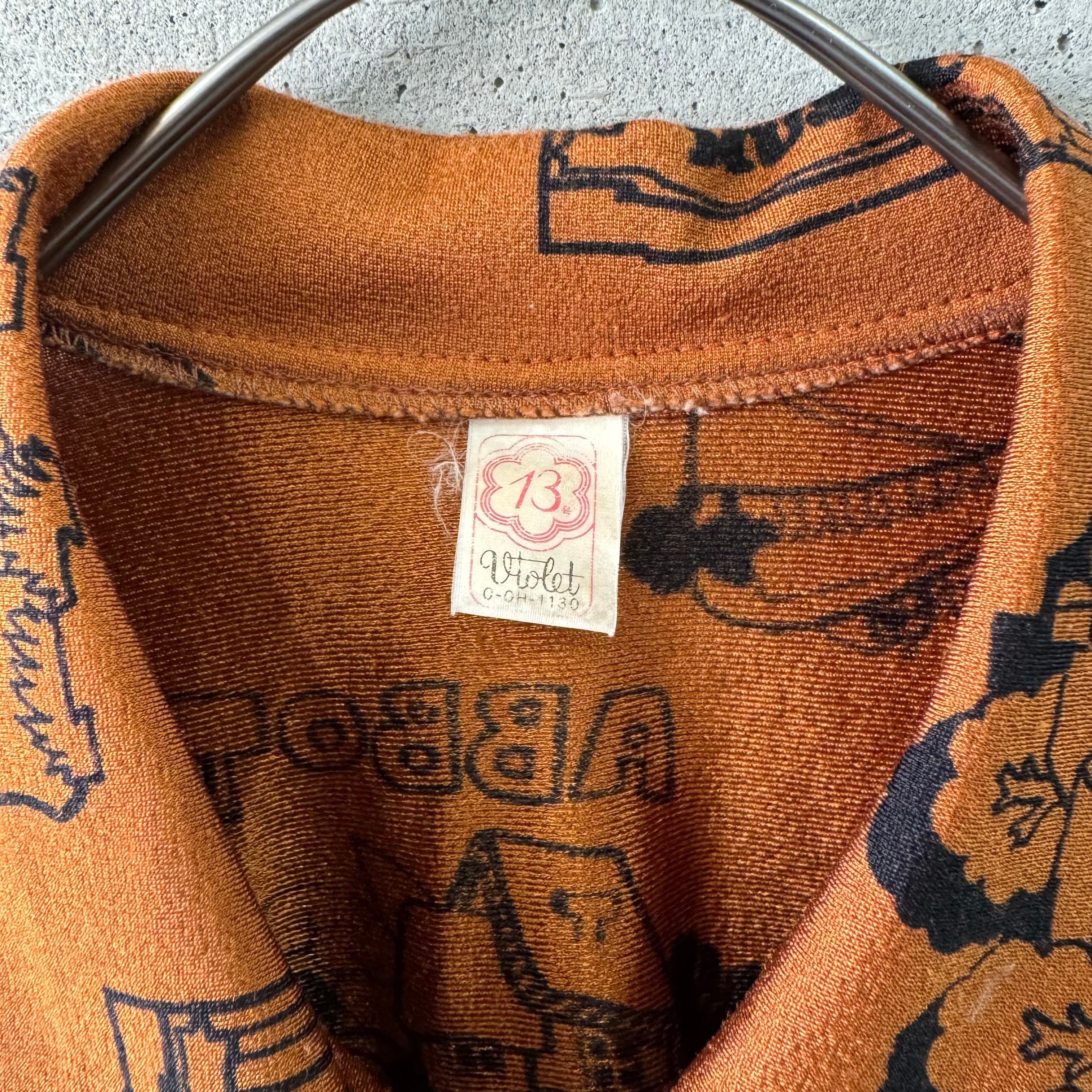 光沢感のある生地で、全体に可愛らしい柄があるので、ややポップなイメージの強いアイテムになっていますが、色味のおかげかなんとなくモードなイメージも持ち合わせています。