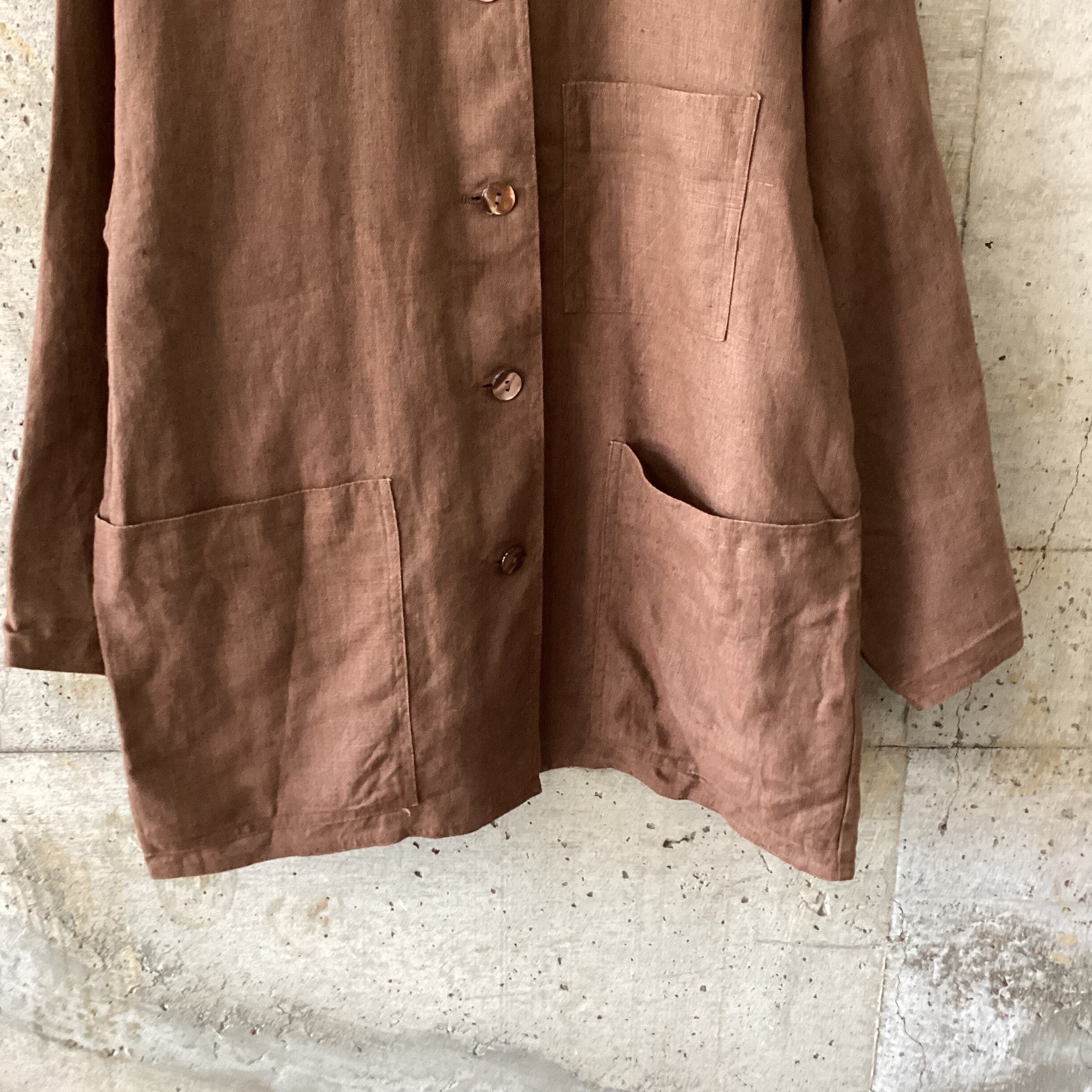 貝殻ボタンもブラウンで統一感があり、とても魅力的な1着です。
