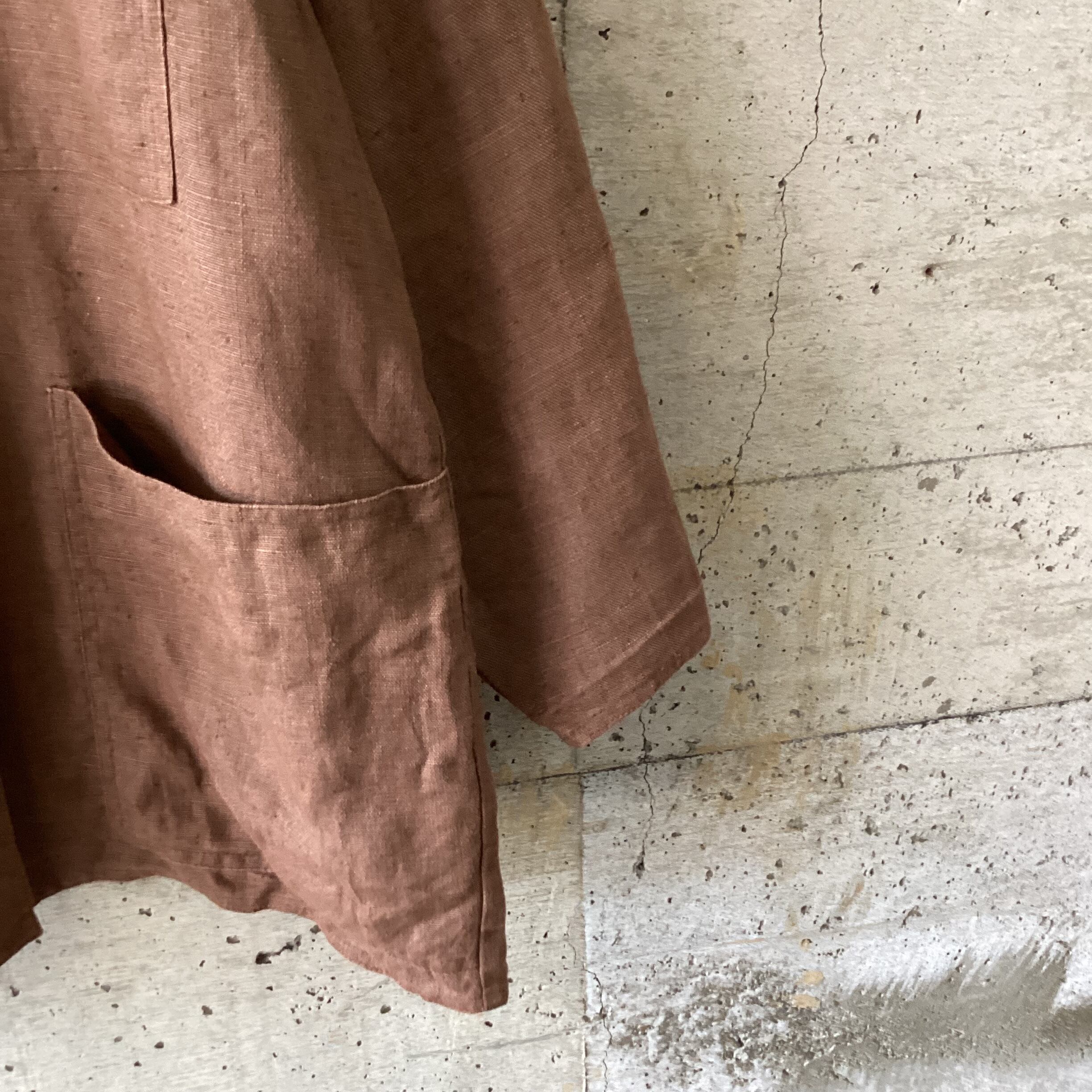 しっかりとした麻のような生地のシャツです。