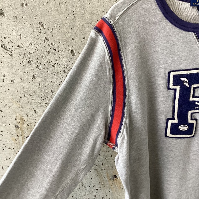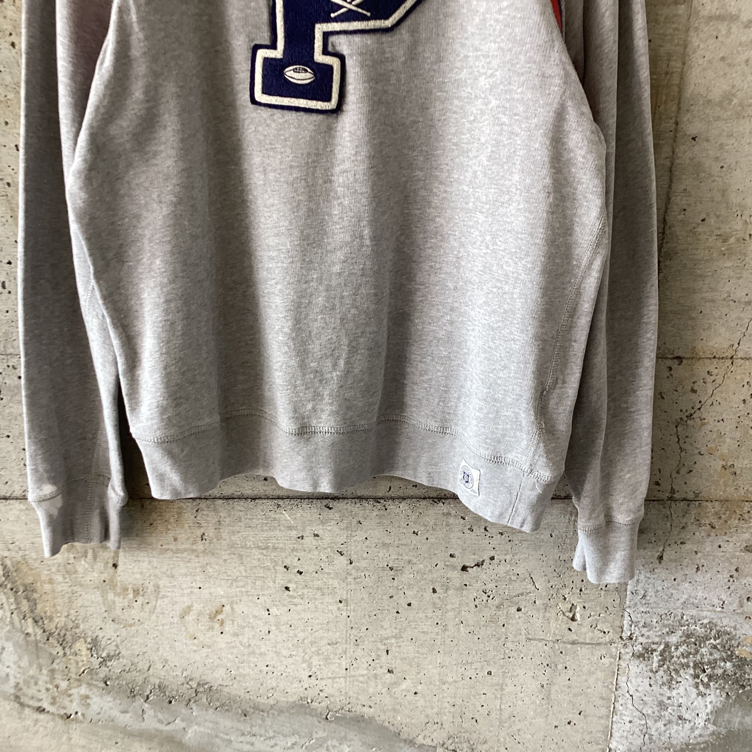 Pの文字がワッペンで貼り付けられたスウェットです。