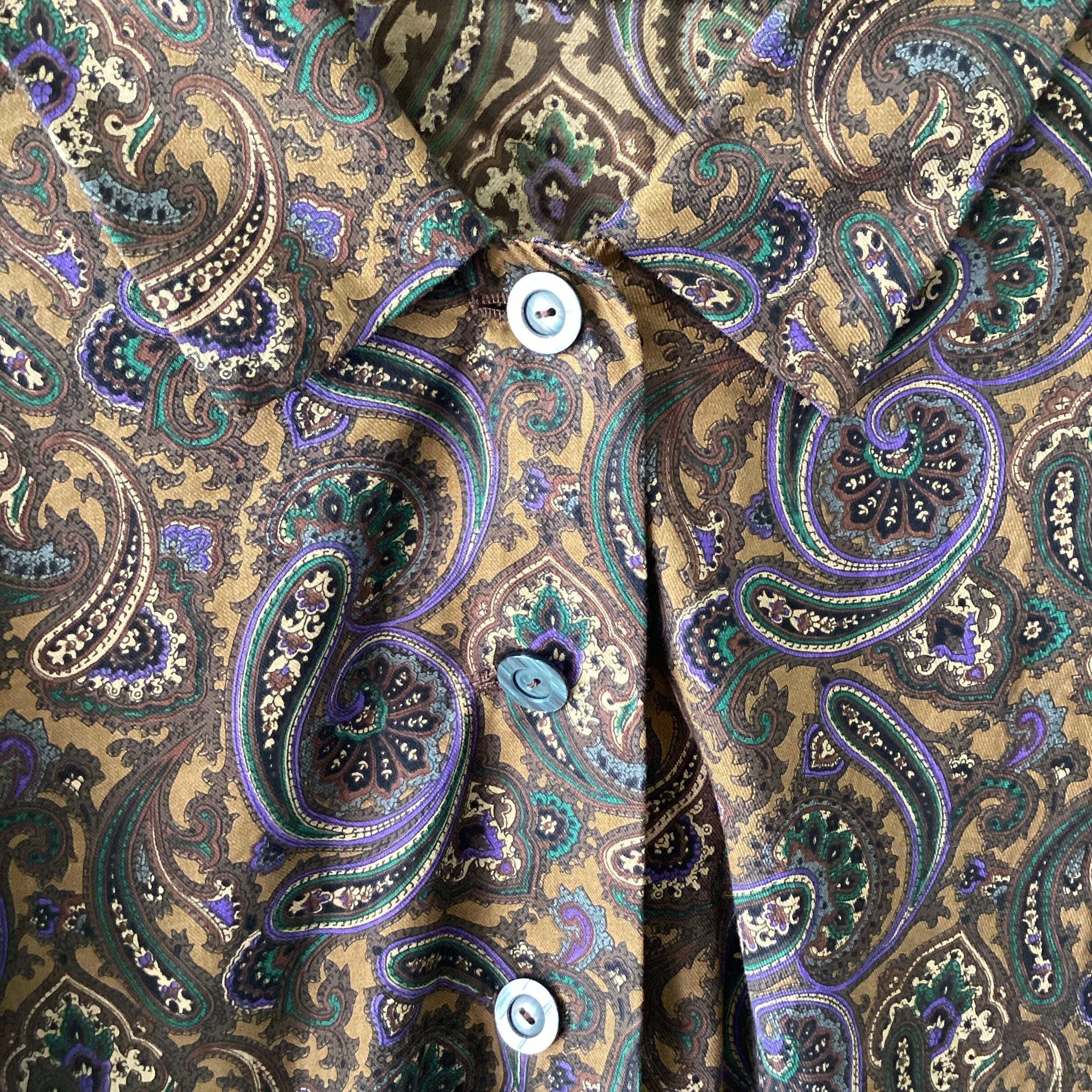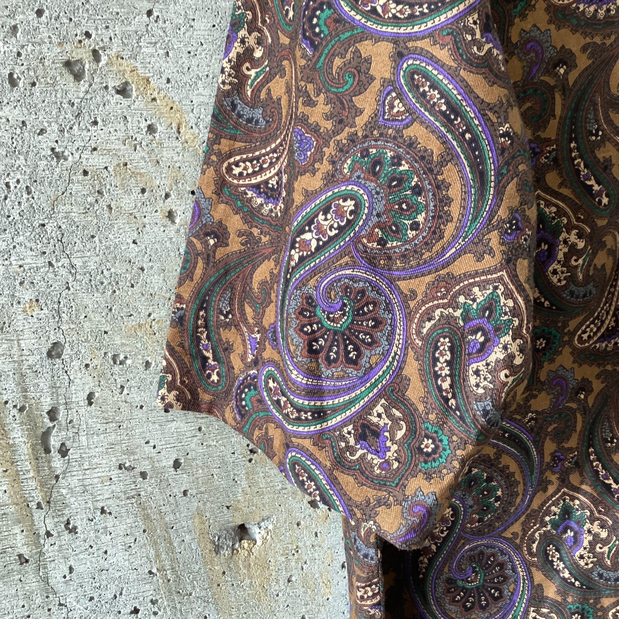 大ぶりなペイズリー柄、暗めの色味で全体的に落ち着いた雰囲気があります。
