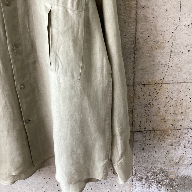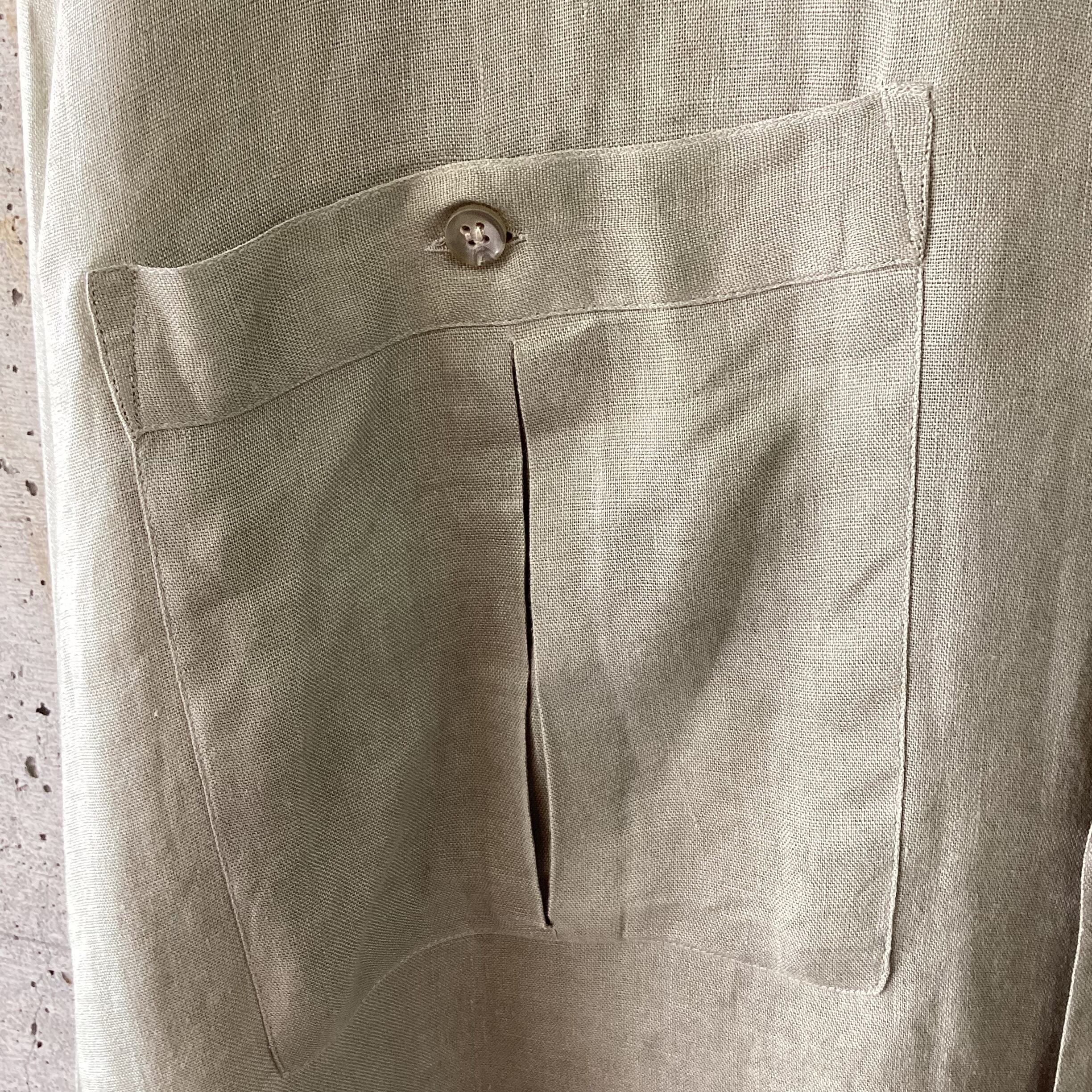 メンズでも大きめなサイズ感は空気を取り込みやすく、荒織なリネン生地も相まって夏でも涼しく着用できます。