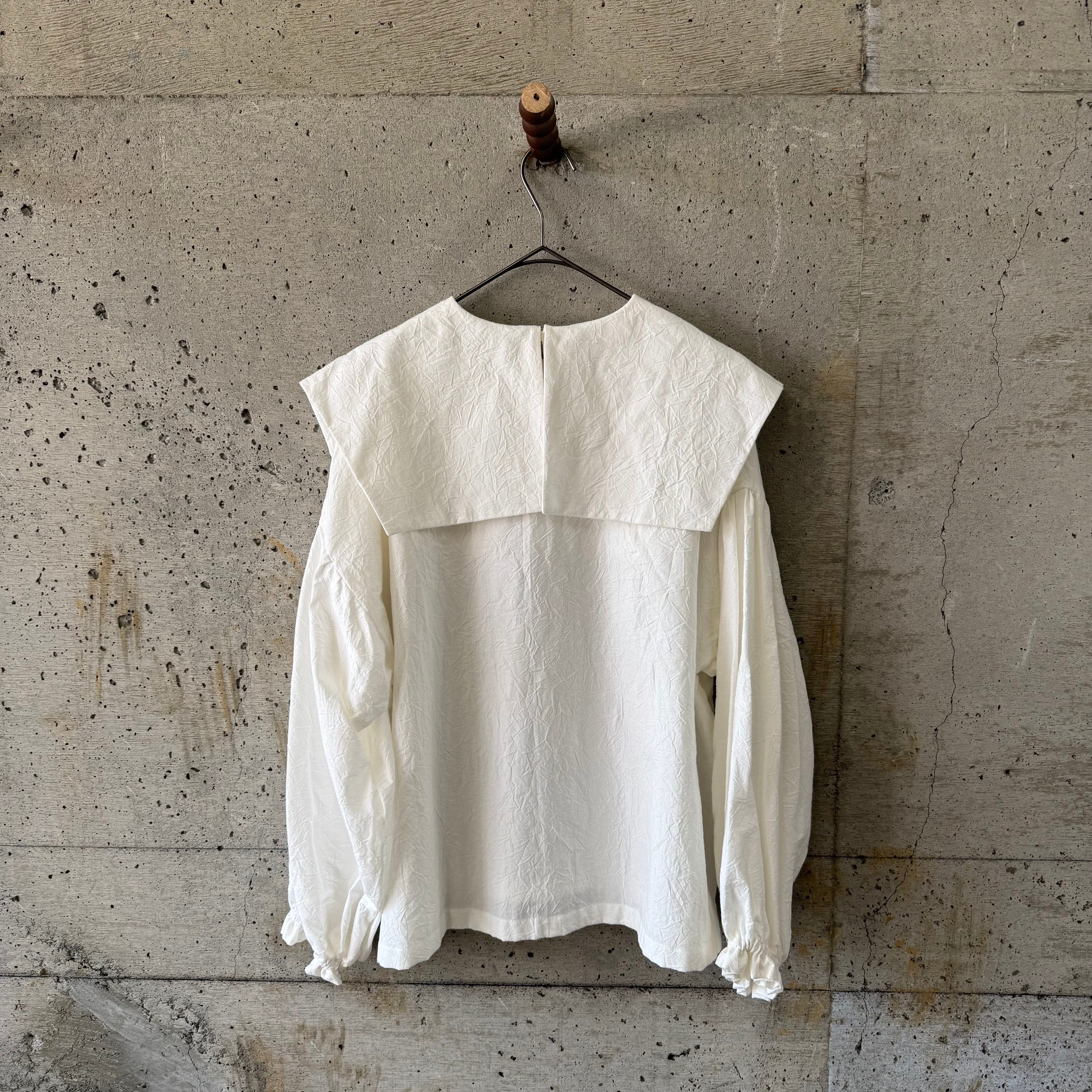大きな襟がとてもポイントになったゆったりめのブラウスです