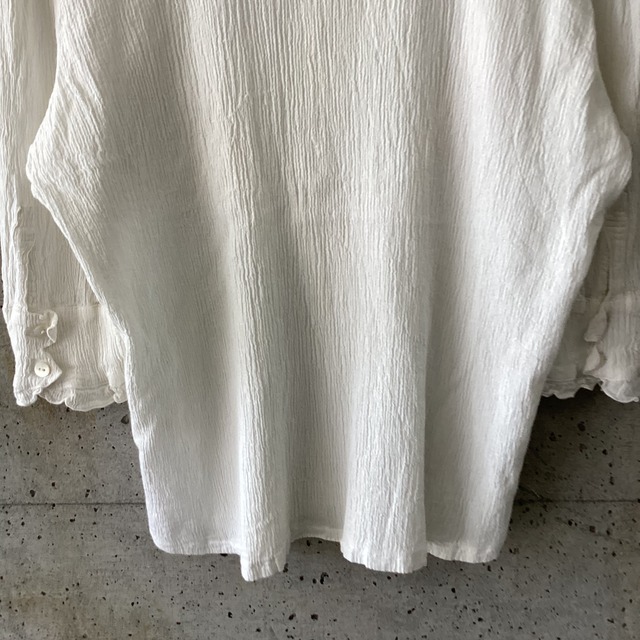胸元にはレースがたくさん取り付けられていますが、レースさえもクシュっとした加工がされているので可愛らしすぎず、落ち着いた可愛さもあります。
