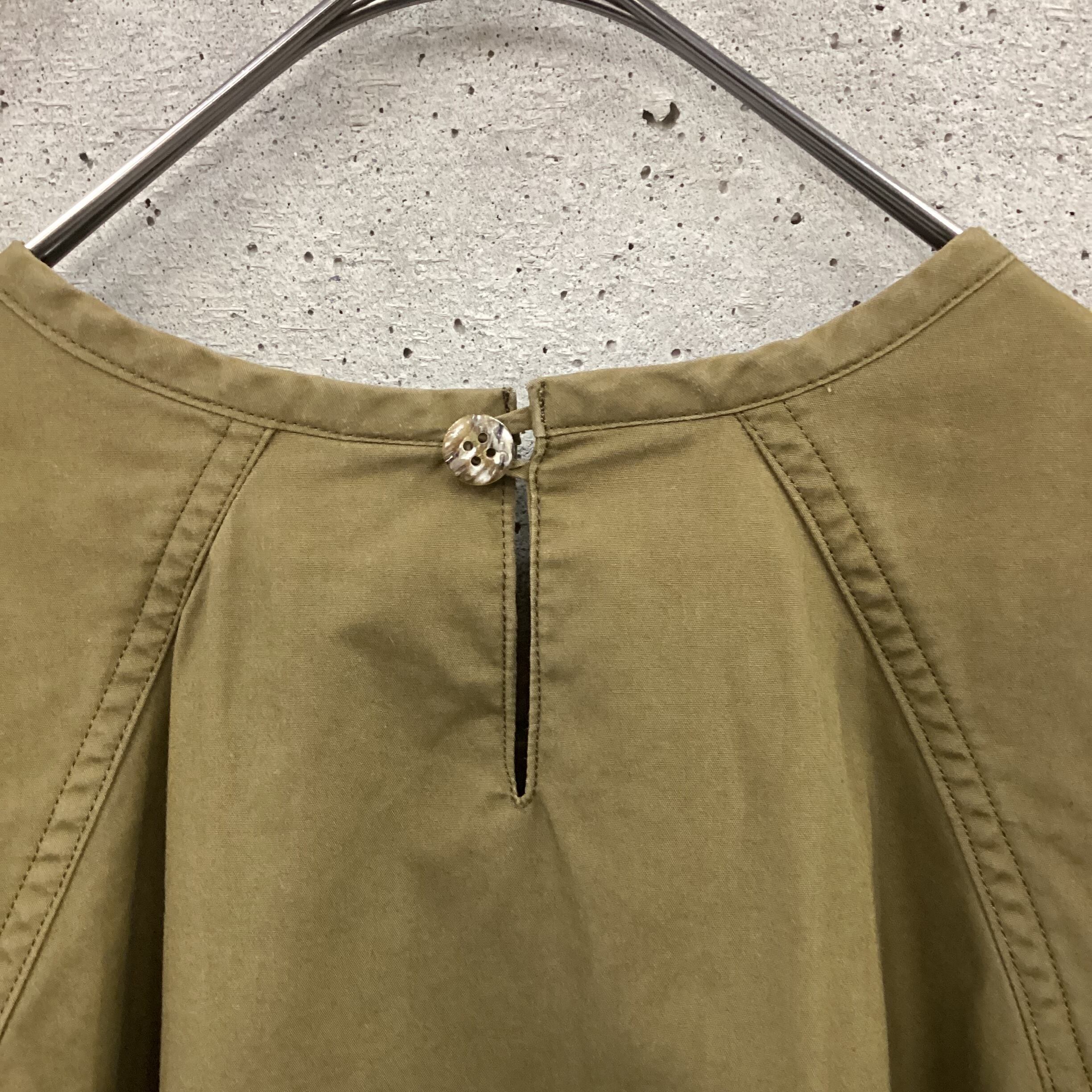 大きな襟のようにも見える切り替えになっていて、ノースリーブに近い少しの袖部分にかかります