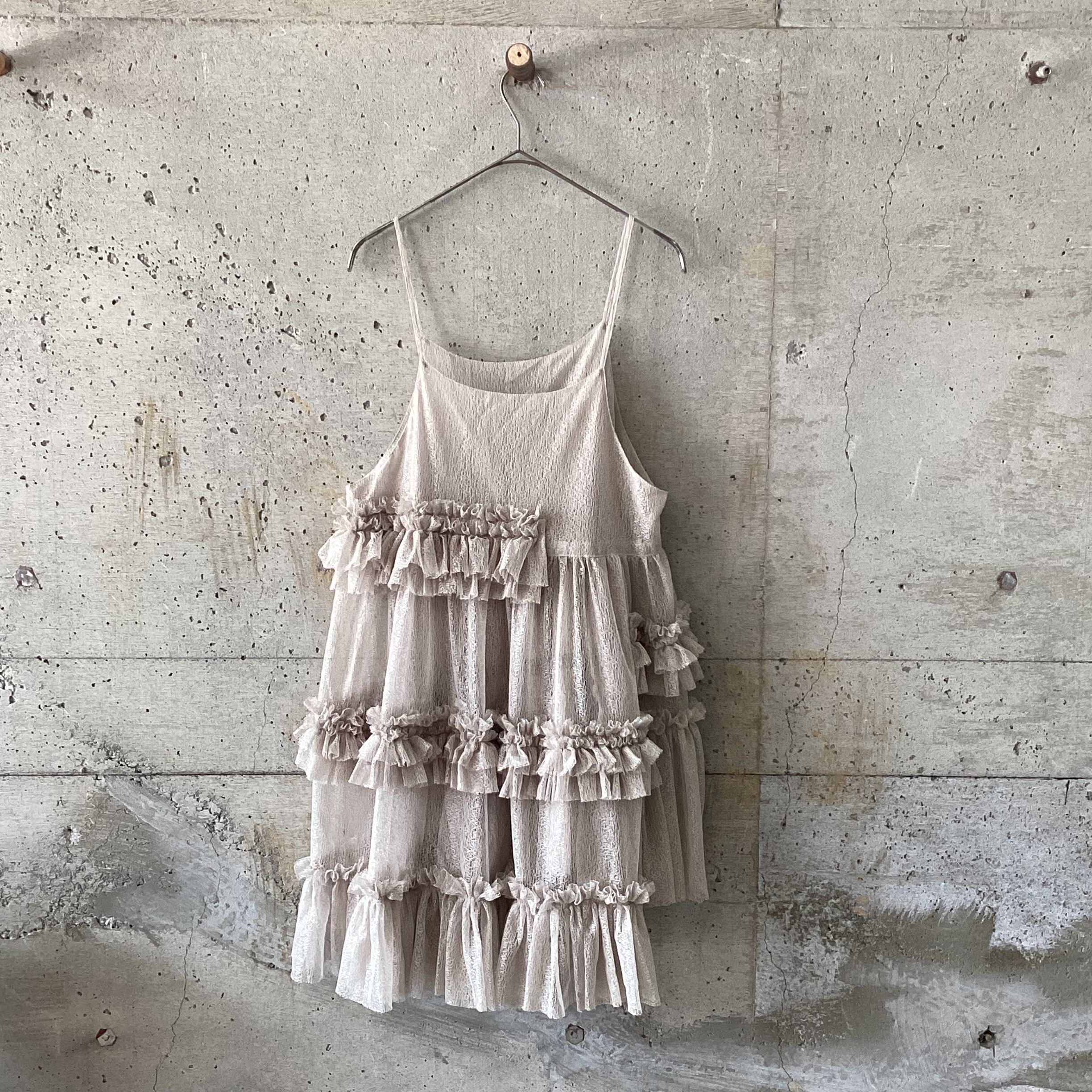 メロン柄のような生地の素敵な色合いのチュールレースワンピースです。