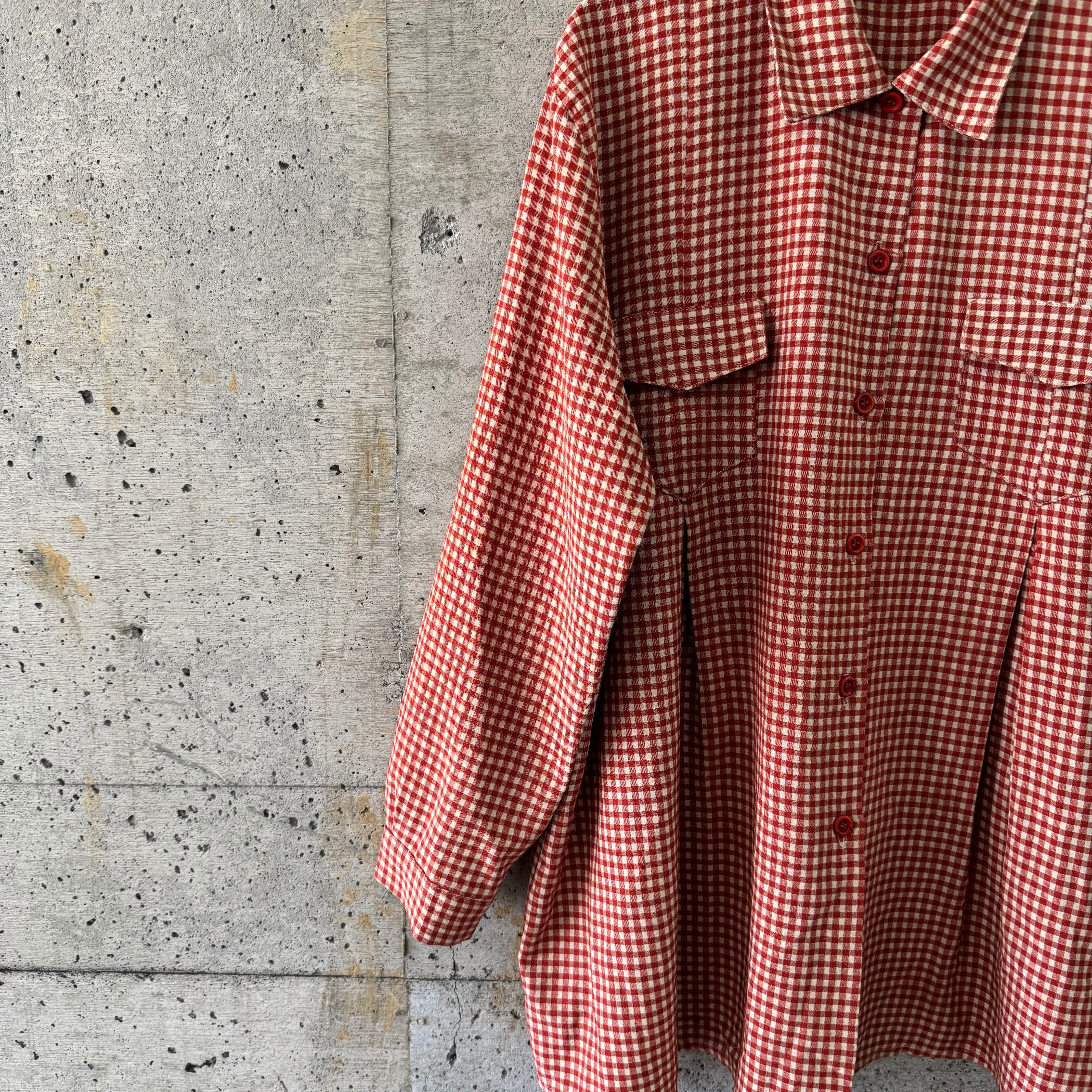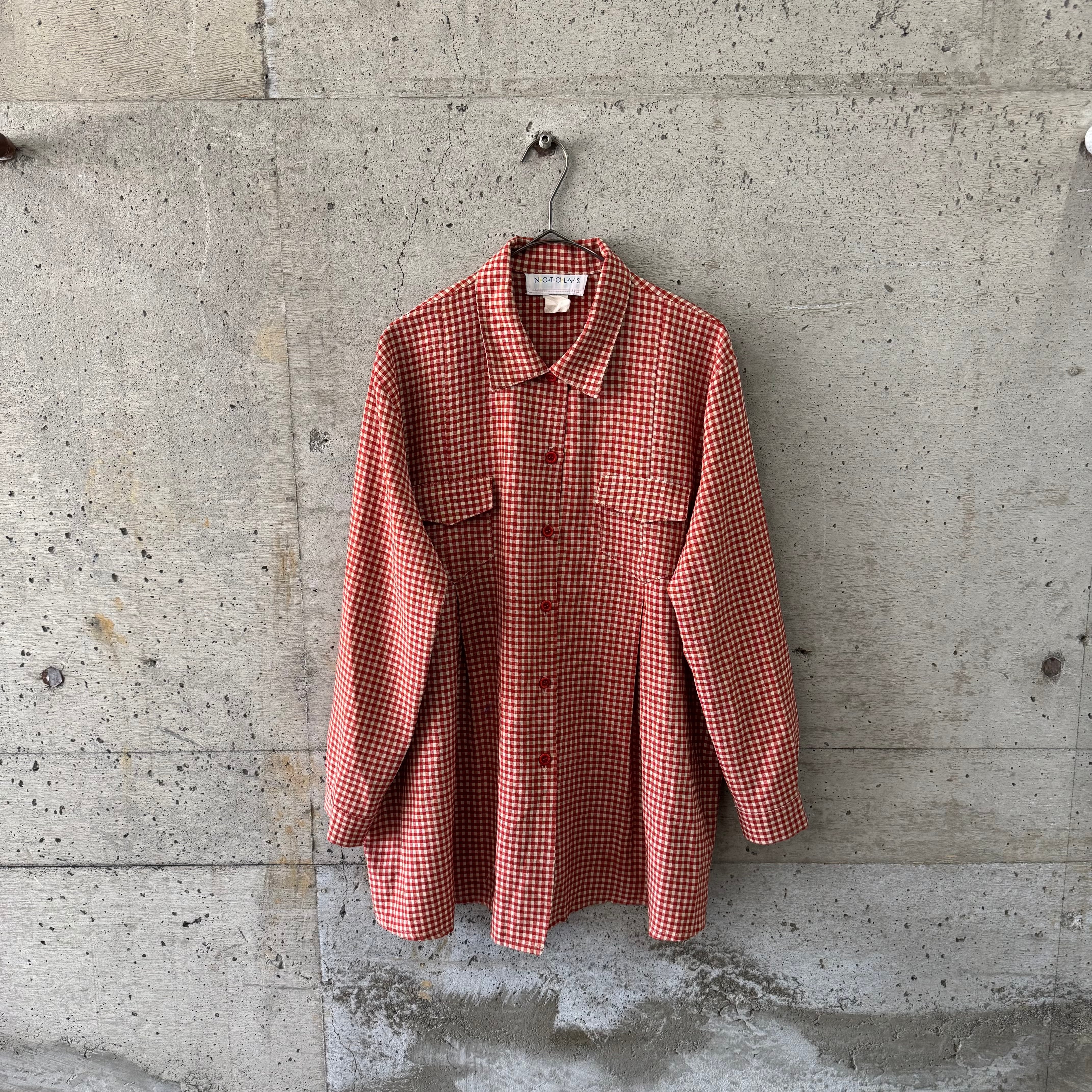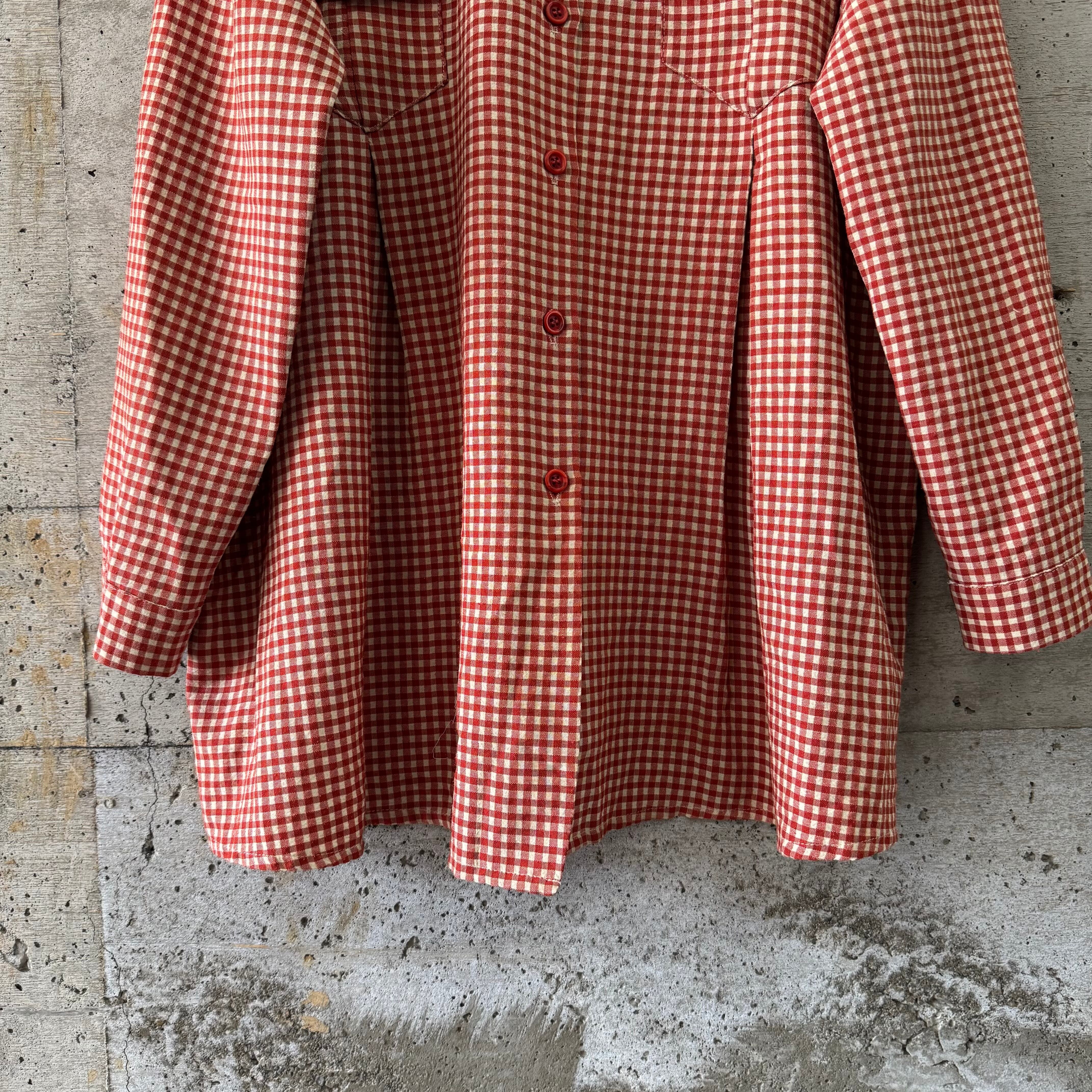 白というより生成色のような色で、よく見るパキッとした赤と白のチェックシャツより大人っぽく落ち着いた雰囲気があります。