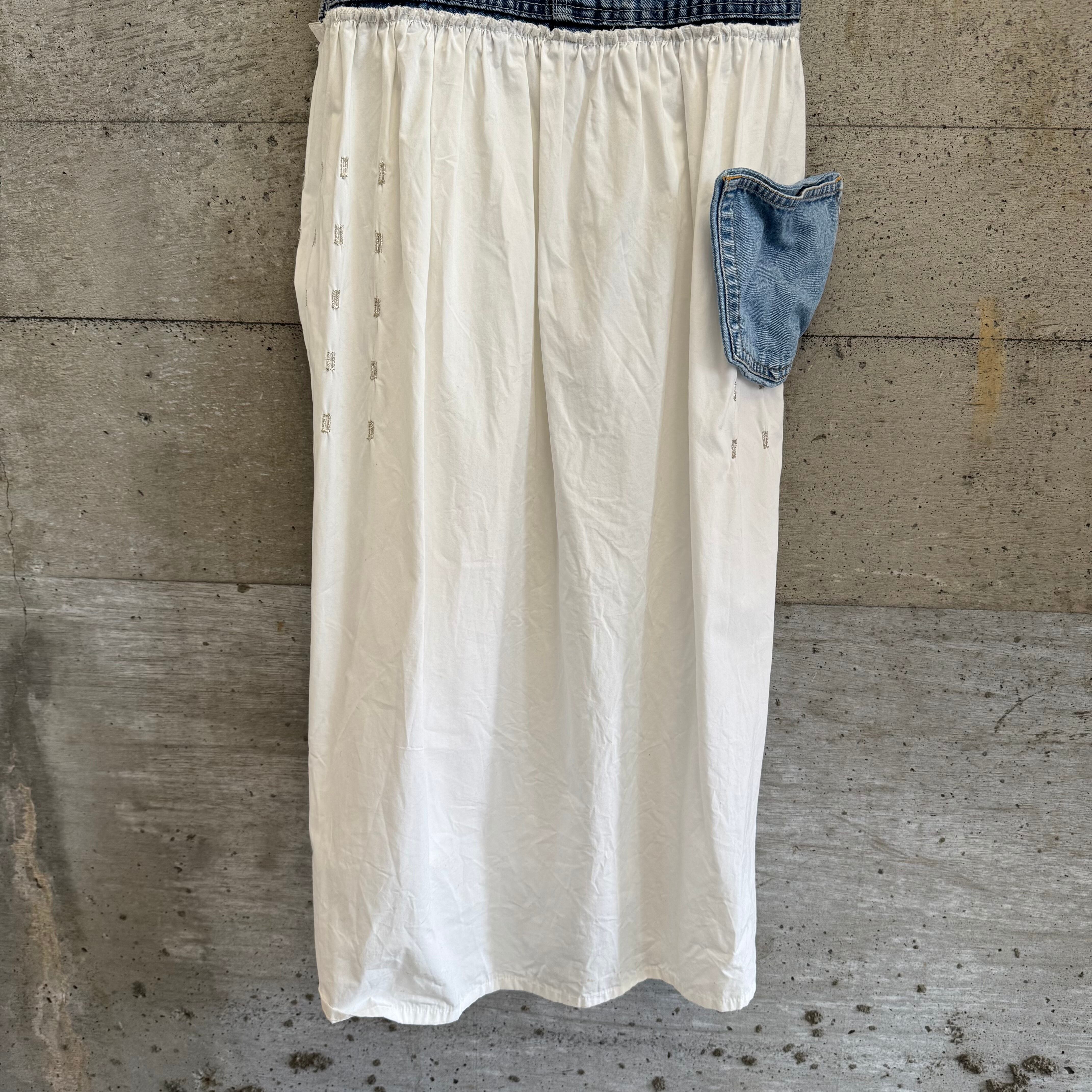 Leeのオーバーオールをリメイクして作られたワンピースです。