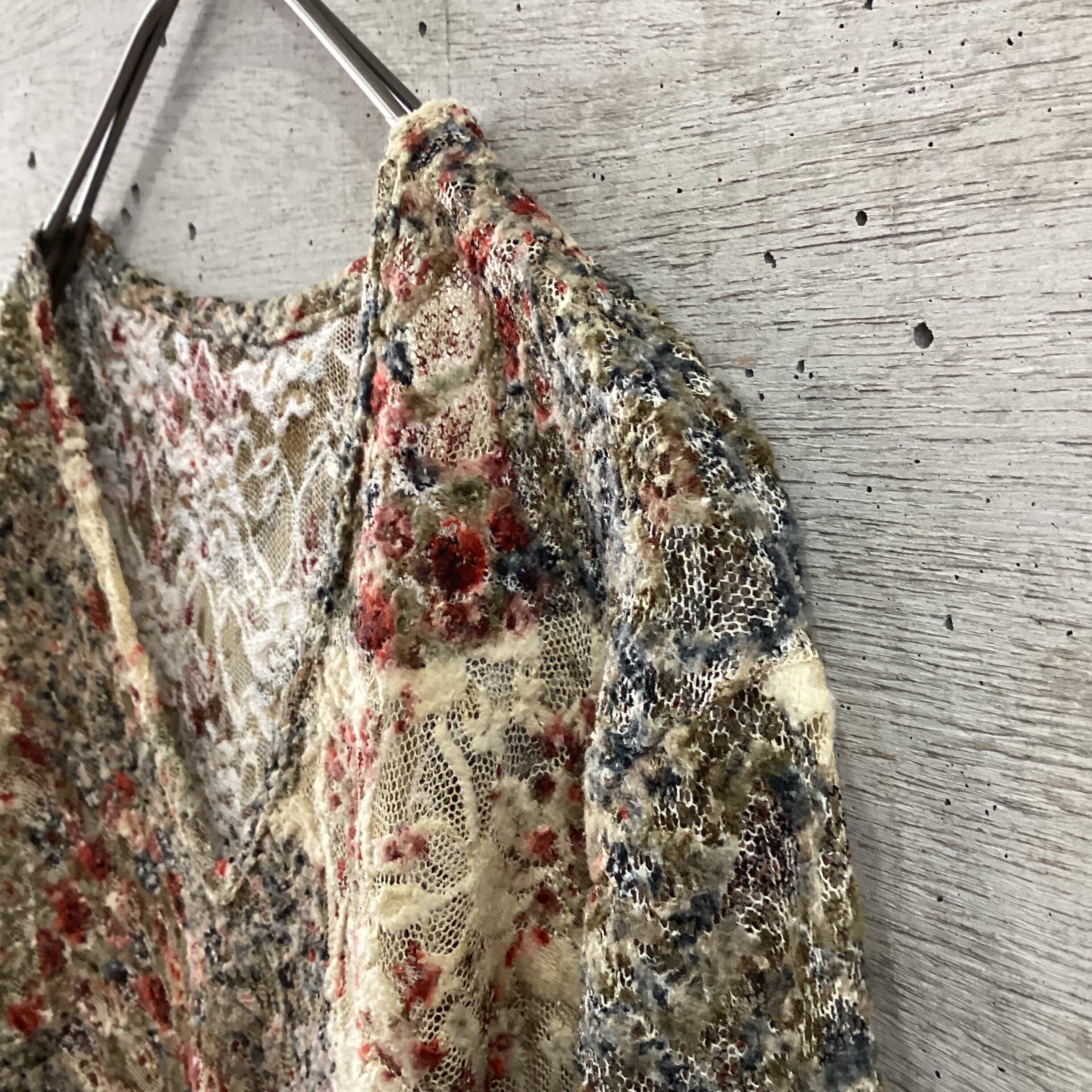 お花畑のような色合いの柄がとても素敵で単体で着てもとても可愛いです。