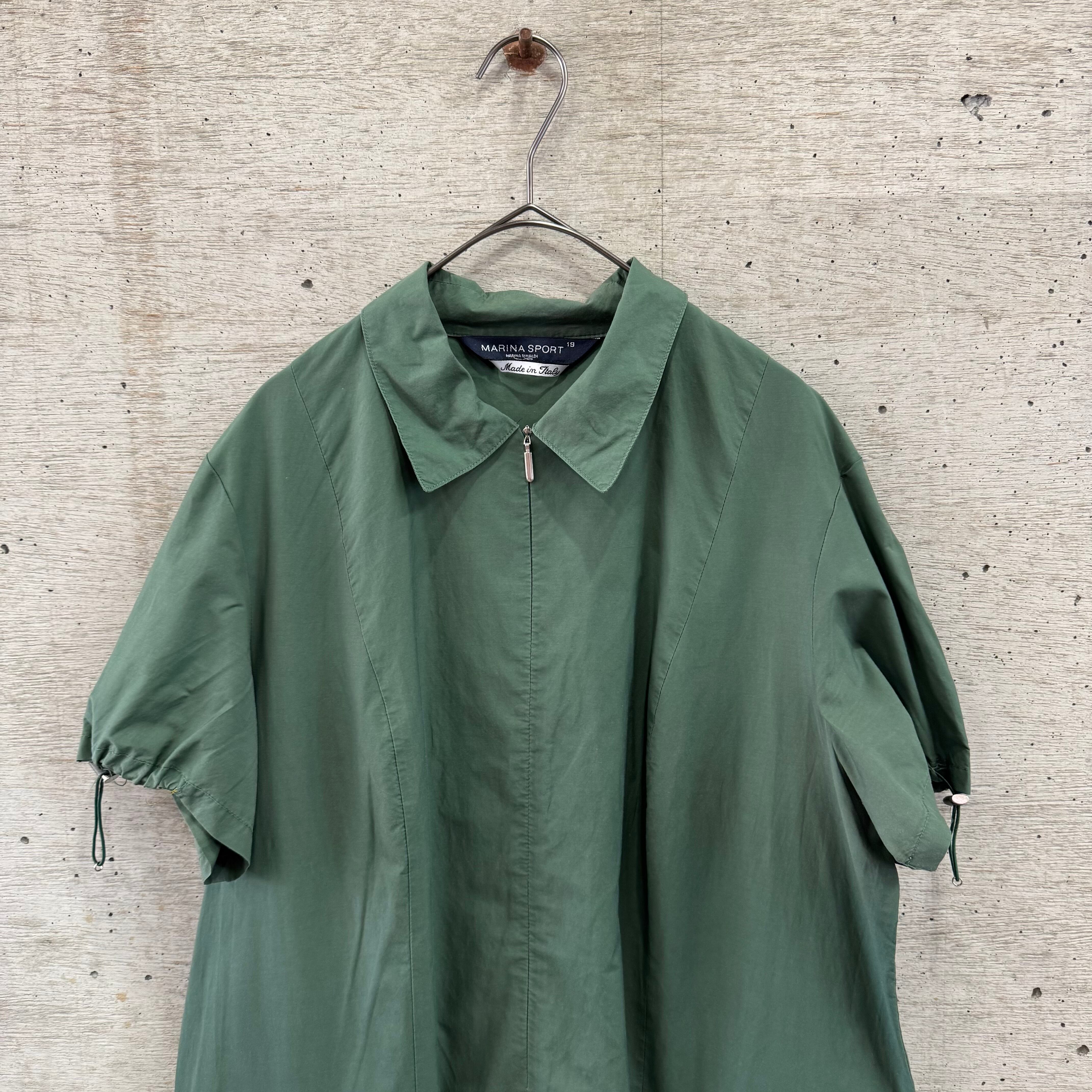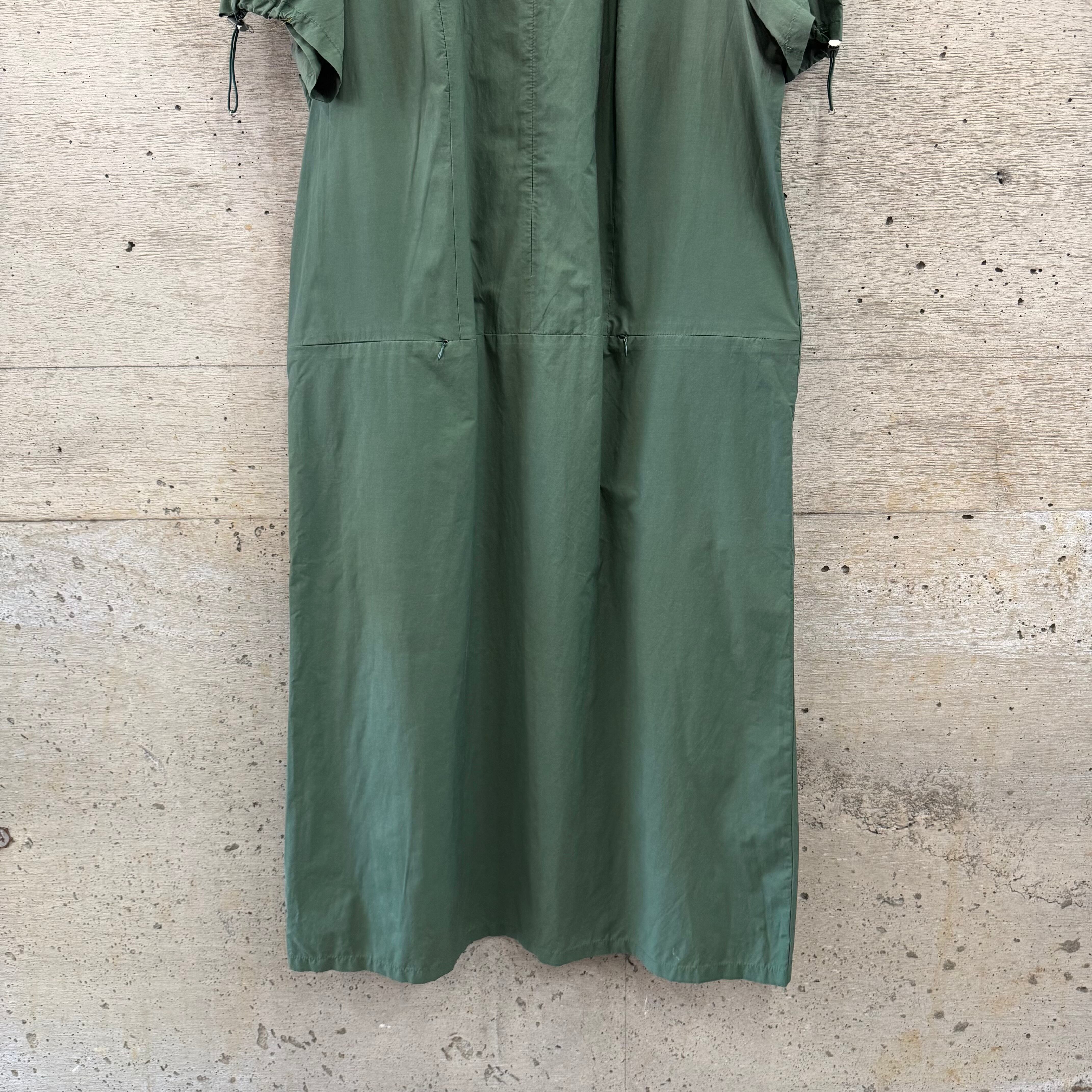 深めの緑が綺麗な軽やかな生地のワンピースです。