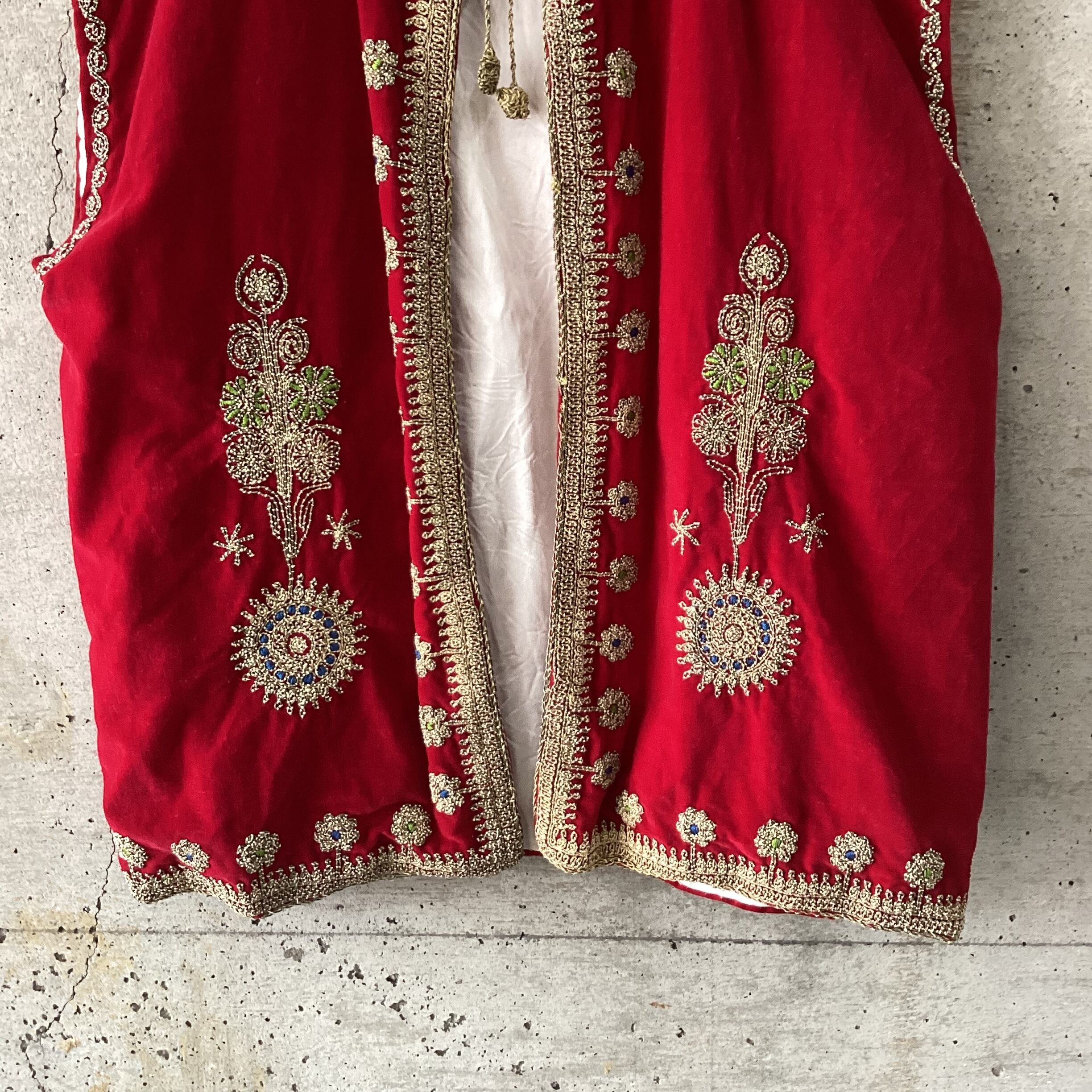 お花のような刺繍に、青と緑がよく合い、可愛らしい雰囲気になります。