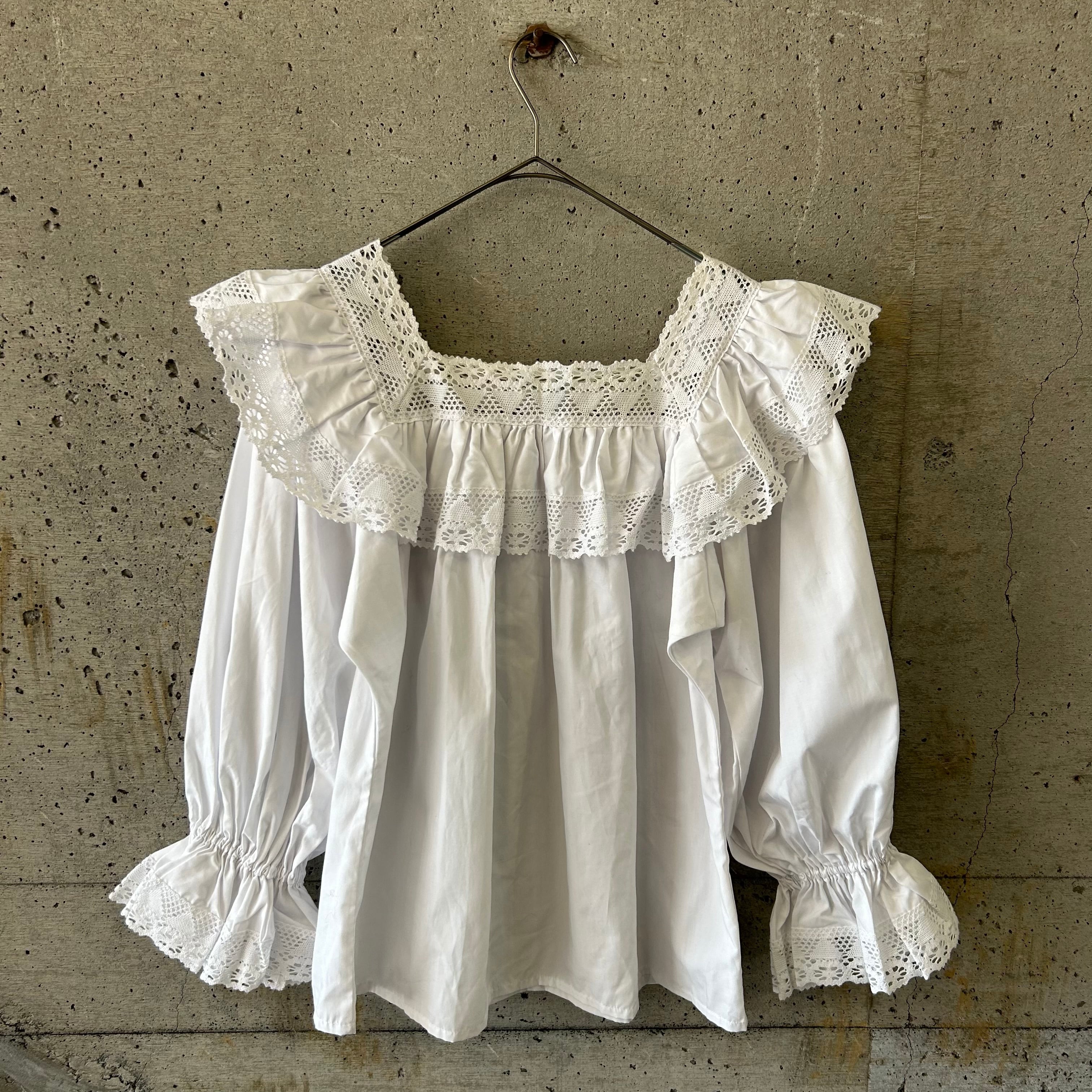 この形のトップスはウエストにもシャーリングやゴムが入っているものが多いですがこのトップスは入っていないのでストレートにおち、ウエストラインを出さずにふんわりと着ることができます。