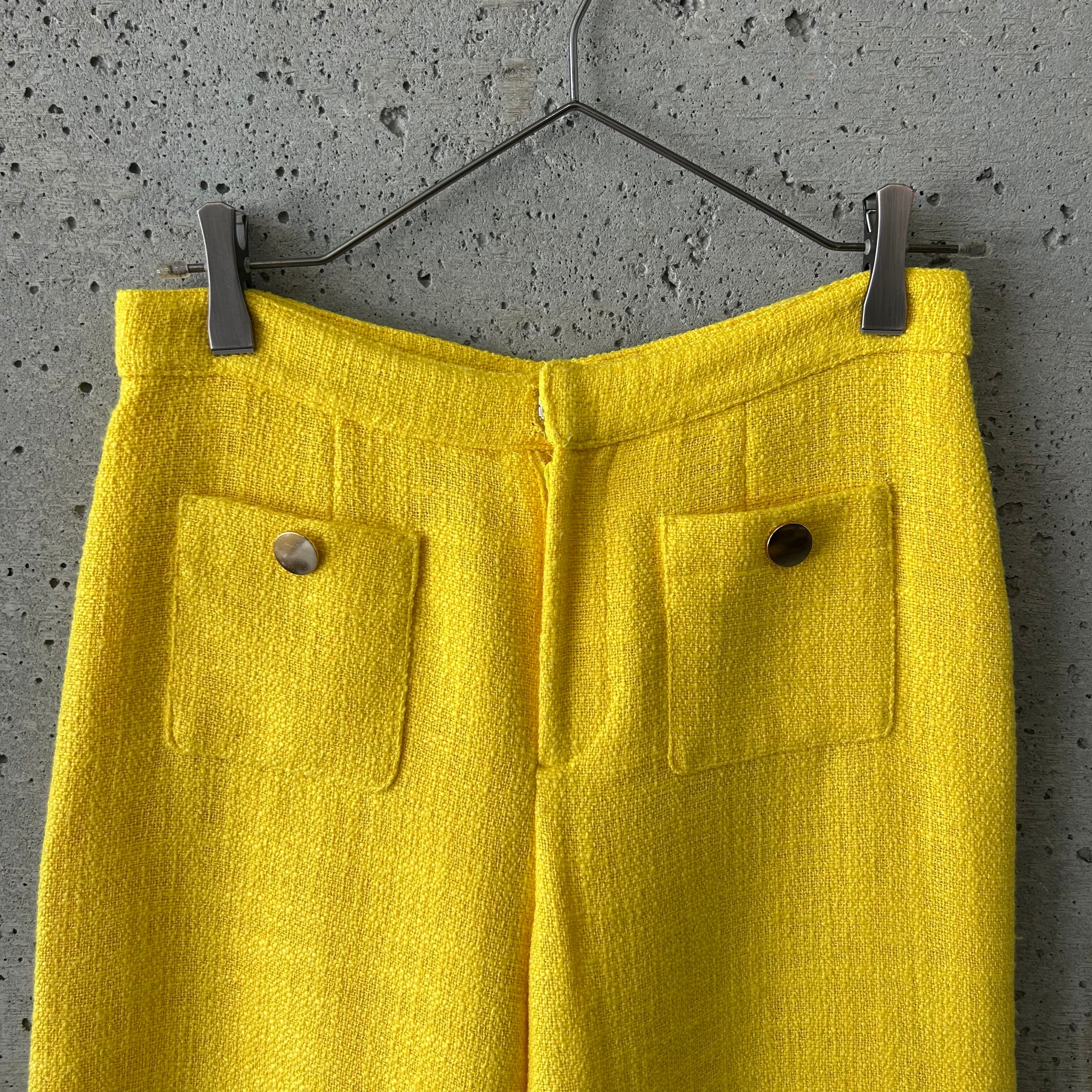 キレイな黄色にポコポコした生地が珍しく素敵なパンツです