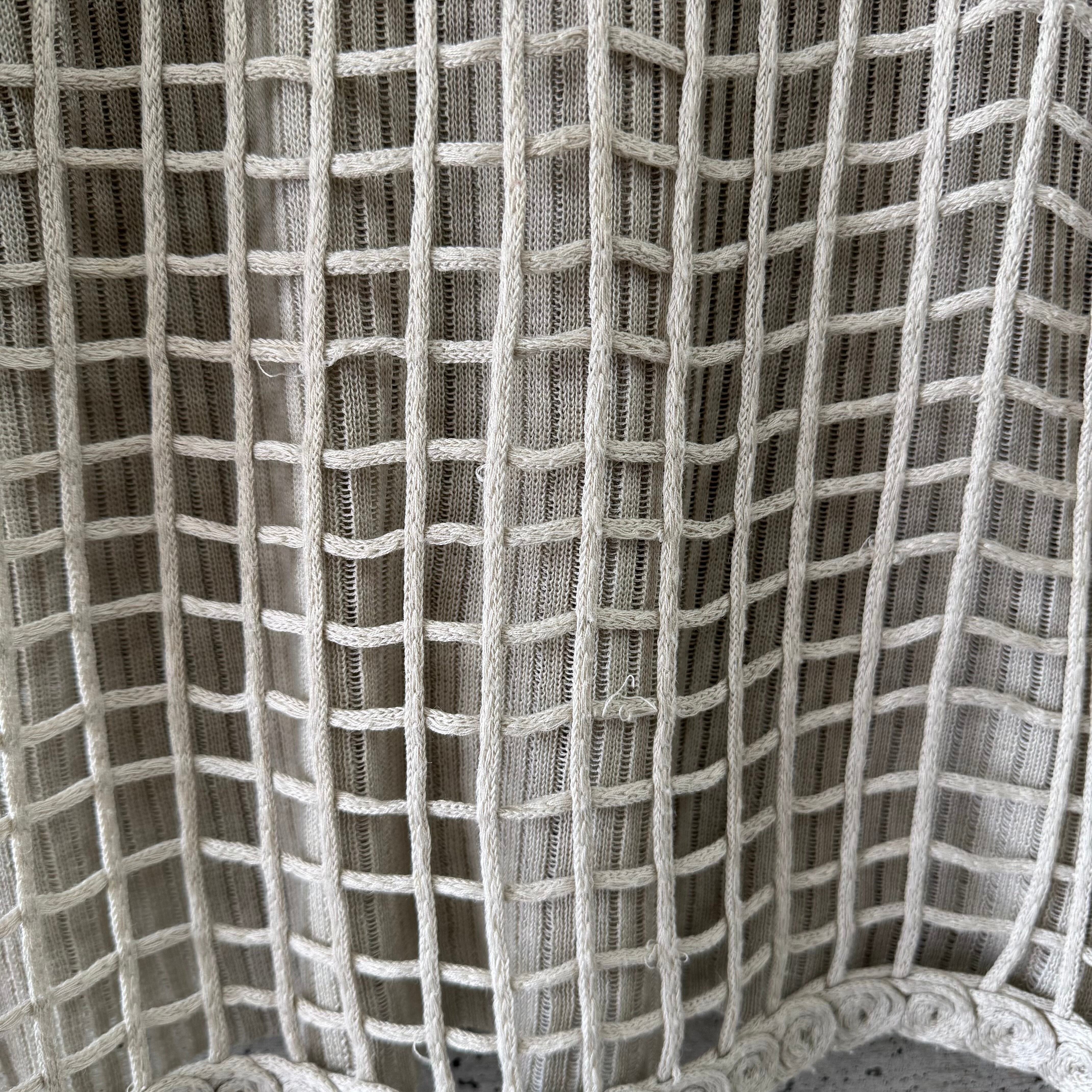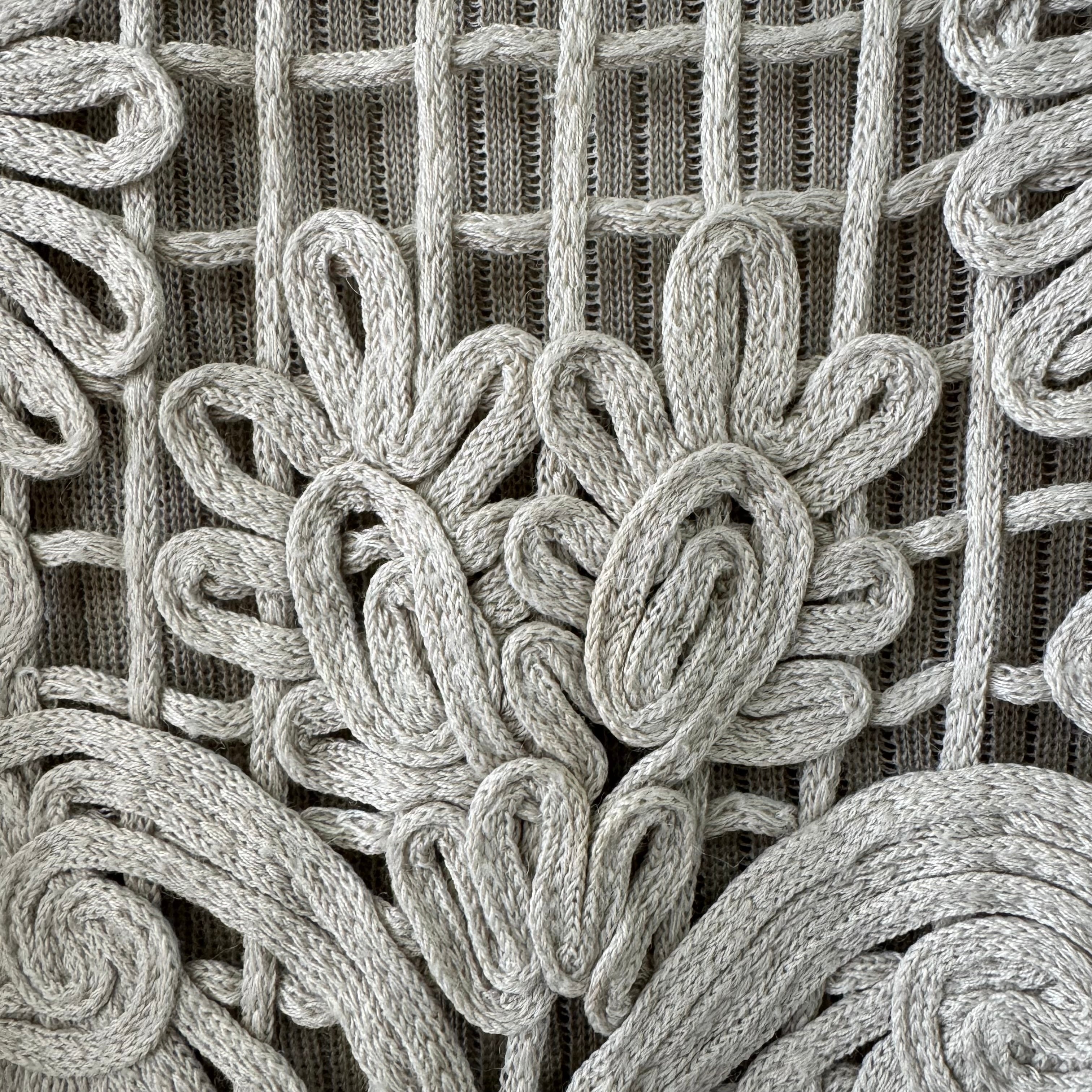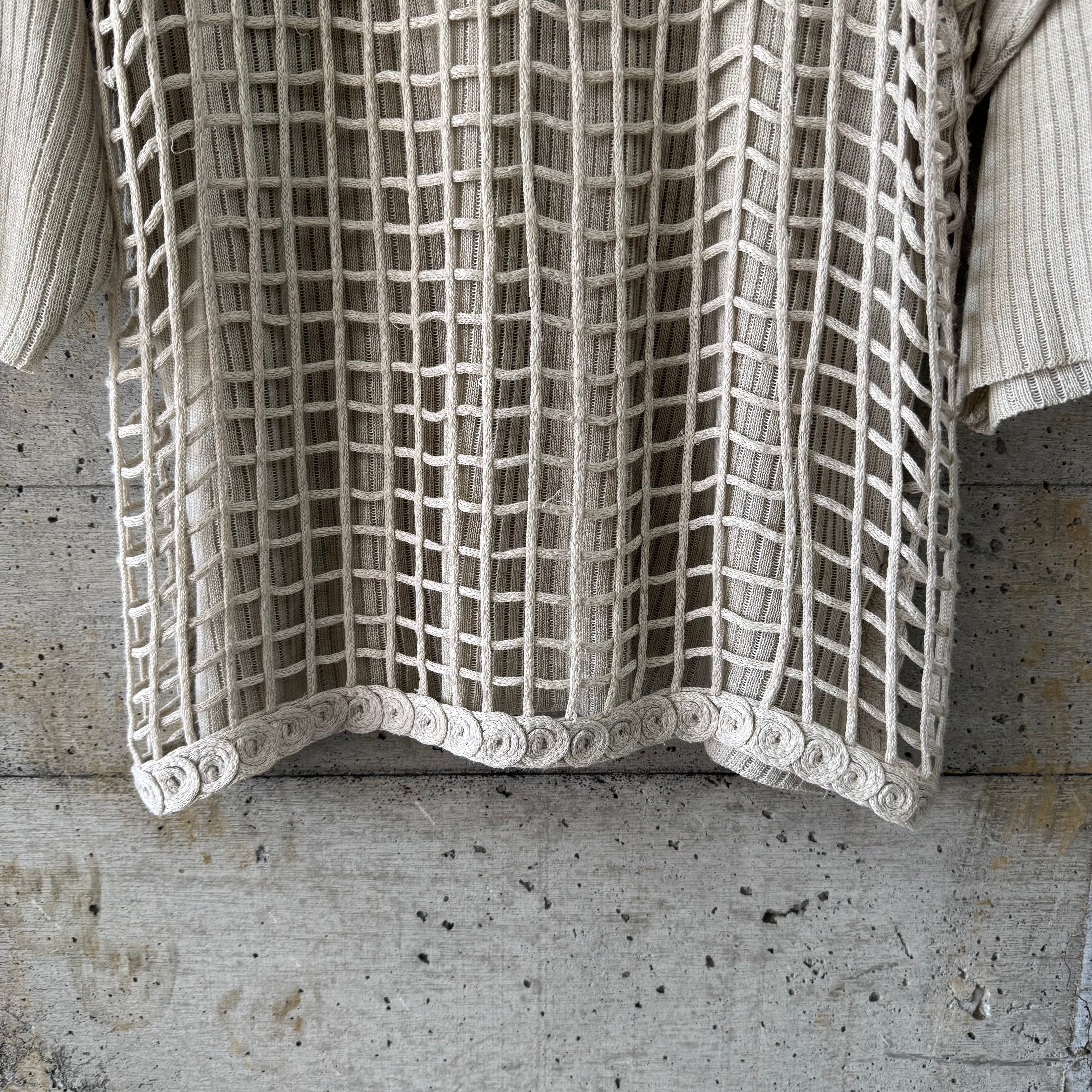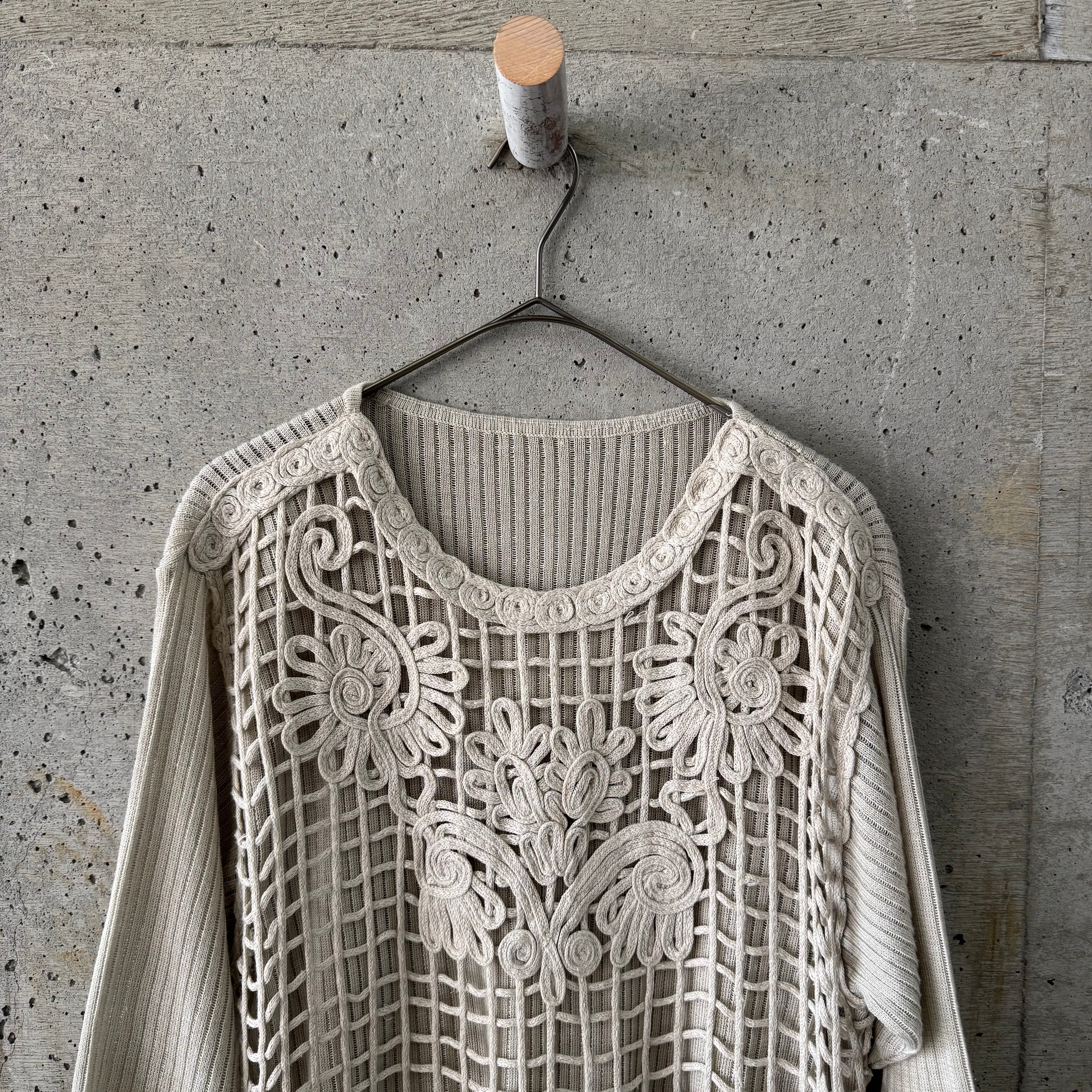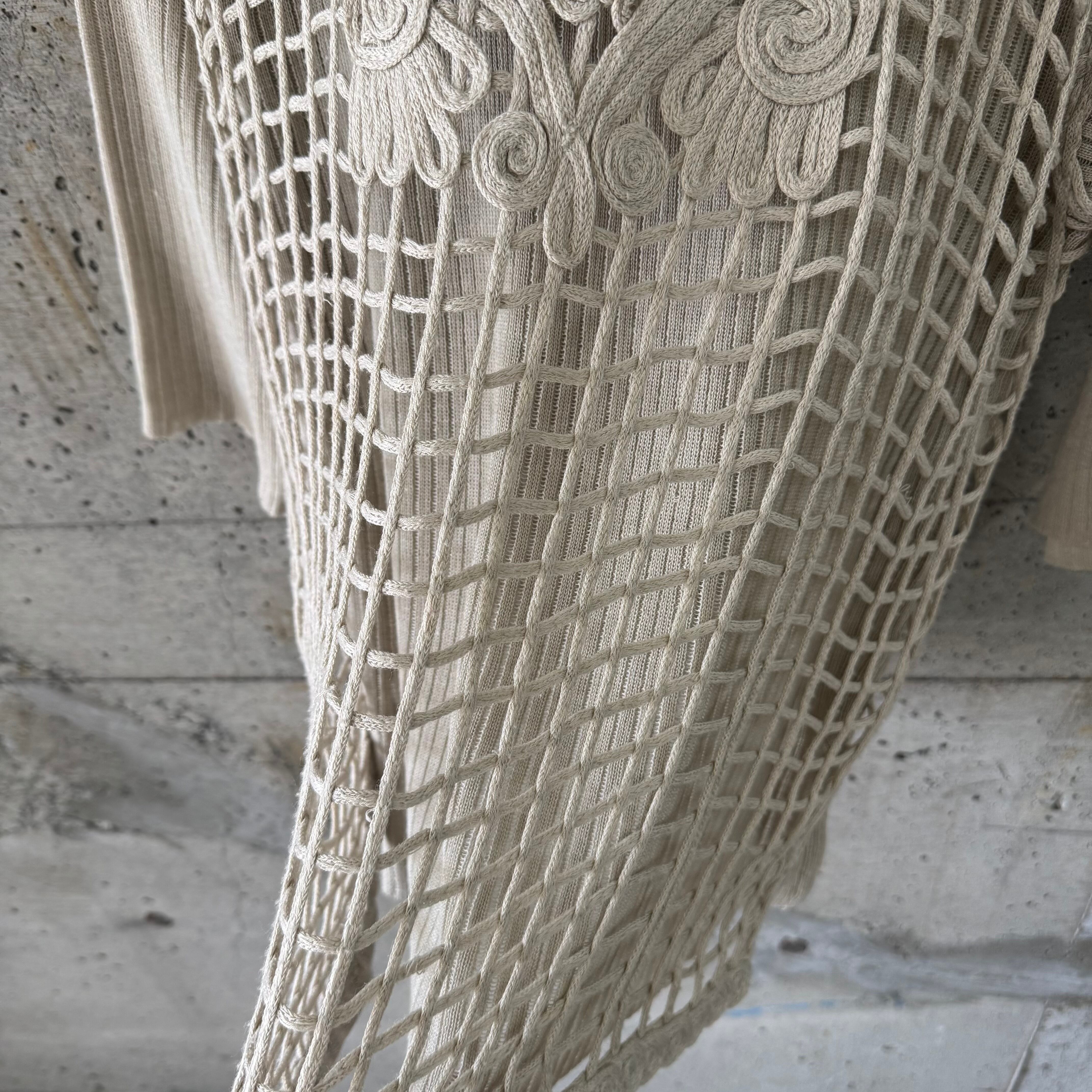 コード刺繍のような装飾がとても可愛く、シンプルな色味ながらも遊び心のある1着になっています。