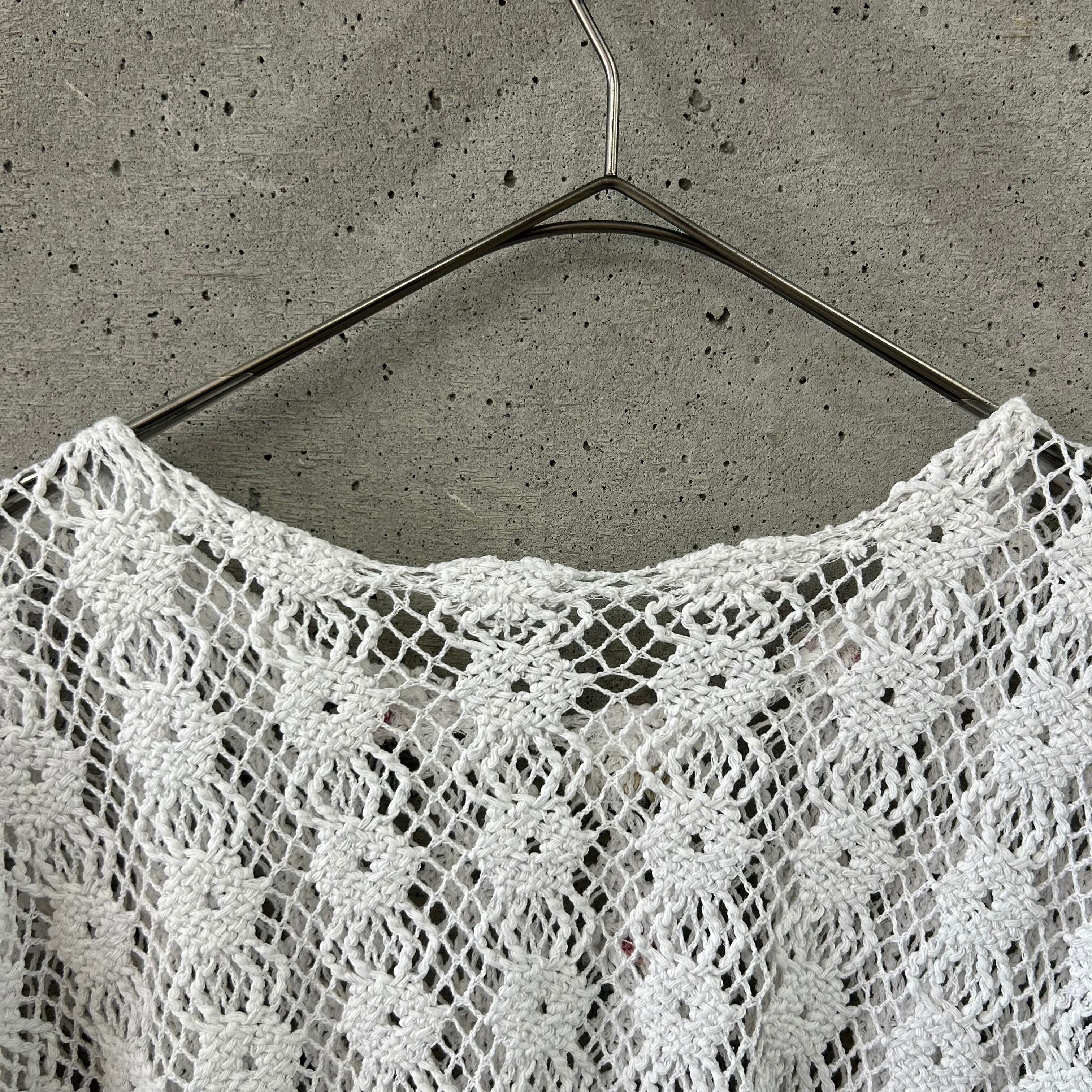 花のモチーフが可愛らしいクロシェトップスです。