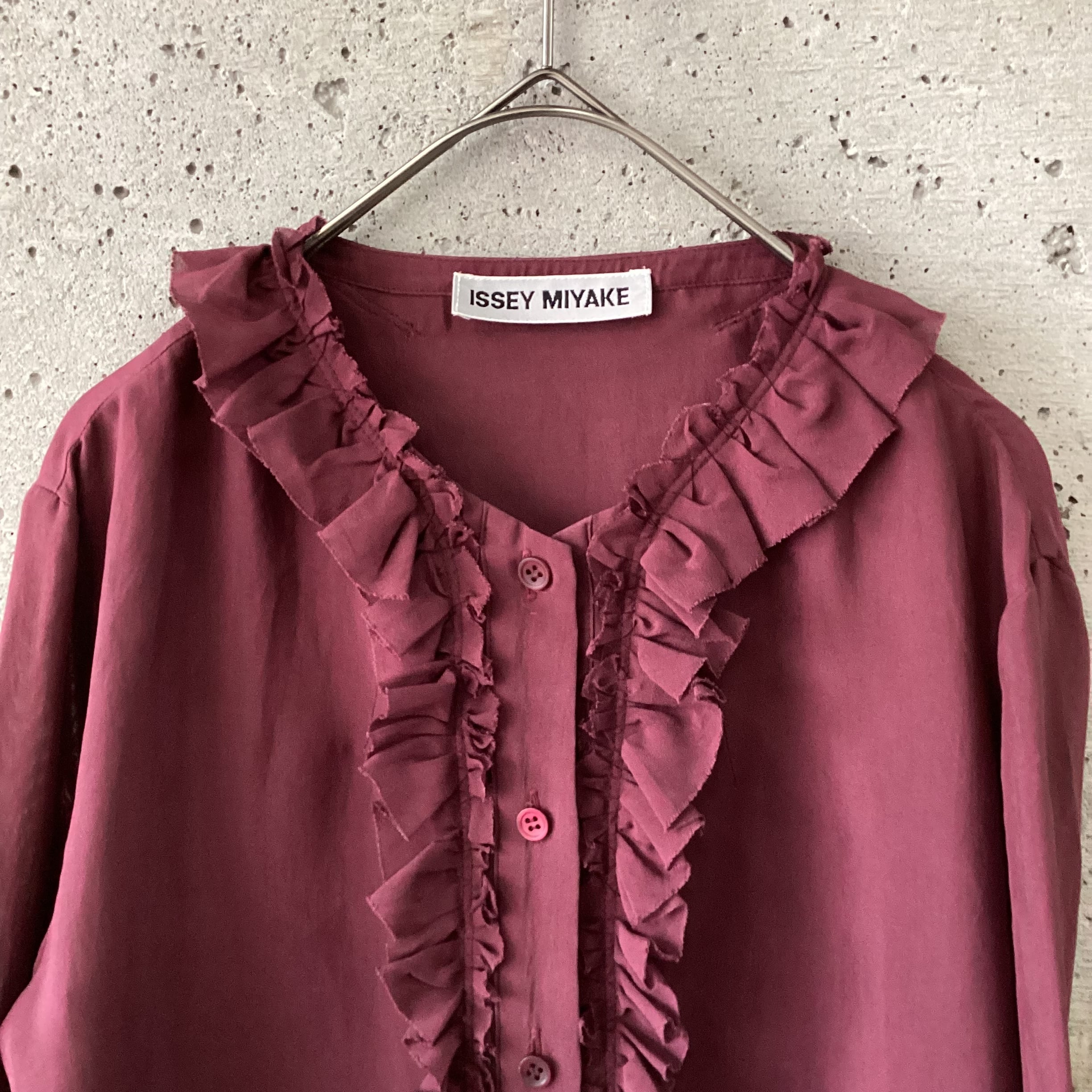 上品なボルドーのシアーシャツです。