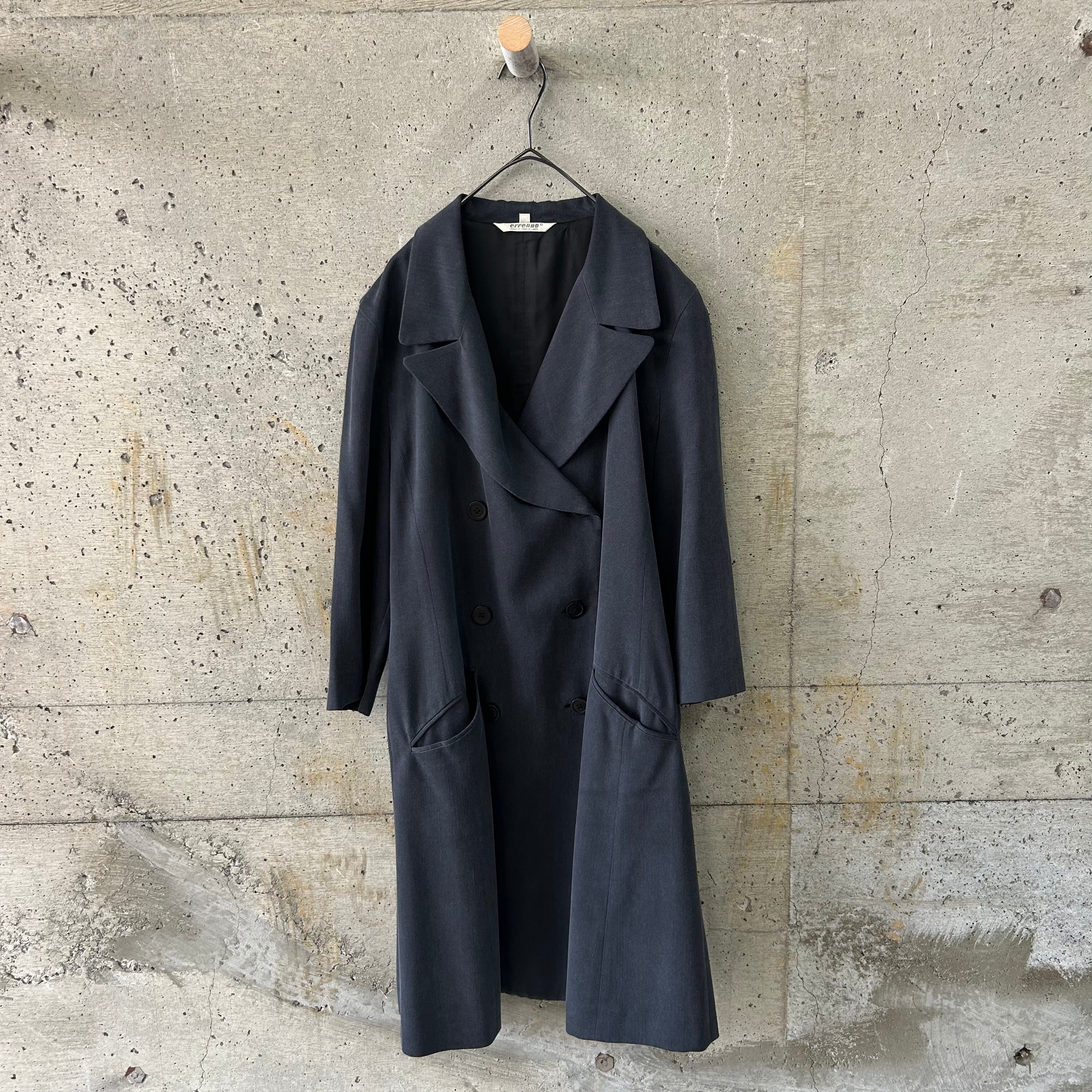 ダブルボタンでかちりとした印象がありますが、襟や裾の角は丸くカットされ、柔らかい印象にもなります。