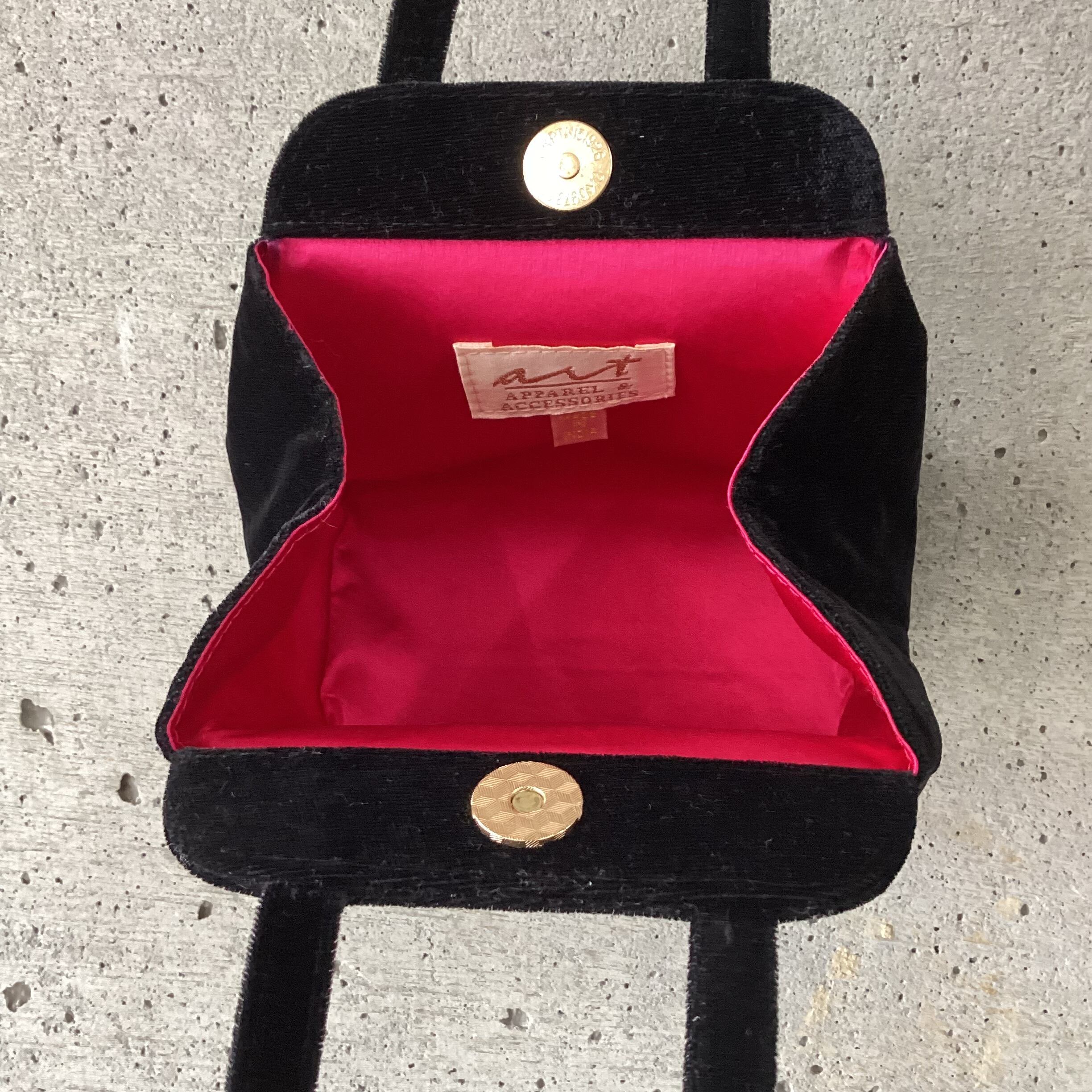コロンとしたフォルムがとても可愛いベロアのミニバッグです