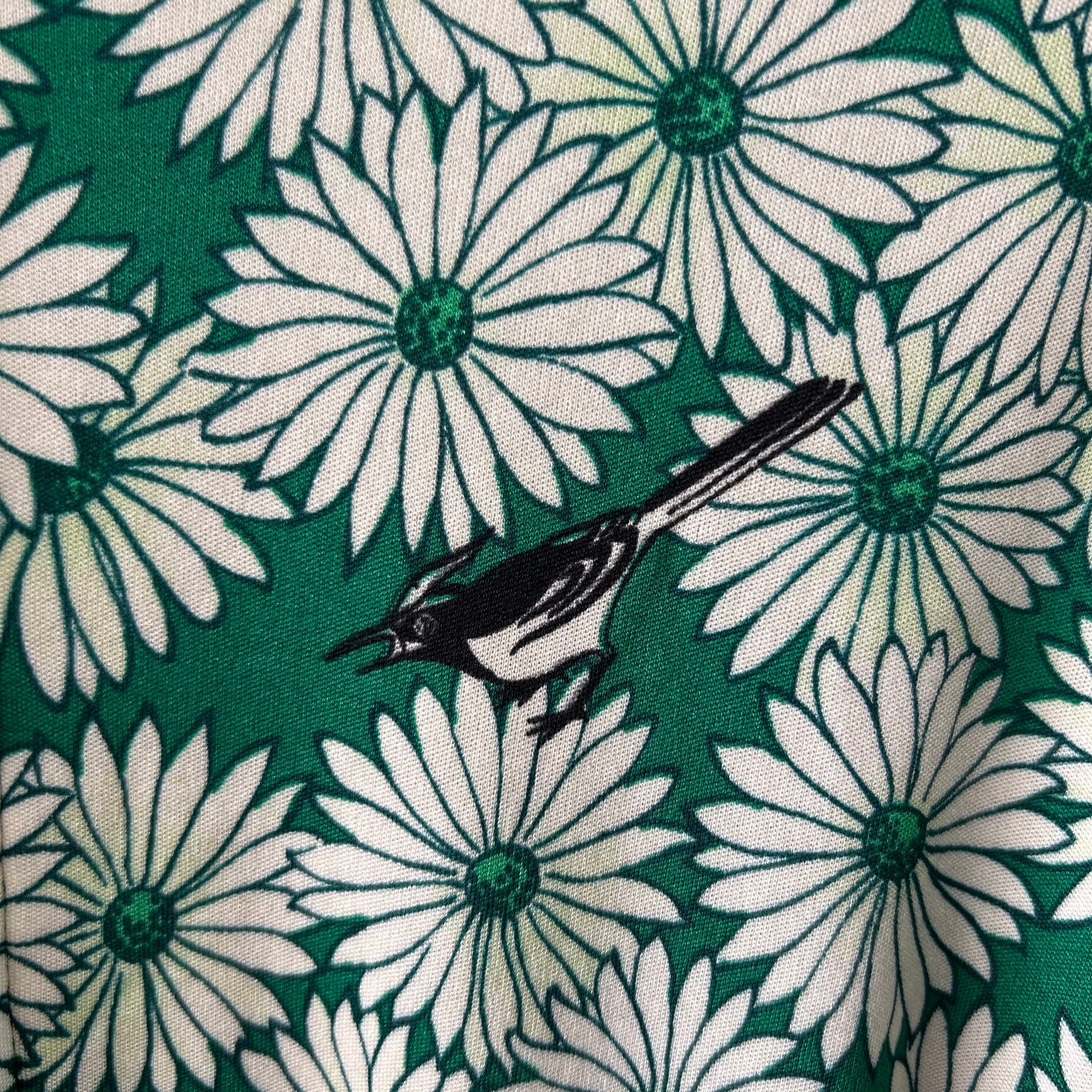 マーガレットのような花が柄として入っていて可愛らしい雰囲気もありつつシルエットが上品でいいバランスになっています。