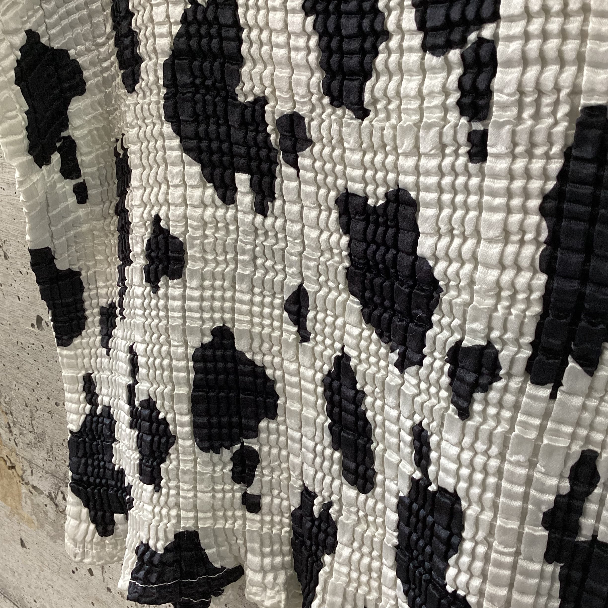 牛柄ですが光沢感のある生地で子供っぽくならず綺麗に着こなせます。