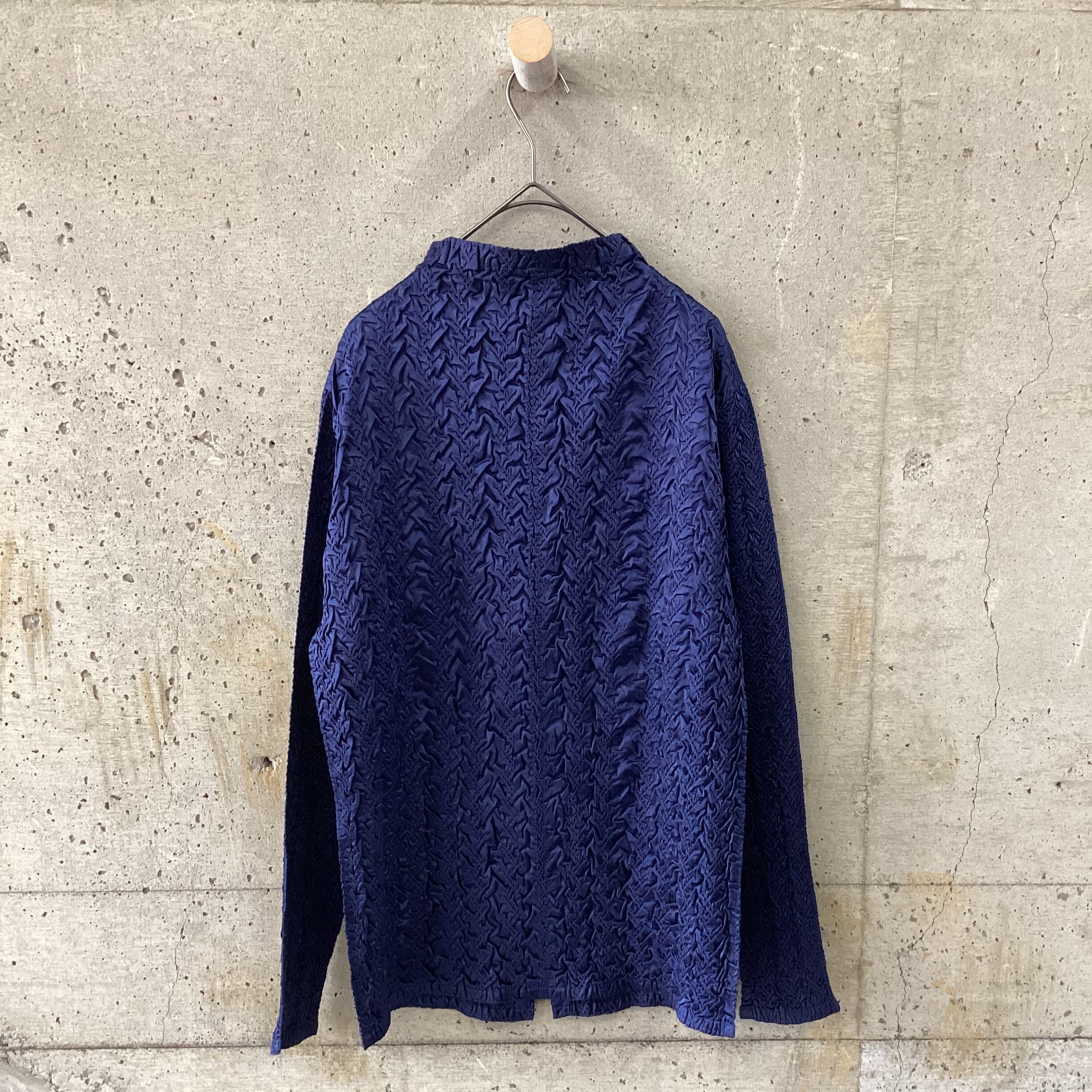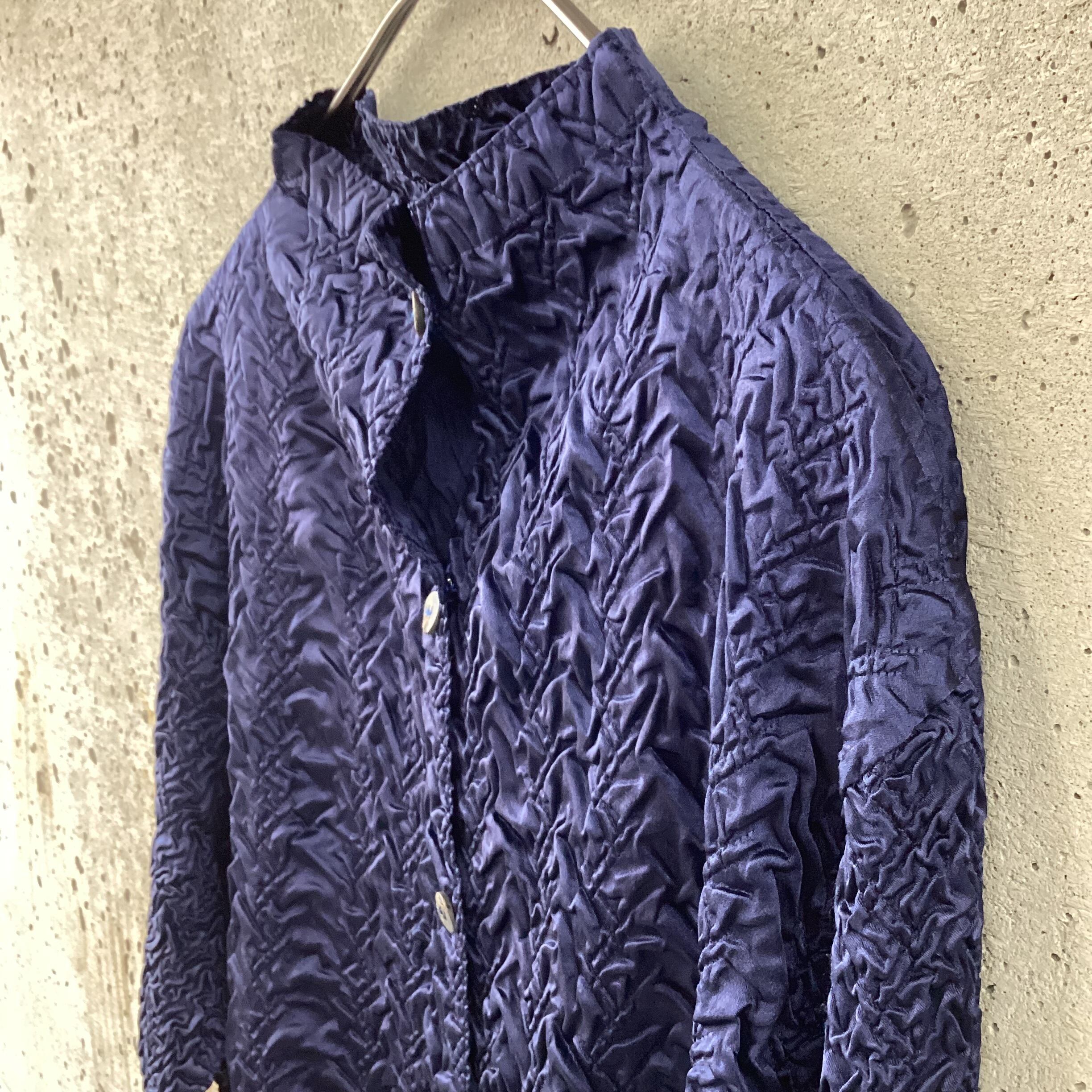 光沢のあるネイビーの生地は上品さがあり、スタンドカラーで綺麗なシルエットになってくれます。