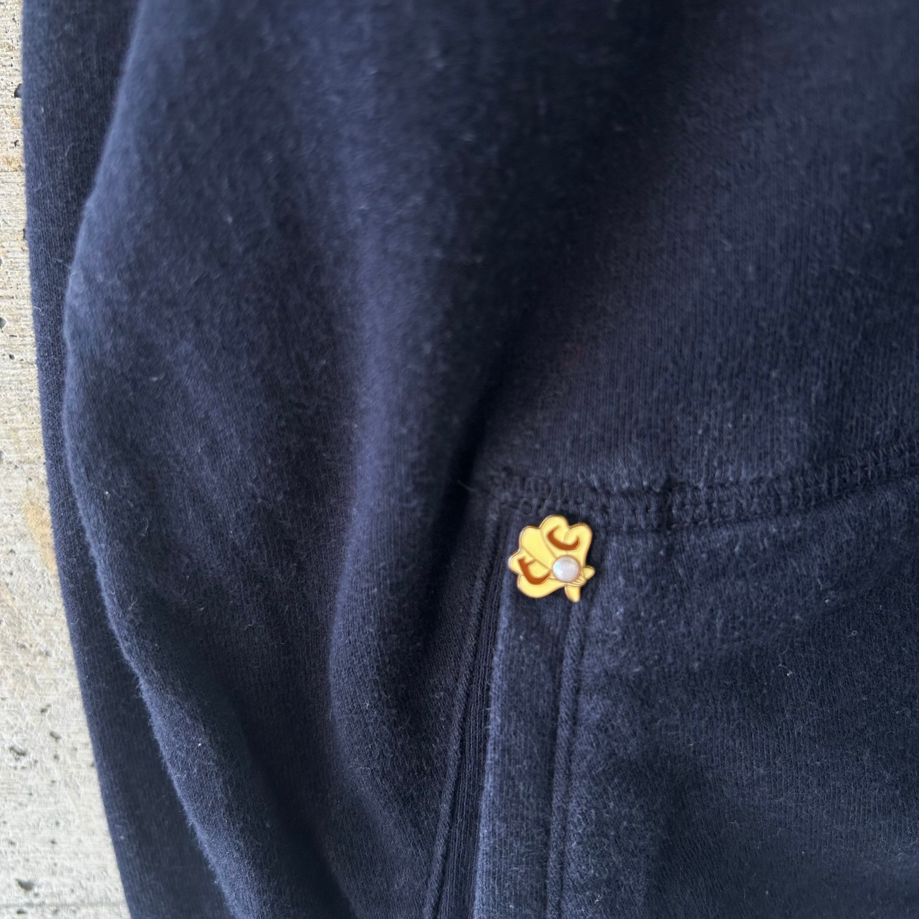 ポケットの4つ端には貝殻のモチーフにtcの文字が書かれたチャームがついています。
