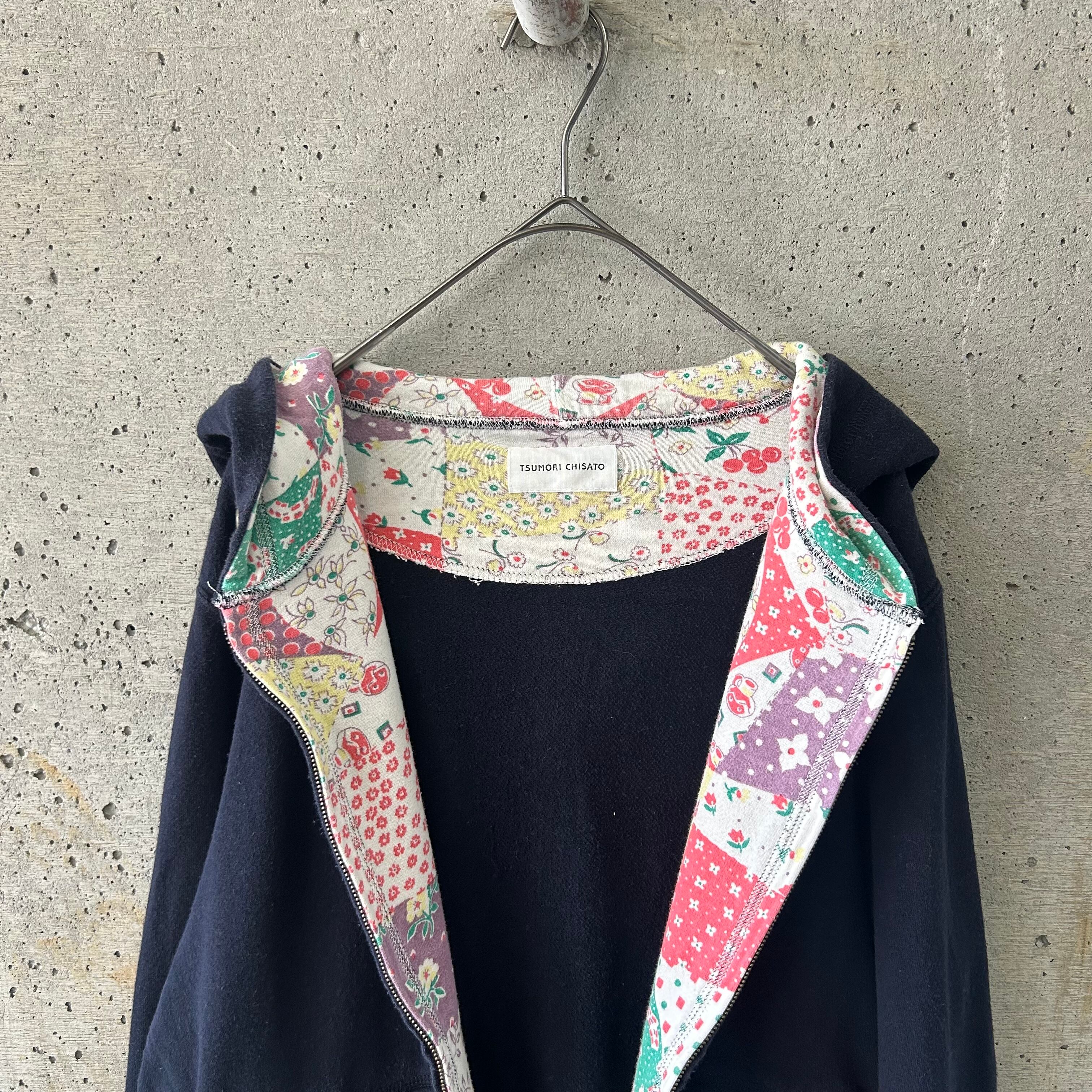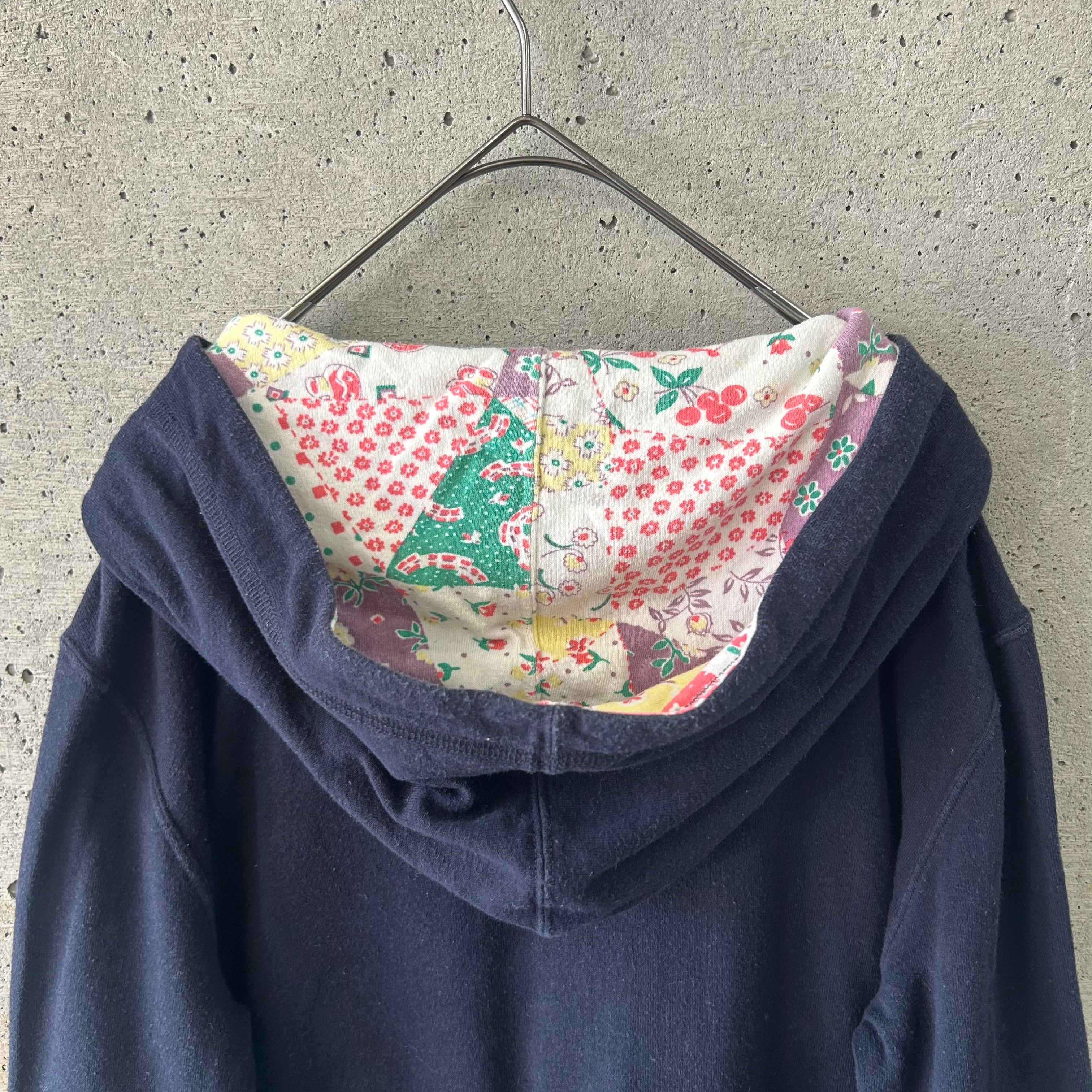 落ち着いたシンプルなデザインですが、カラフルなパッチワーク風の裏地がとても可愛く、フードや首元からチラッと見えているのがさりげなく、素敵です。