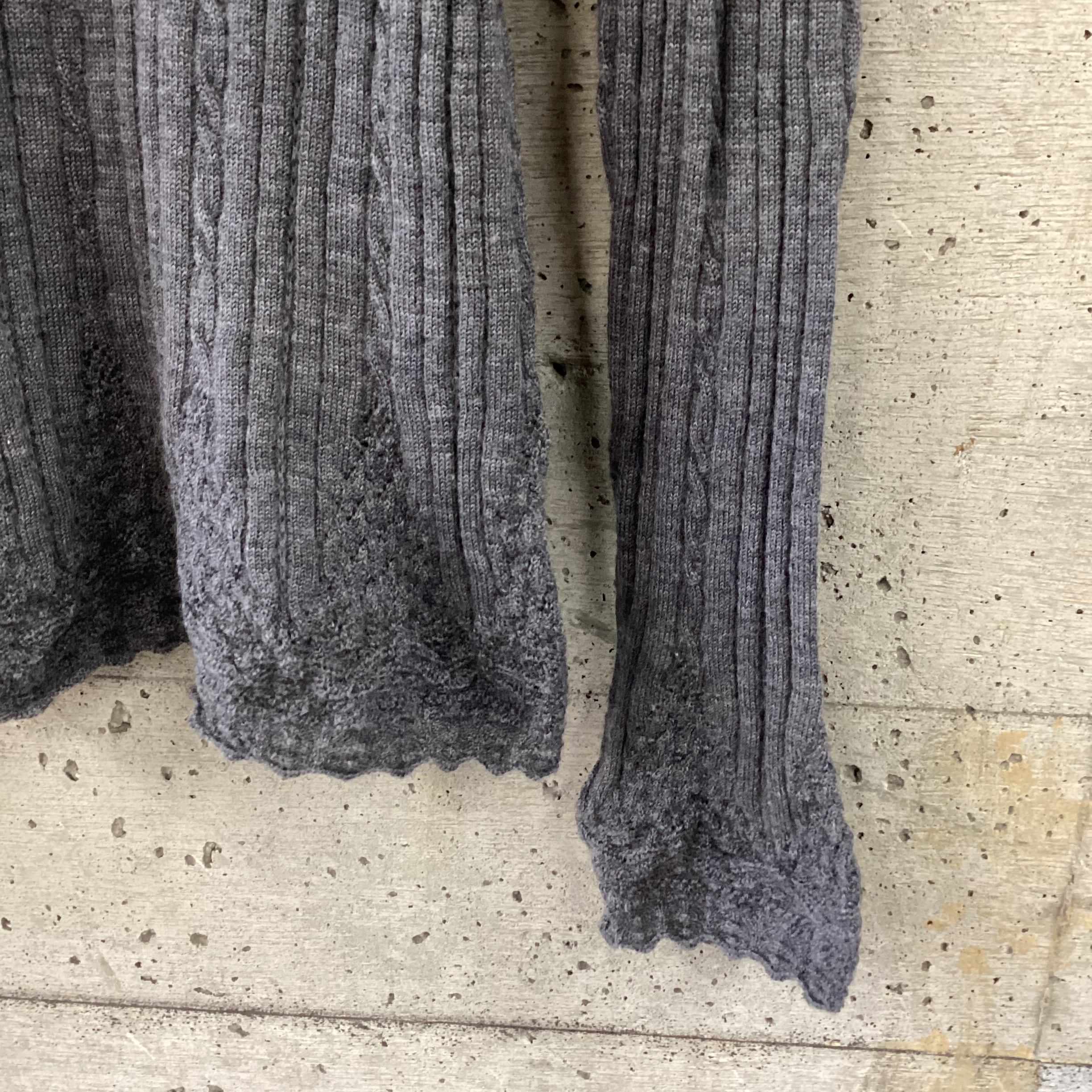 裾や袖口はレースのような編みで、ほんのり広がるシルエットが女性らしい印象に。