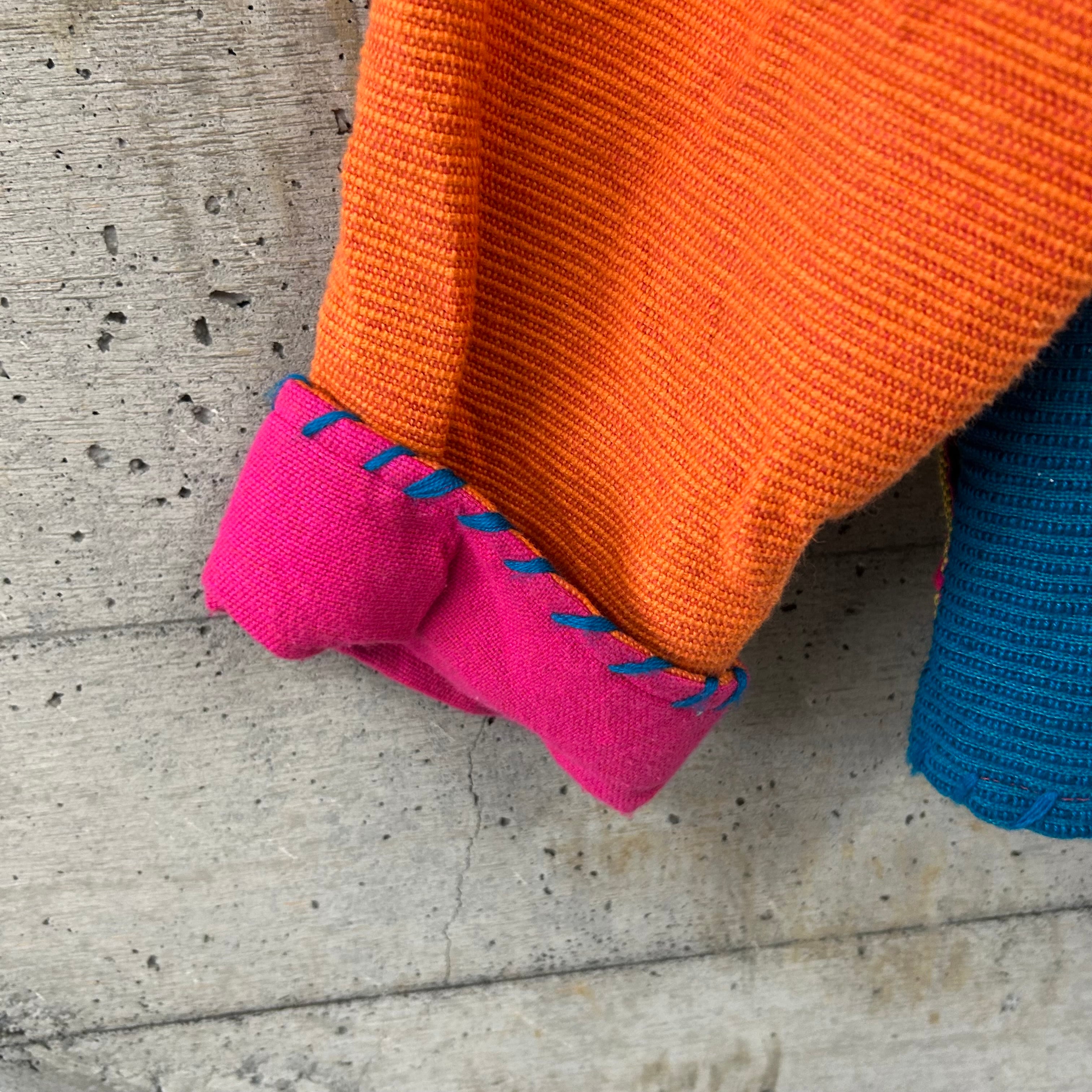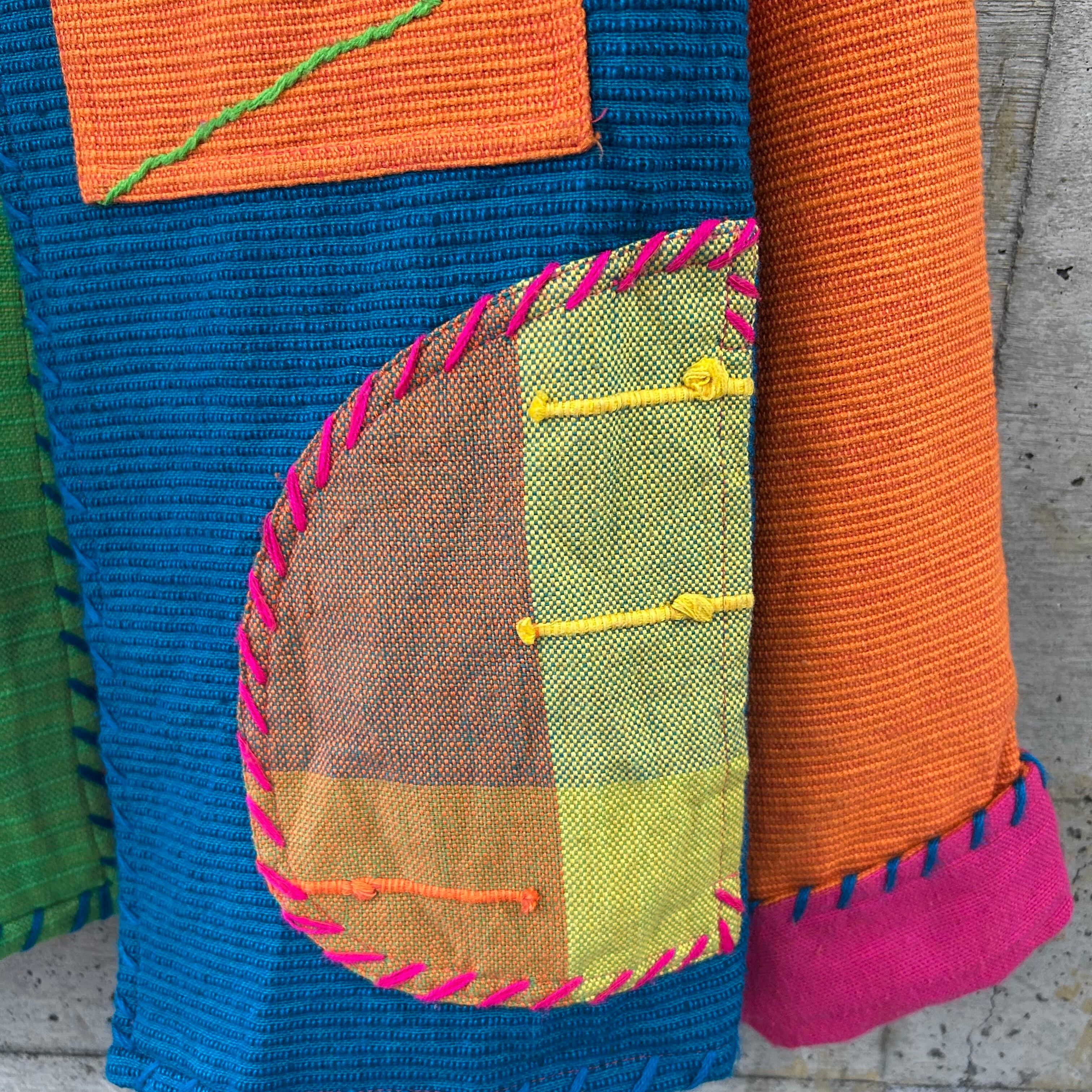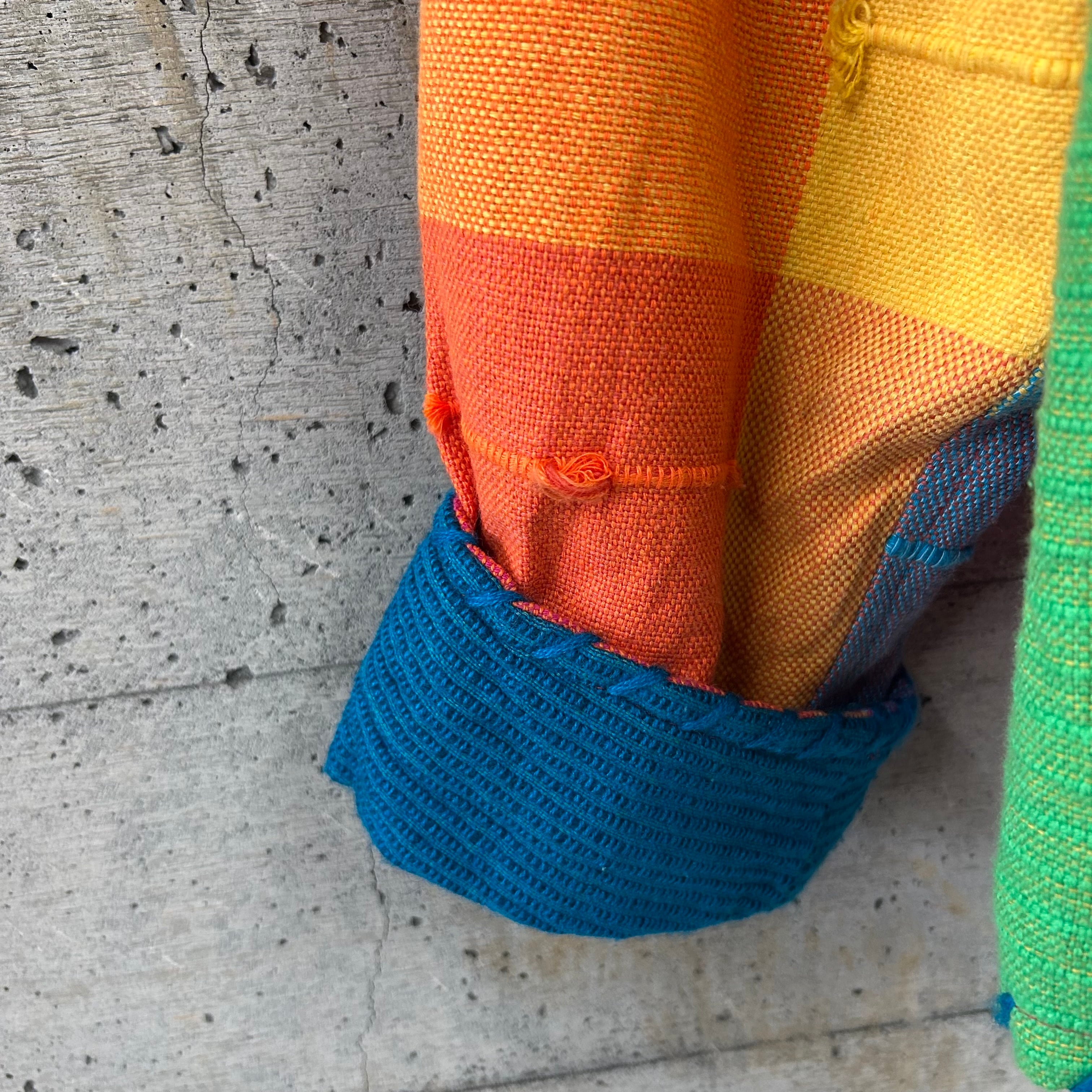 いろんな生地のいろんな色での切り替えがありますが、全て粗く織られているので統一感があります。