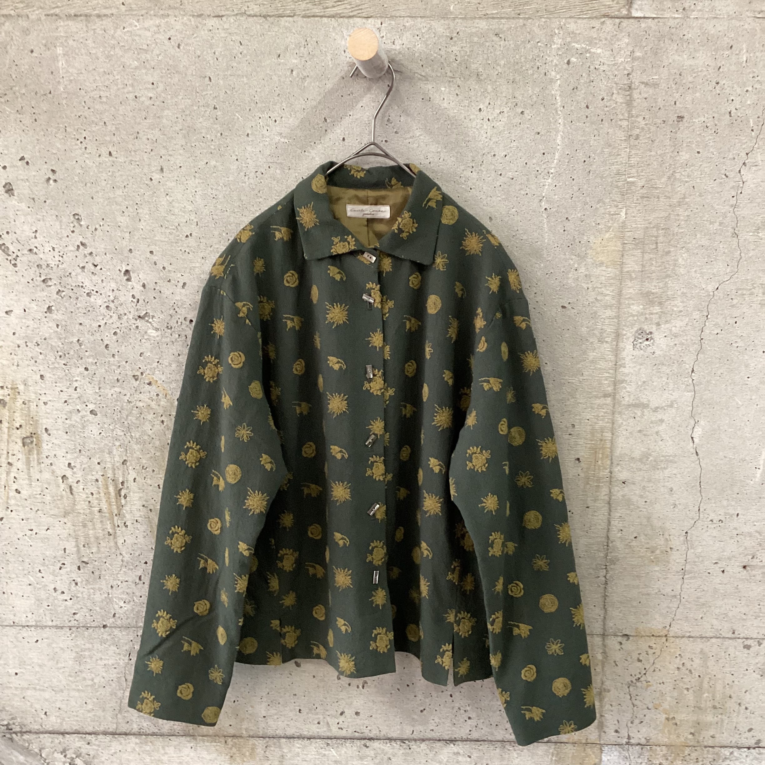 ジャケットのボタンはシェルボタンですが、長方形とあまり見ない形をしていてとても可愛いです。