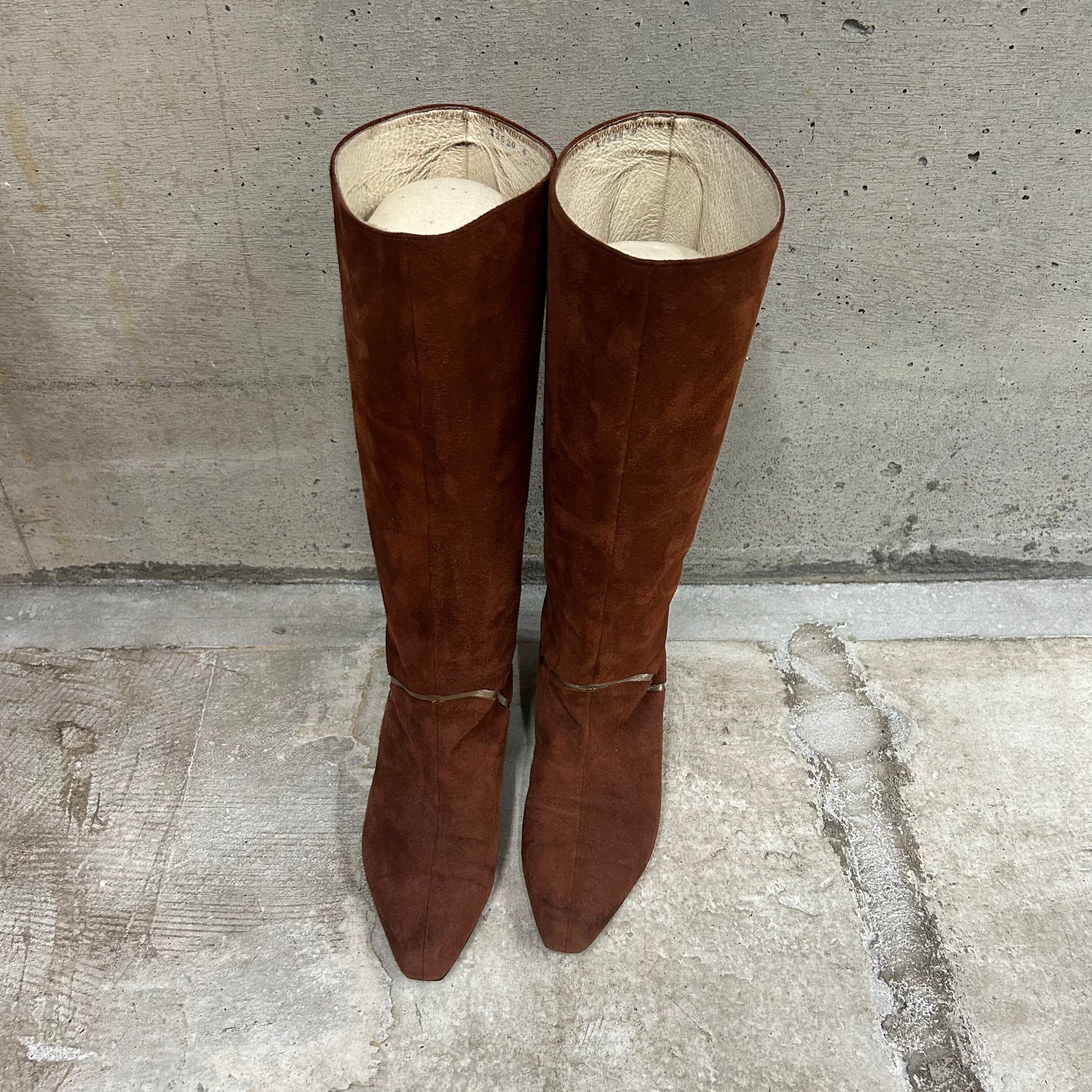 ブラウンのスエードロングブーツです。