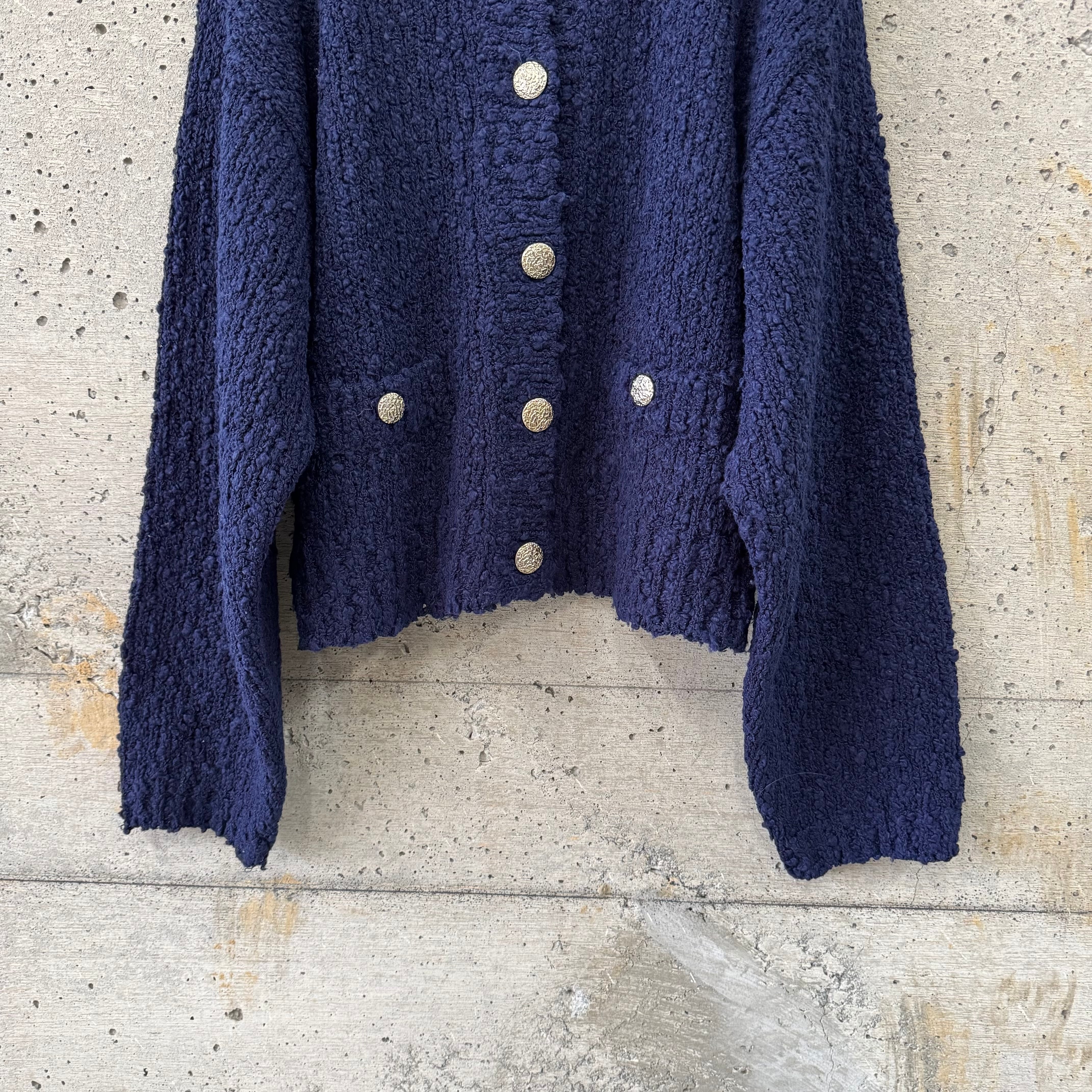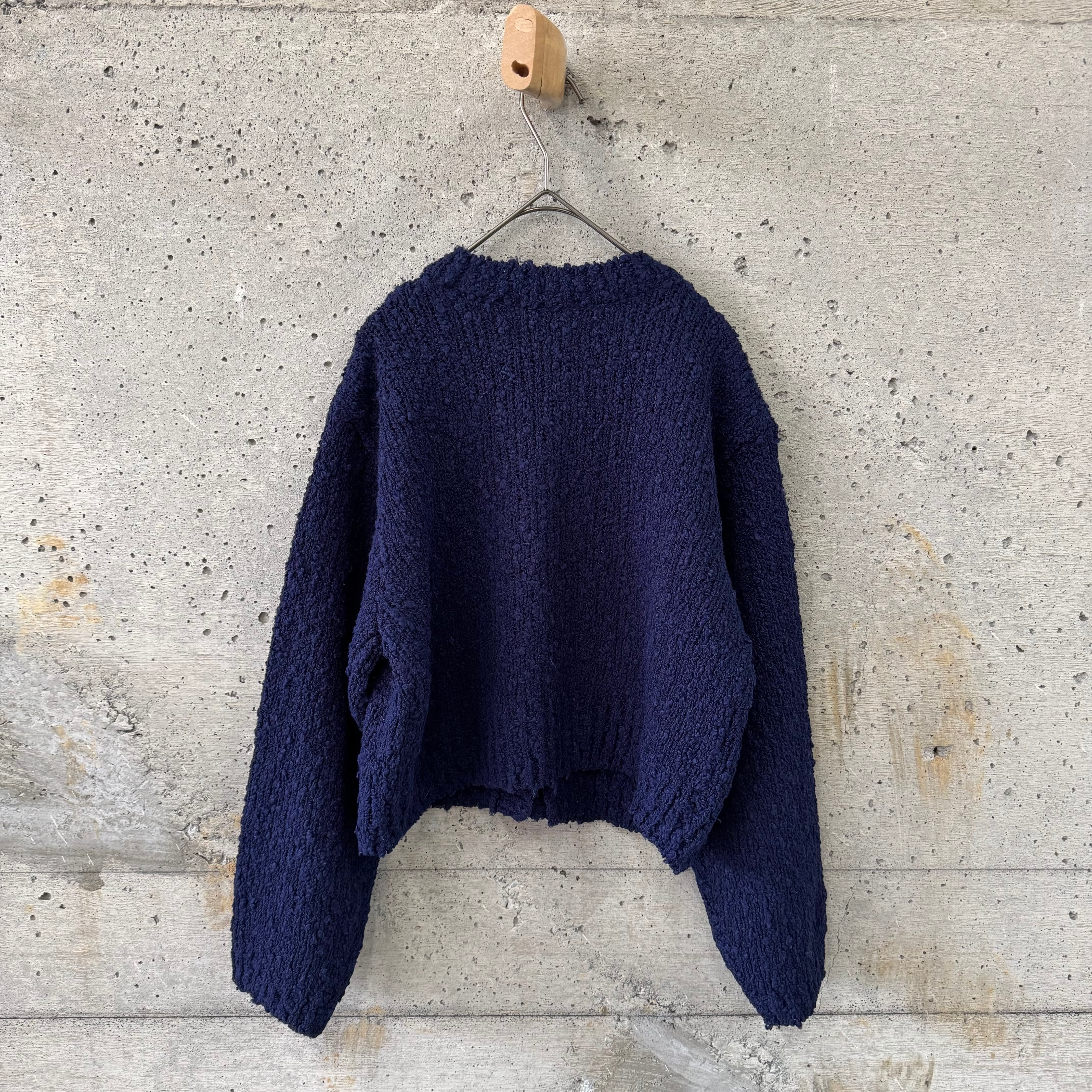 ポコポコした生地が心地いいカーディガンです。