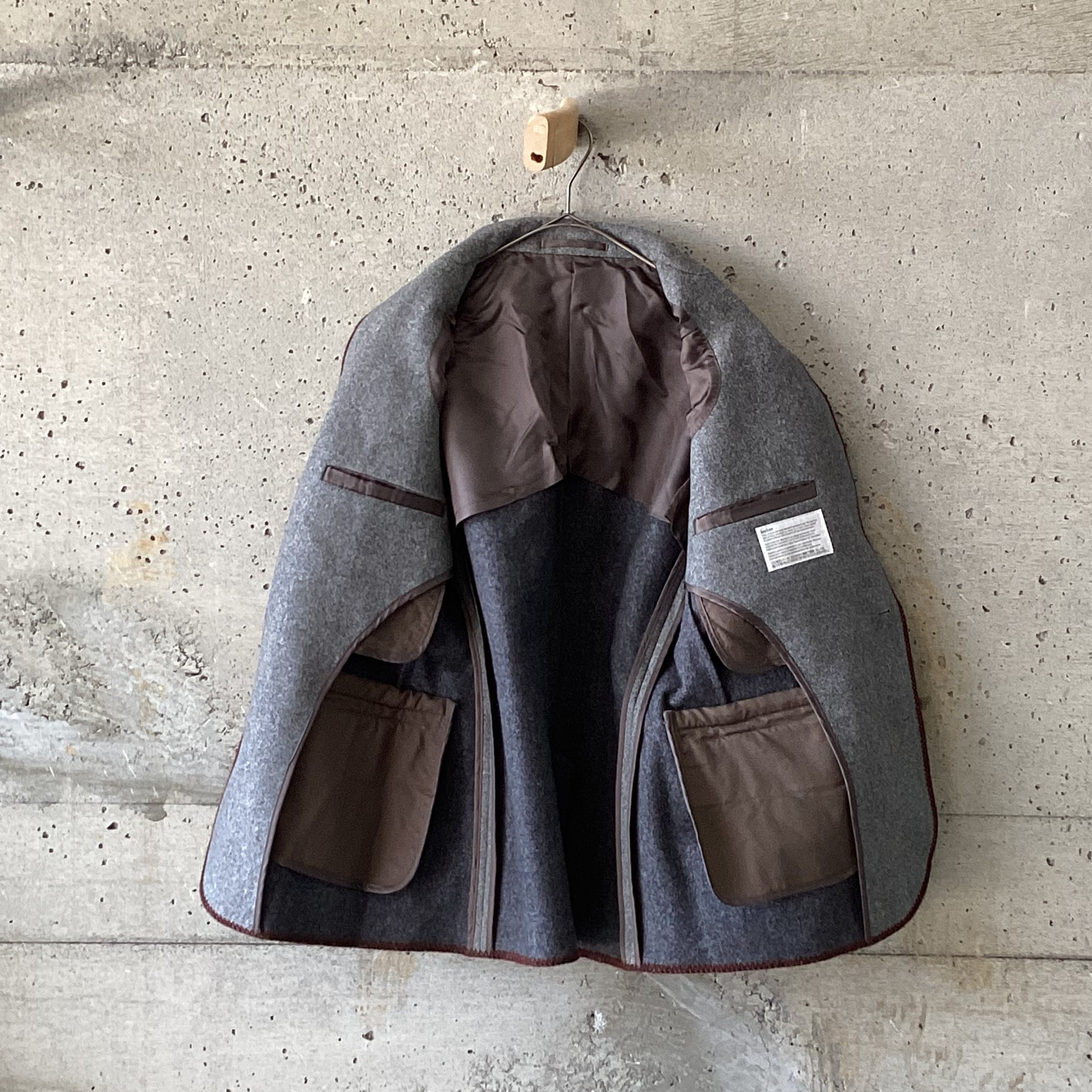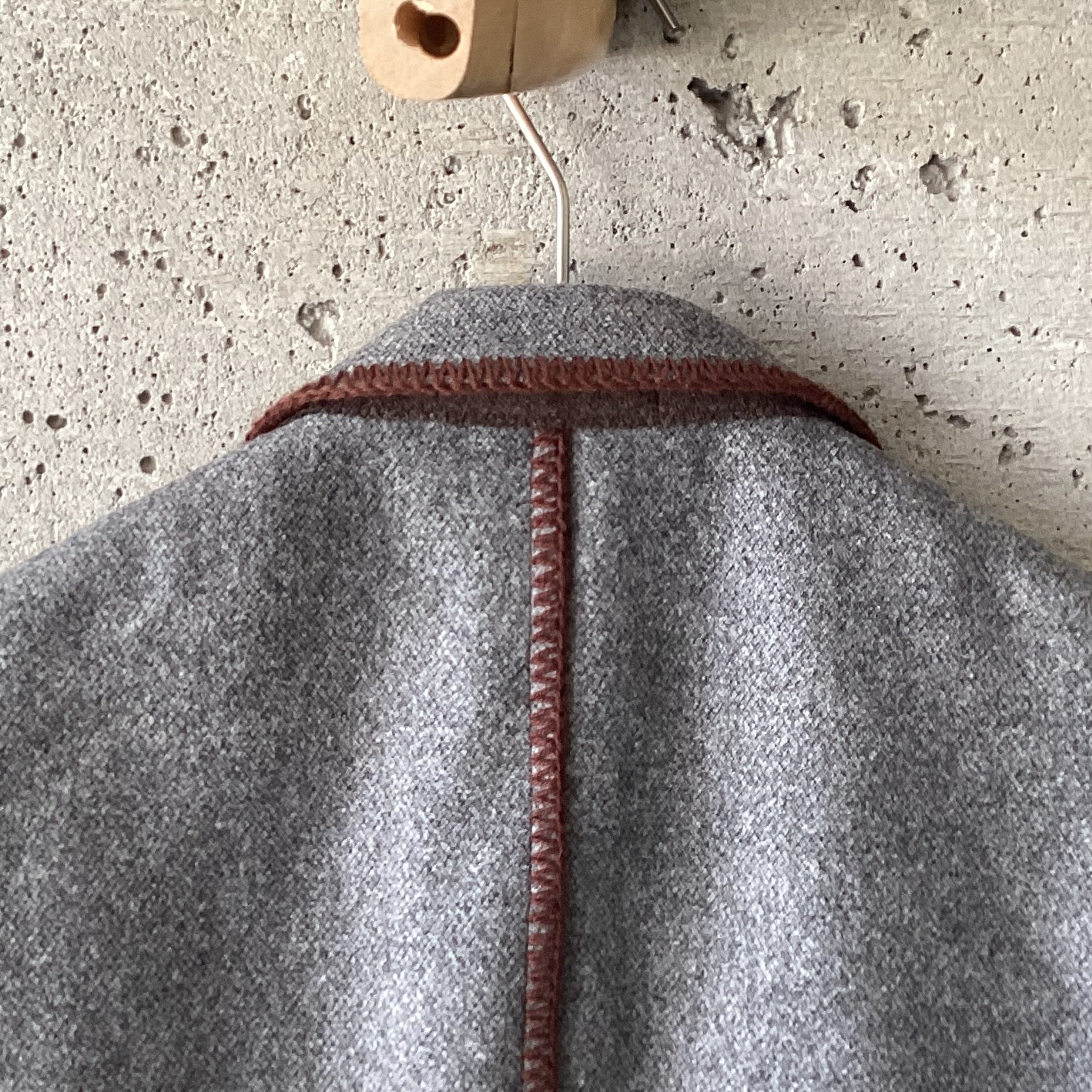 肌に吸い付くようなカシミヤ混のウール生地は滑らかで暖かく、ステッチも相まってフェルトのような見た目をしています。