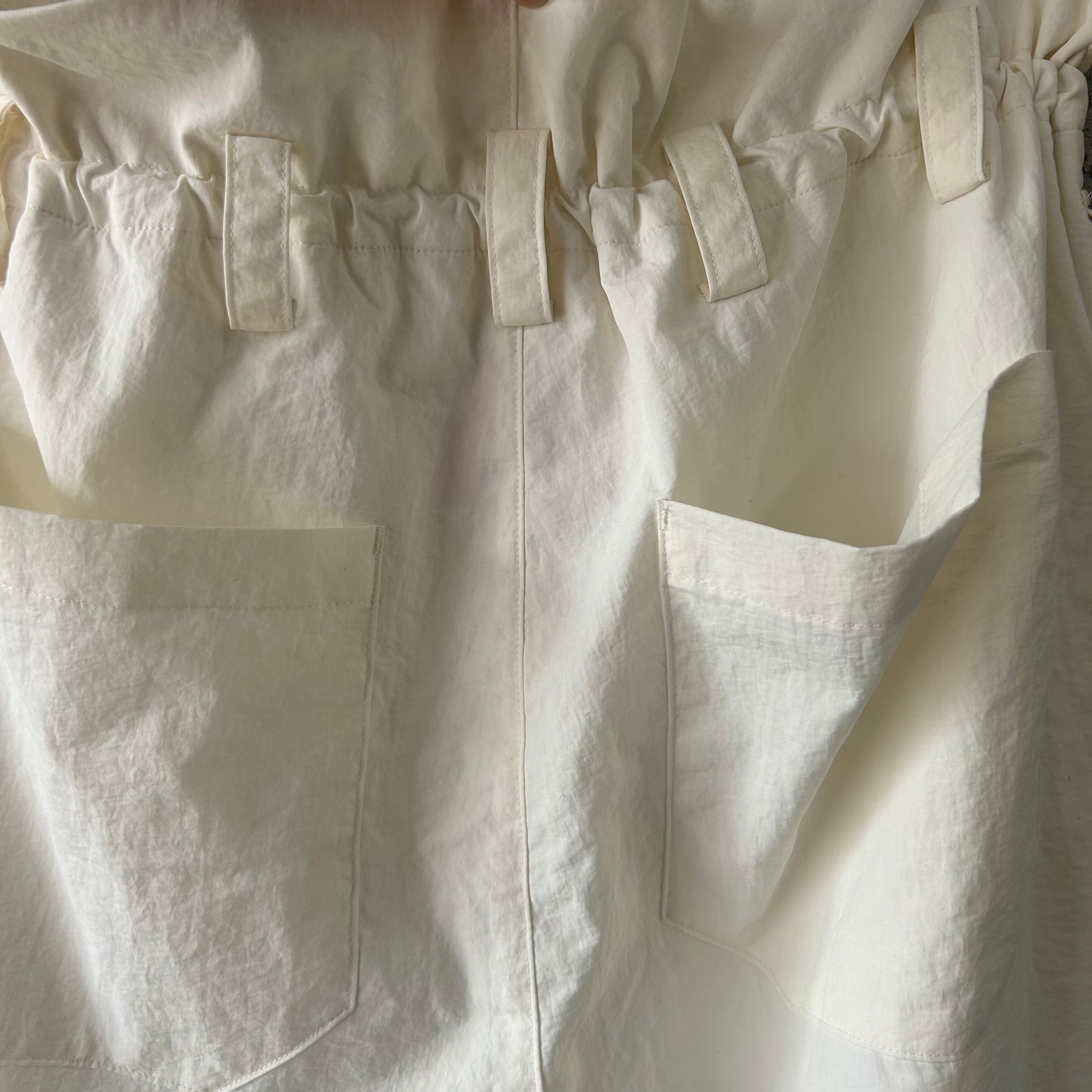 ウエスト、裾にドローコードがついていて、コードはゴムなので着脱や調節がしやすいです。