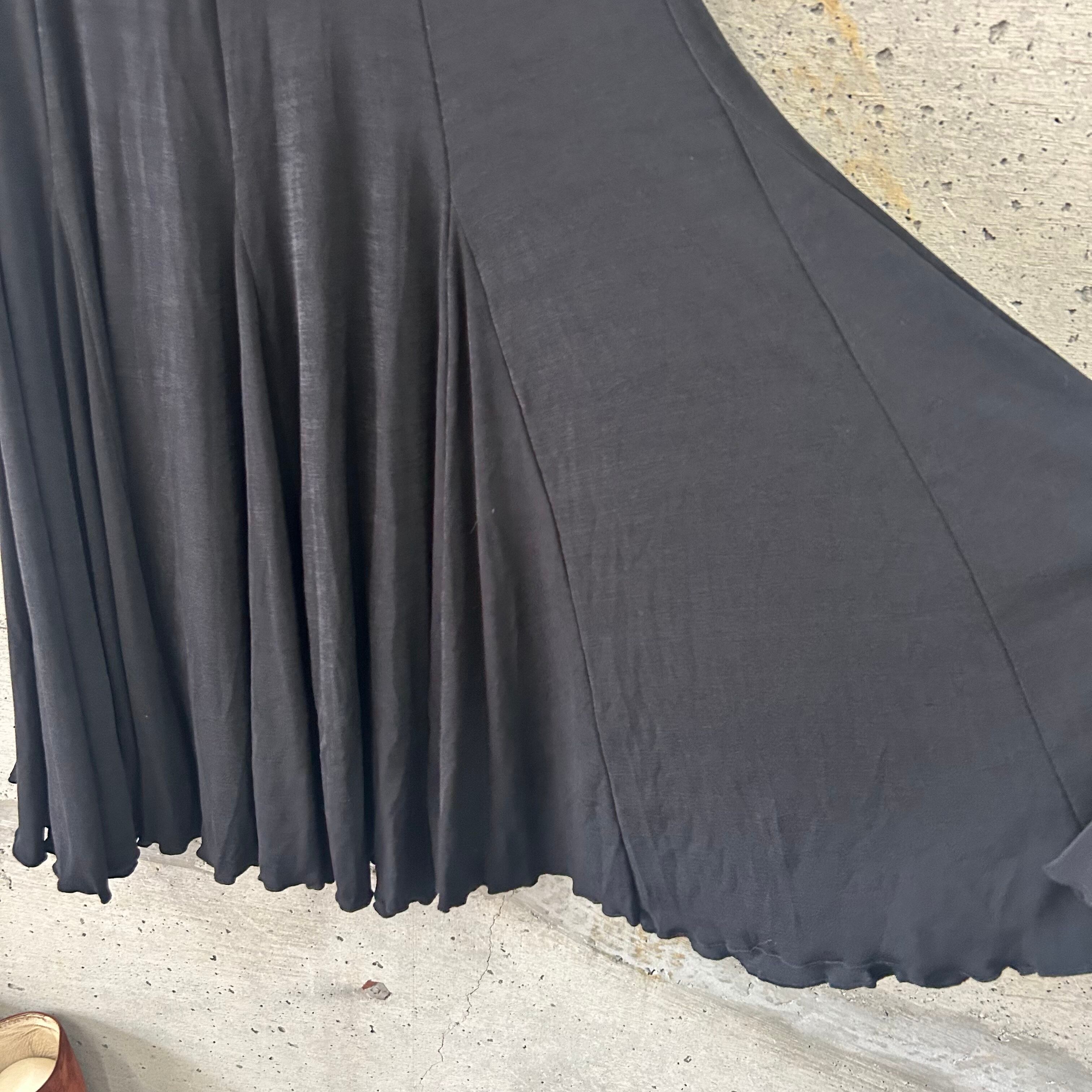 膝部分あたりから切り替えで生地が足されているためヒップまわりはスッキリとしながらもすそはボリュームがあり、とても綺麗なシルエットになってくれます。