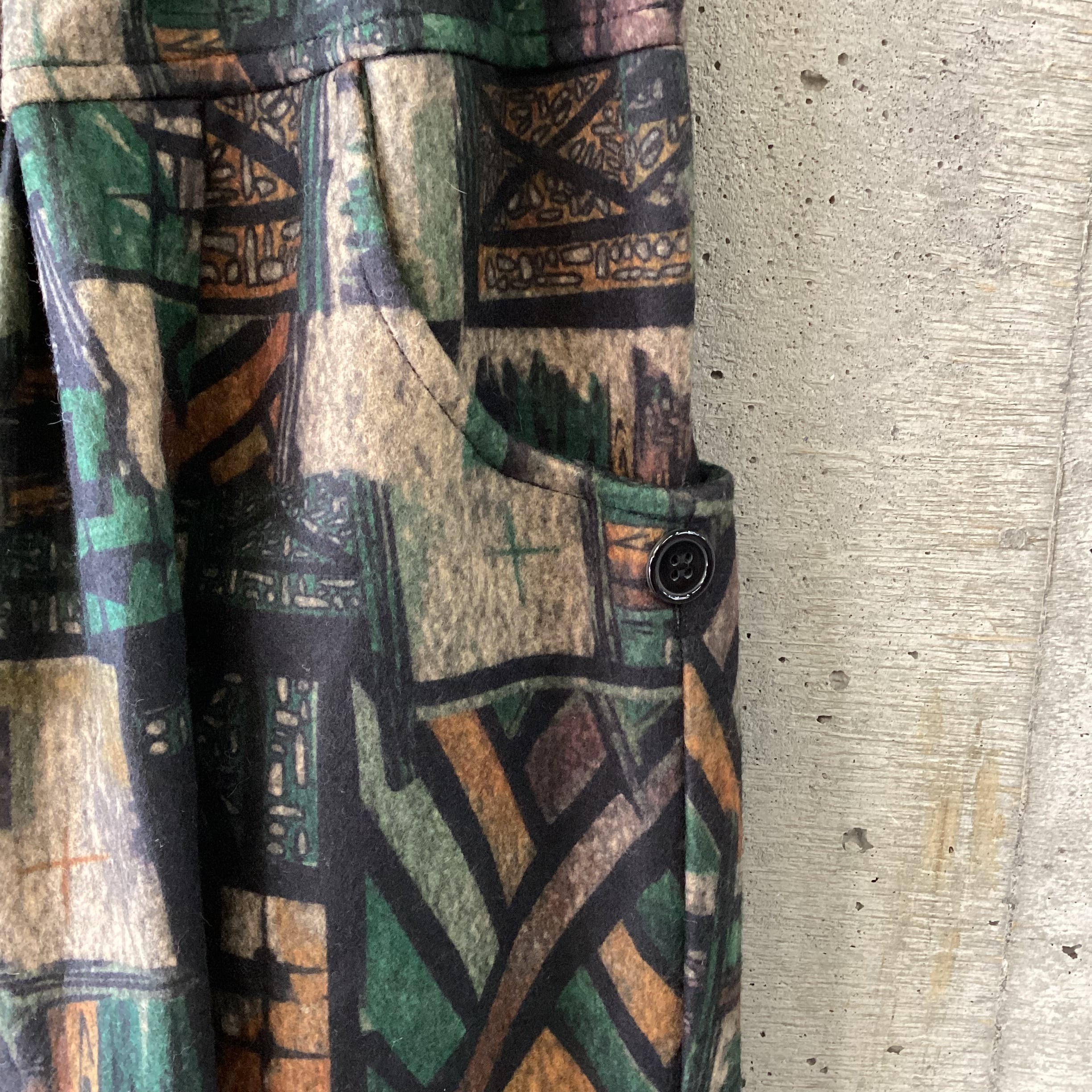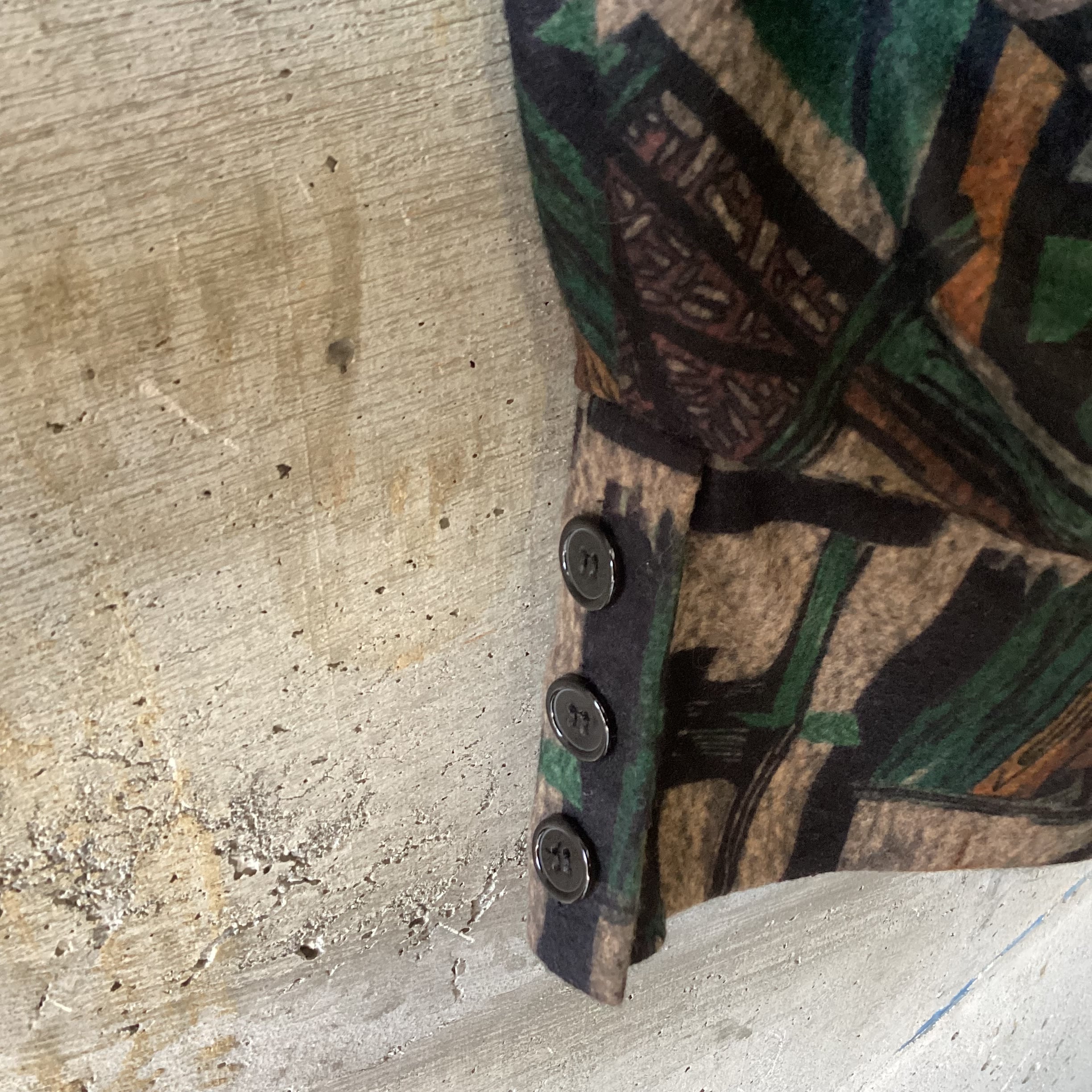 カモフラ柄にも見える色の掛け合わせのエスニックな柄も素敵で、かなり凝った1着です。