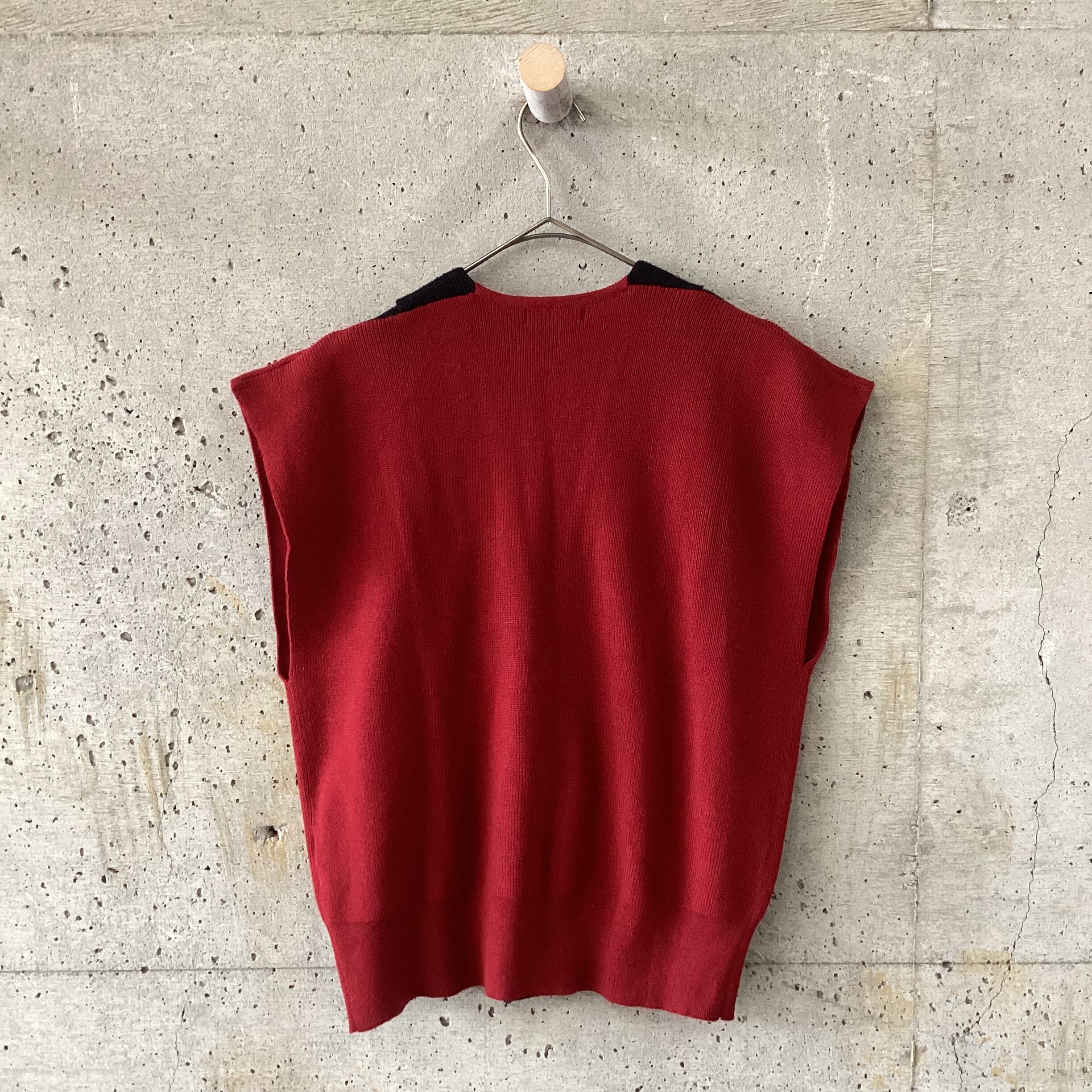 縄編み部分が遠目から見るとファイヤーパターンにも見える面白い柄のニットベストです。