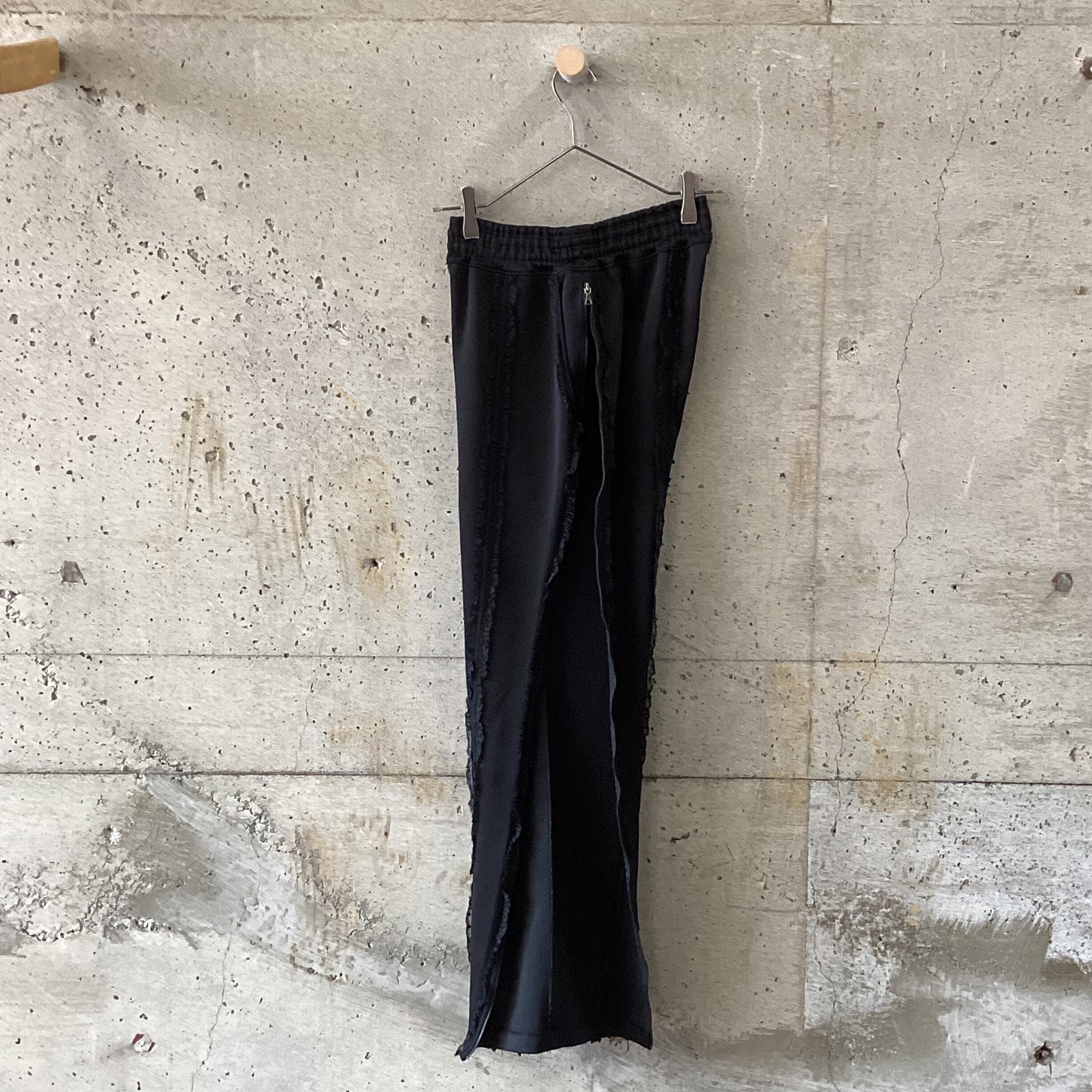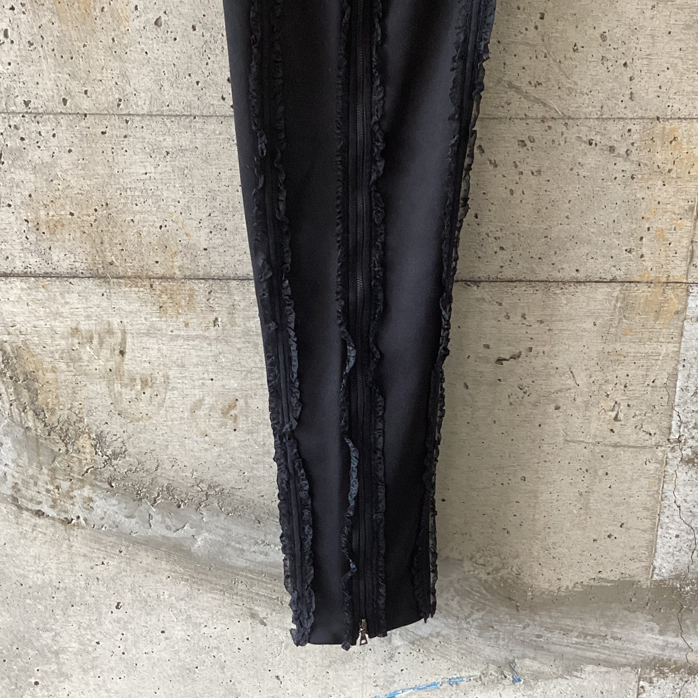 Frill side zip black track pants