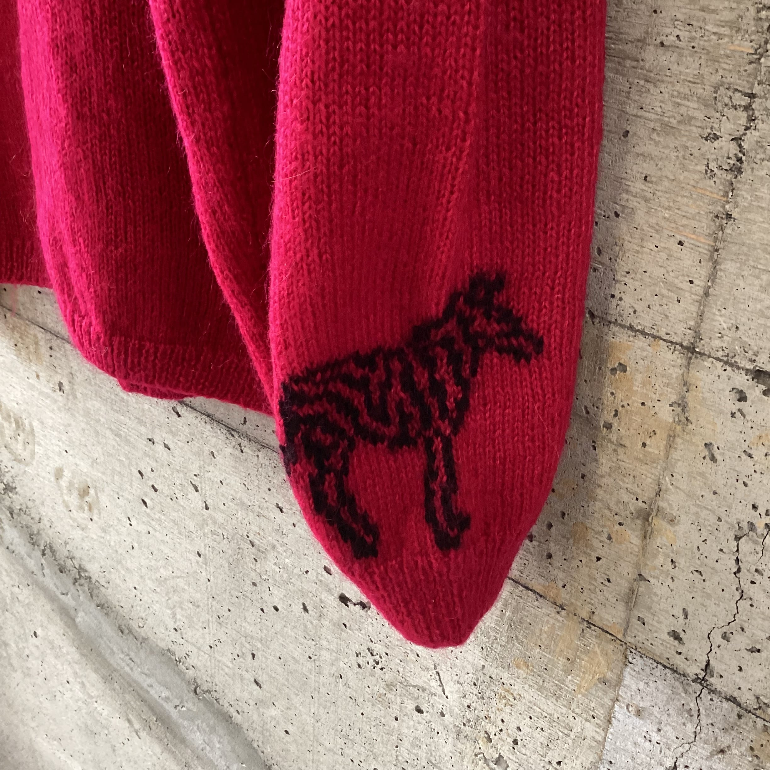裾と袖先にしまうまが編み込まれていてユニークなポイントになっています