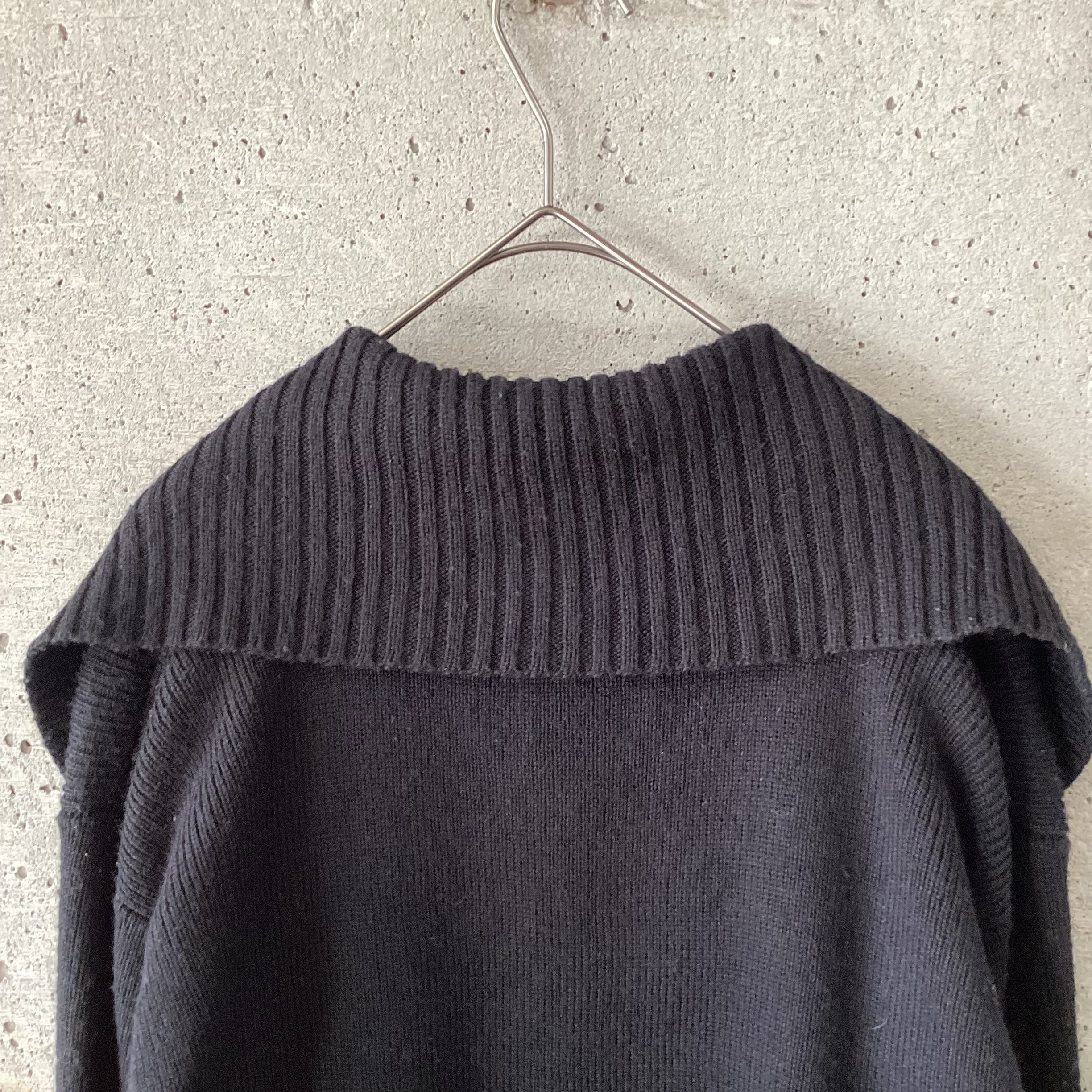 大きな襟の先にボンボンが付いた遊び心あるニットです。