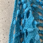 透かし柄のマフラーの上にボンボンが付いたボリュームマフラーです
