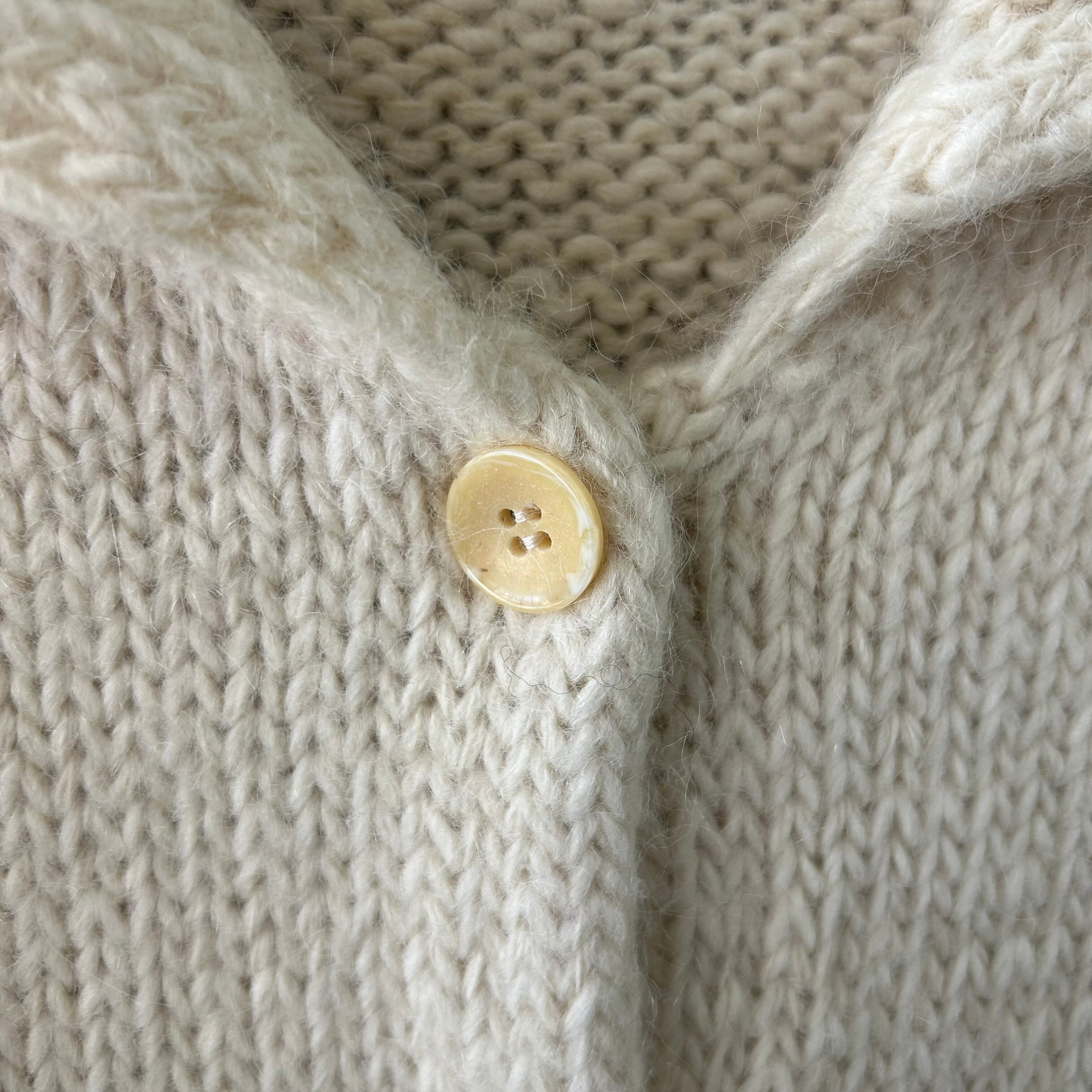 コンパクトながら上質な毛糸で重みがあり、とても暖かく着ることができるニットカーディガンです。