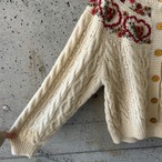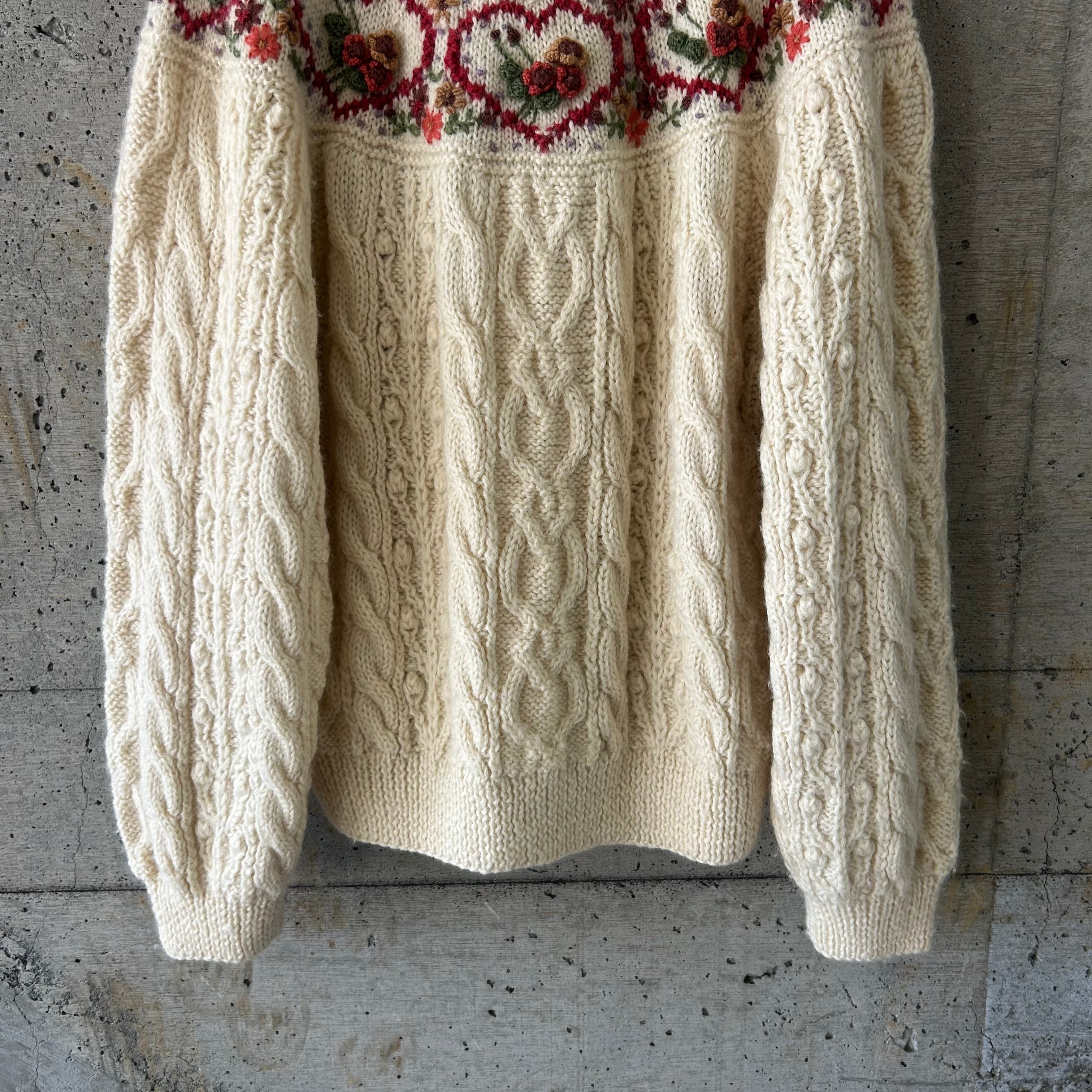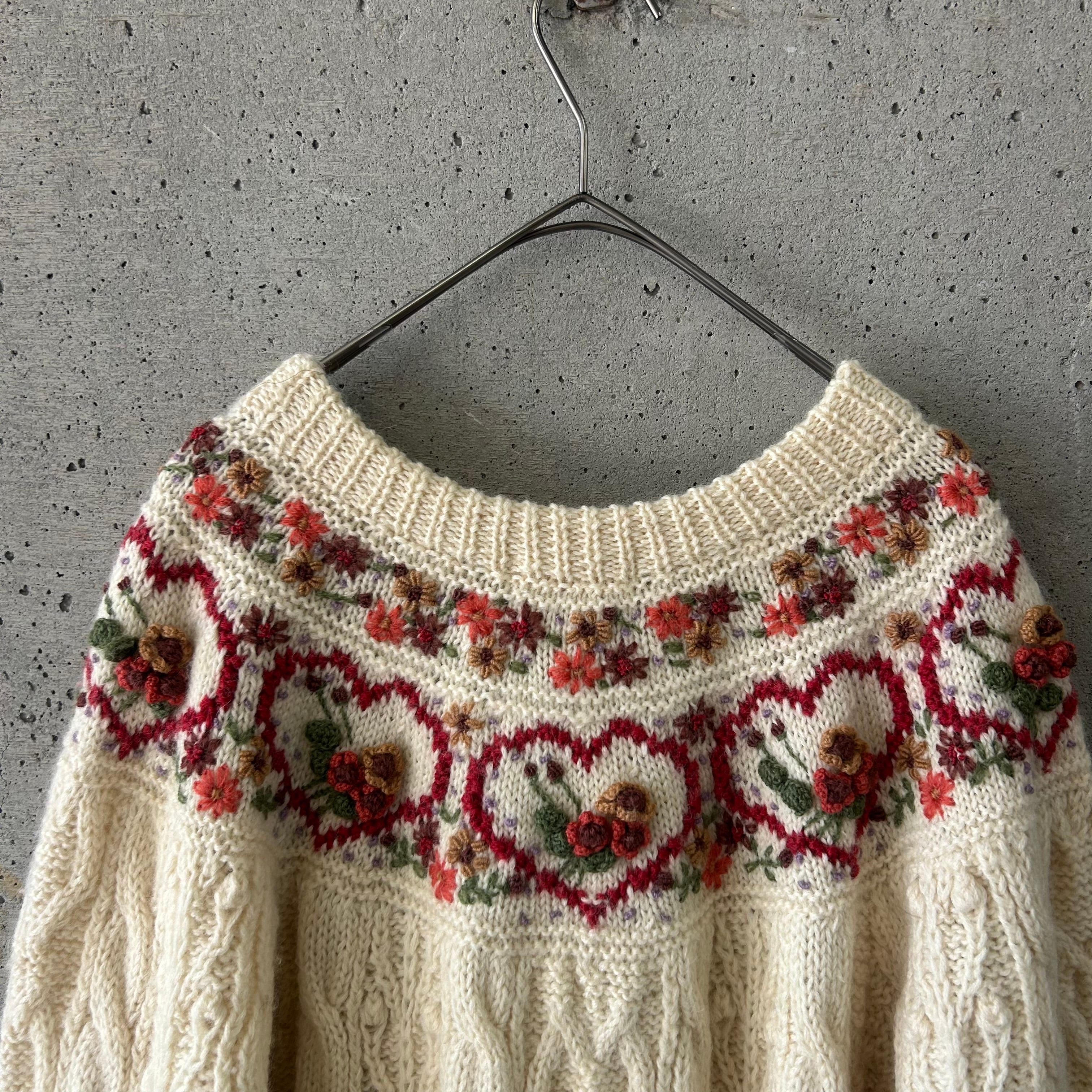 首元から広がるように付けられたお花の刺繍はカラフルでとても可愛らしく、ふんわりと暖かい印象を与えます。