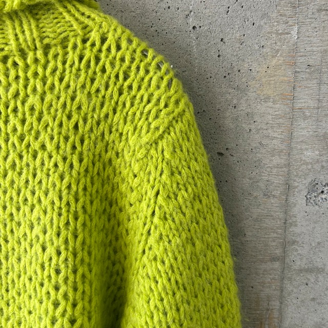 ライムグリーンのローケージニットです。