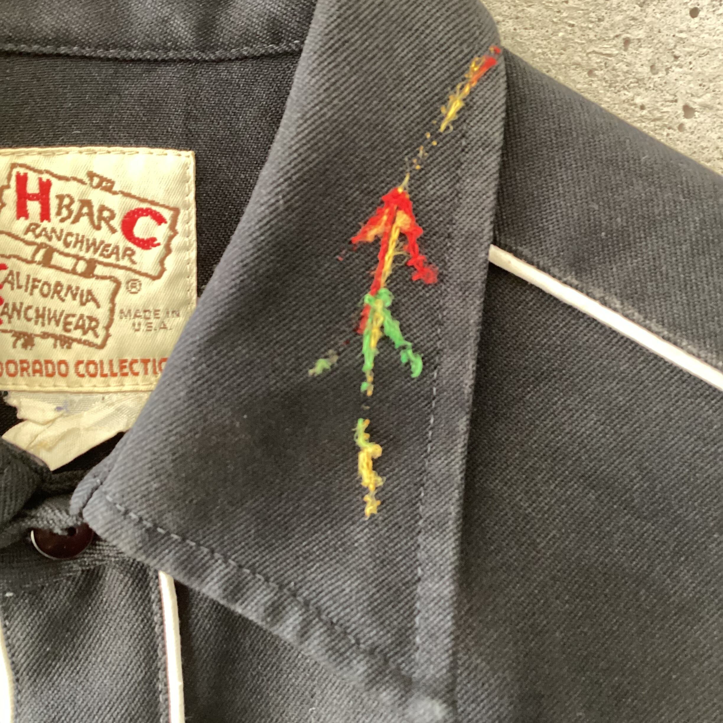 品質表示タグの文字が薄れており素材が判別できませんが、H BAR Cで最も多い組成はポリエステル×コットンで、手触りからもその可能性が高いです。