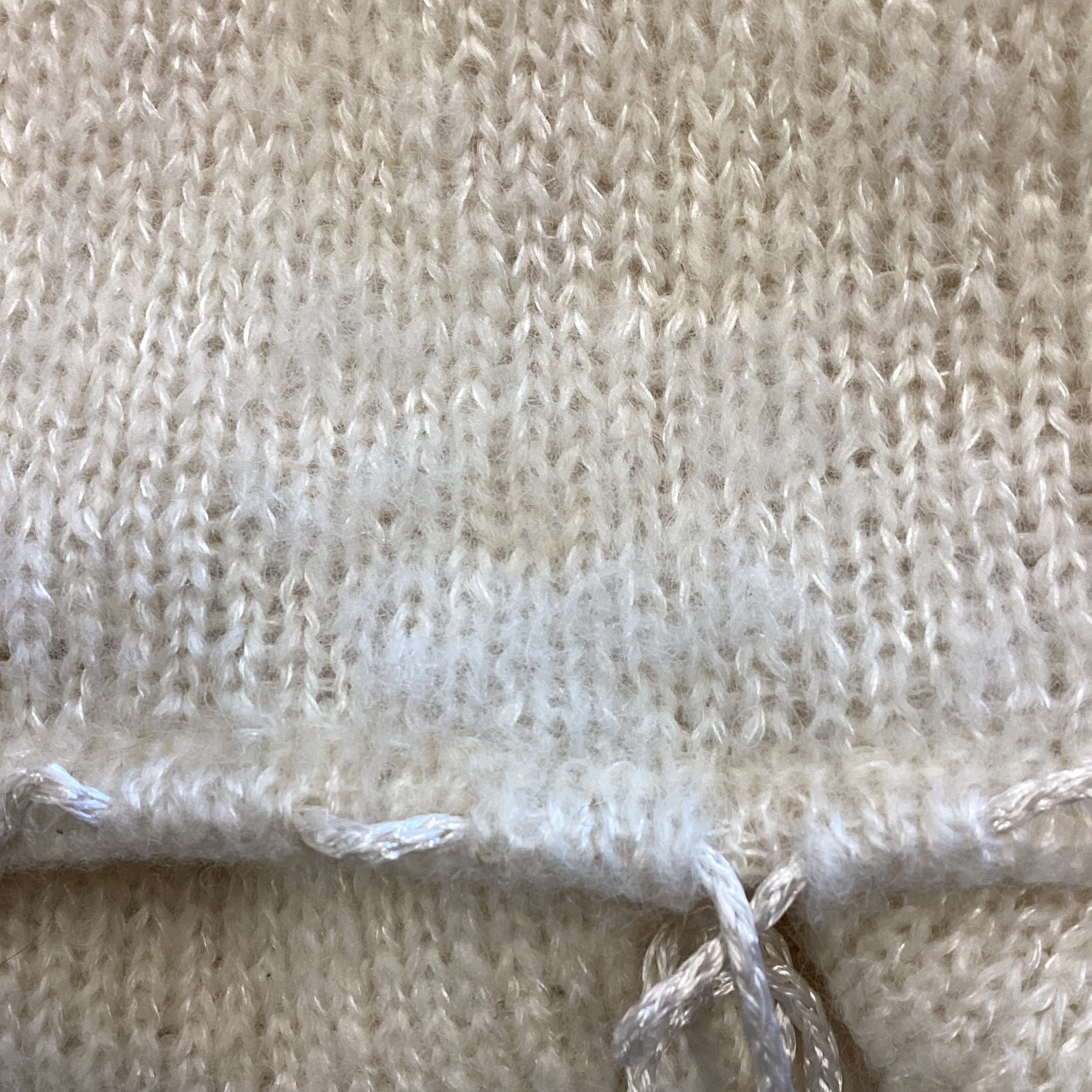 袖先と裾には絞れる紐付き。ボーダーの透かし編み部分は肌が透け、軽やかな印象です。